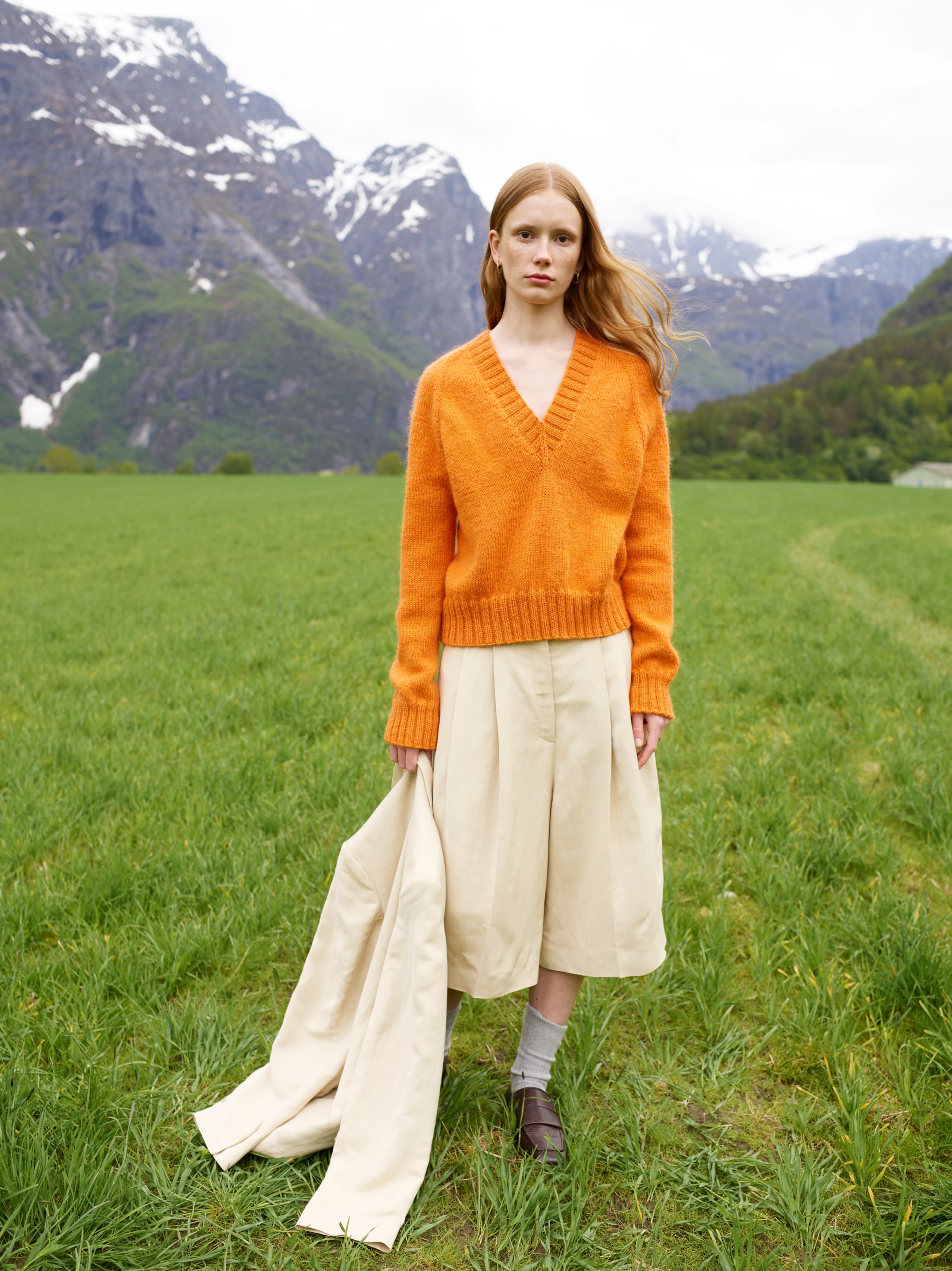 Kolleksjonen inneholder fire oppskrifter. Her finner du Vingejakken, en glattstrikket jakke med dobbeltstrikket halskant. Femjagenseren, med strukturborder av rette og vrange masker. Floriagenseren, med vakker flettestruktur og Maiagenseren, en perfekt glattstrikket v-halsgenser. Kolleksjonen er fargesatt i tidsriktige, lyse pasteller, komplementert med dype jordtoner og en knæsj oransje for å gi kolleksjonen det lille ekstra.
