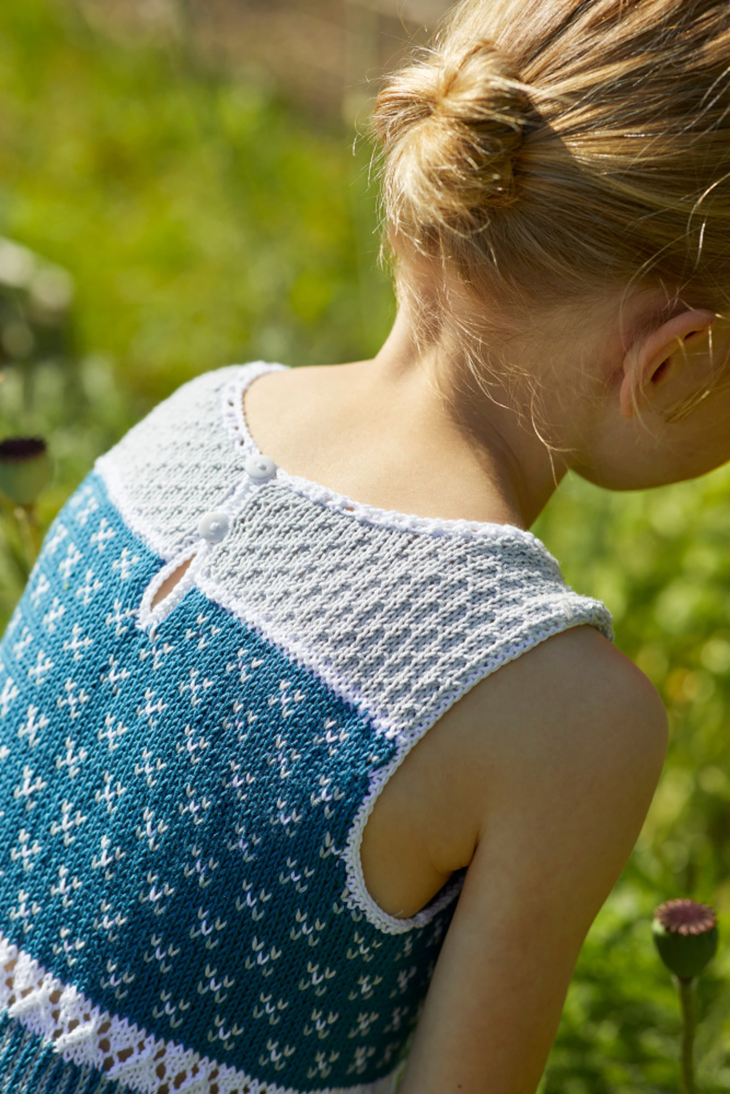 Petrinekjolen har mange vokst opp med og nå kan du strikke den til dine egne barn eller barnebarn! Denne populære oppskriften har blitt en favoritt blant bestemødre, som ofte strikker flere. Den er morsom å strikke og barna elsker den! De nye, friske fargene gir en skikkelig glad-følelse, og kjolen passer til de aller fleste anledninger. Med sitt nostalgiske preg bringer den frem gode sommerminner og barndomsøyeblikk.