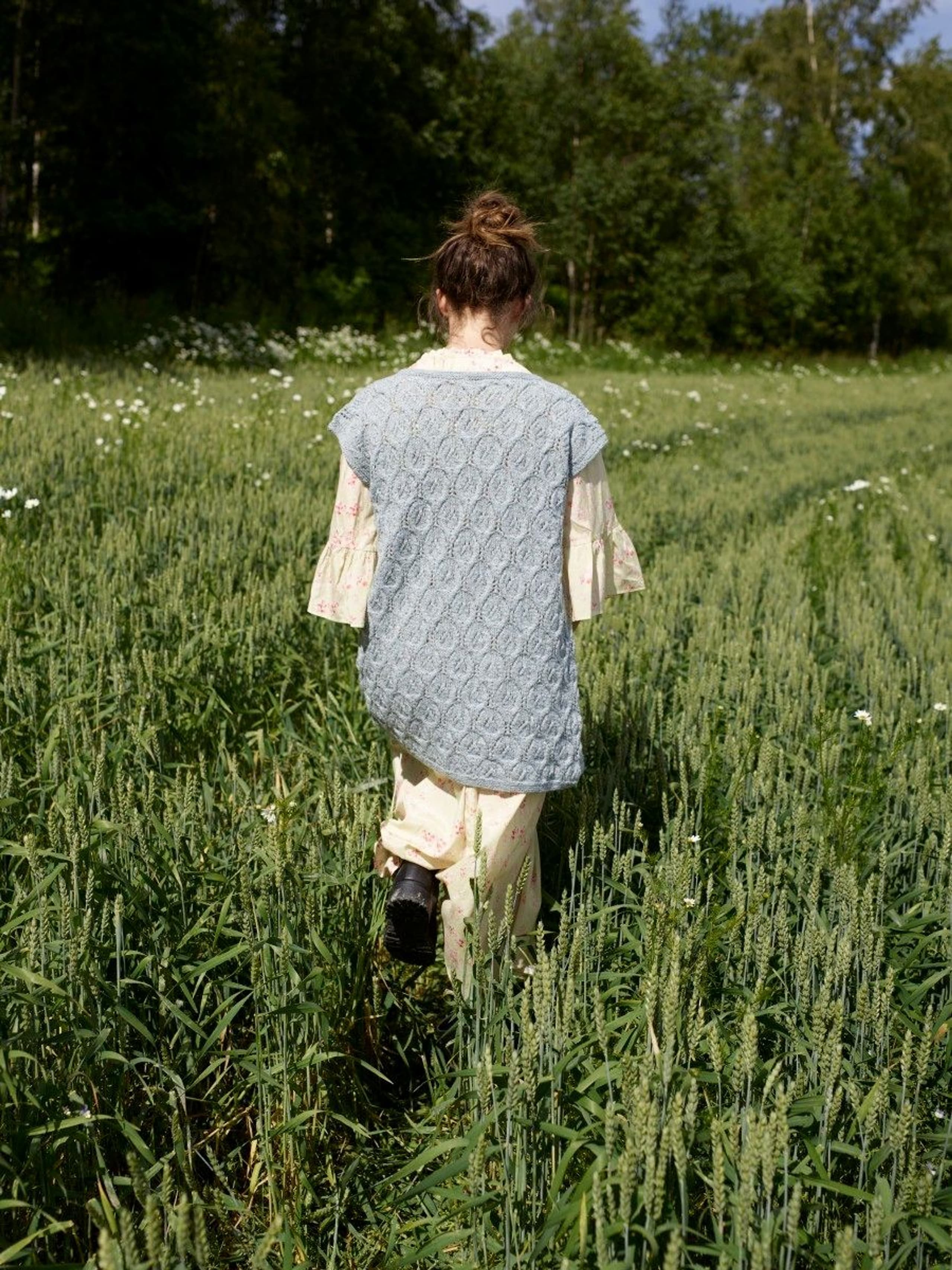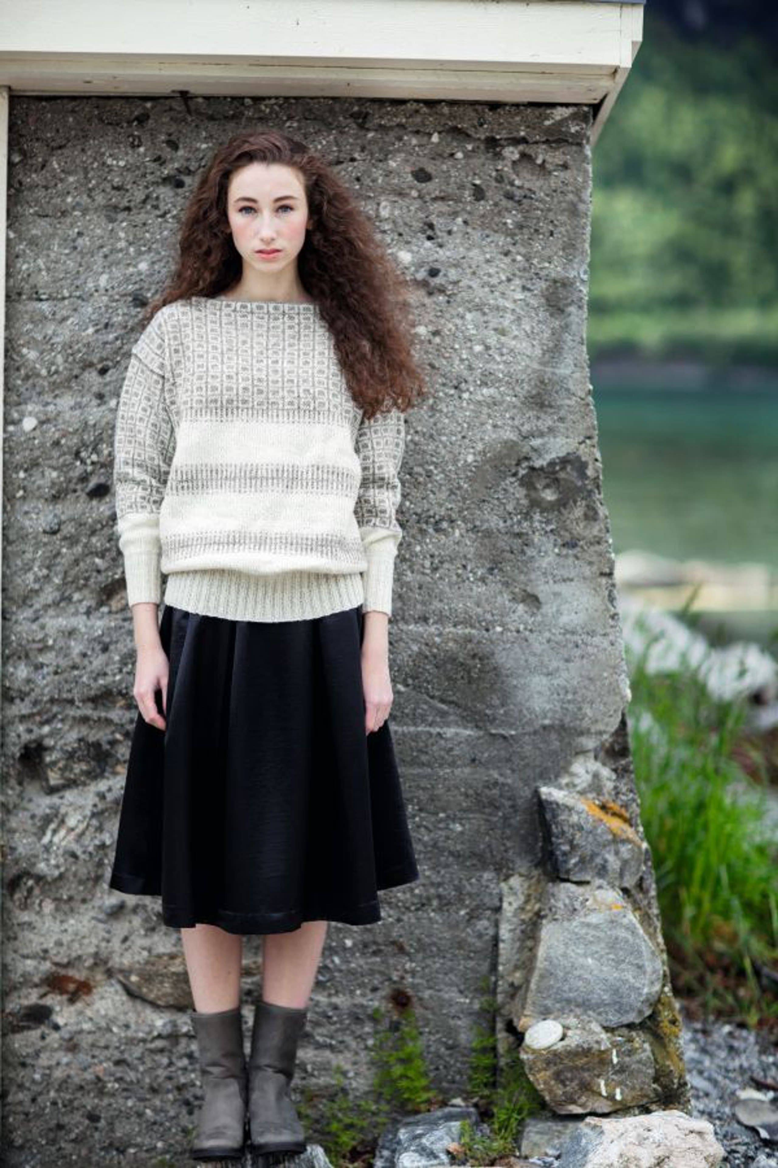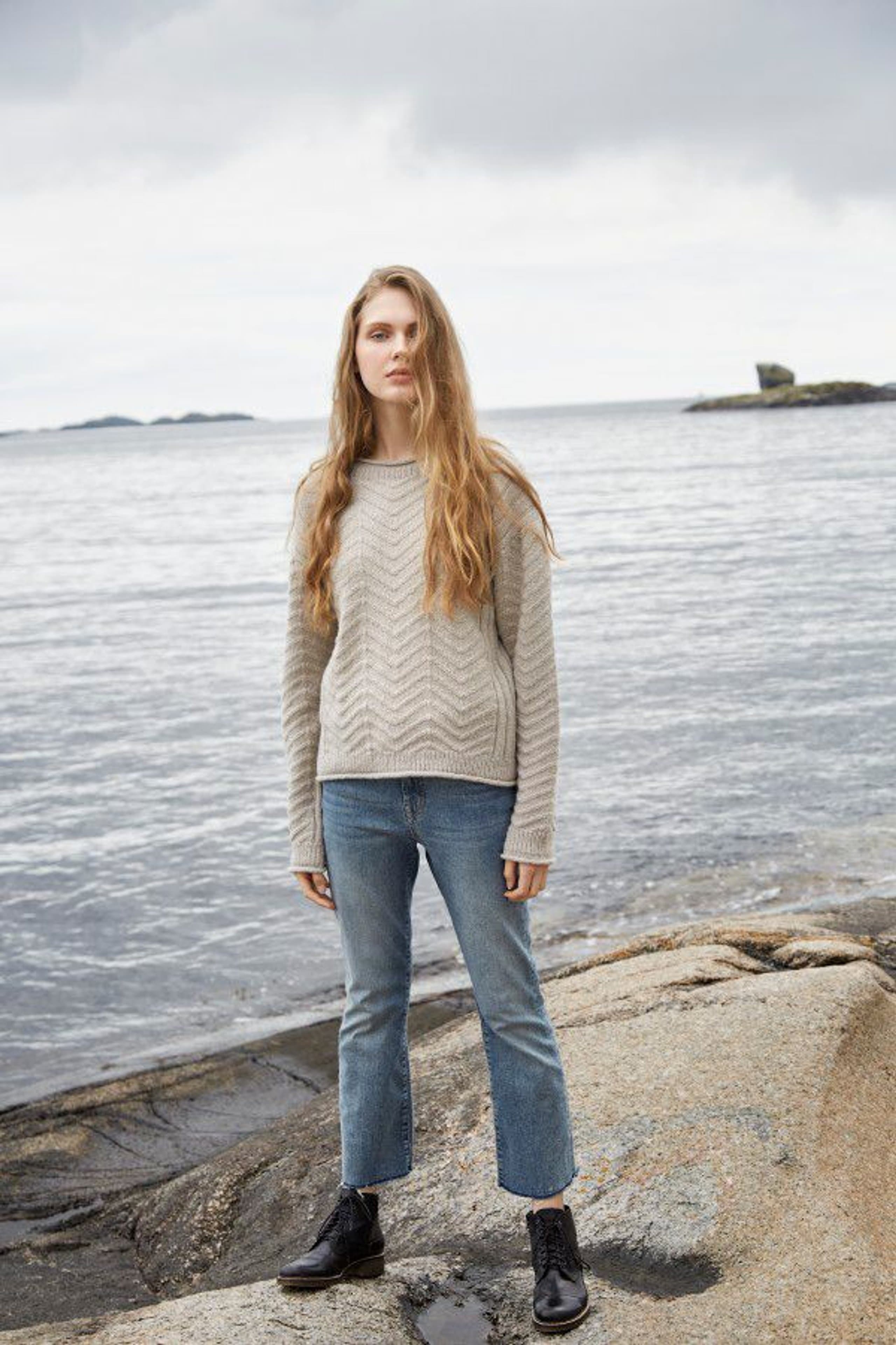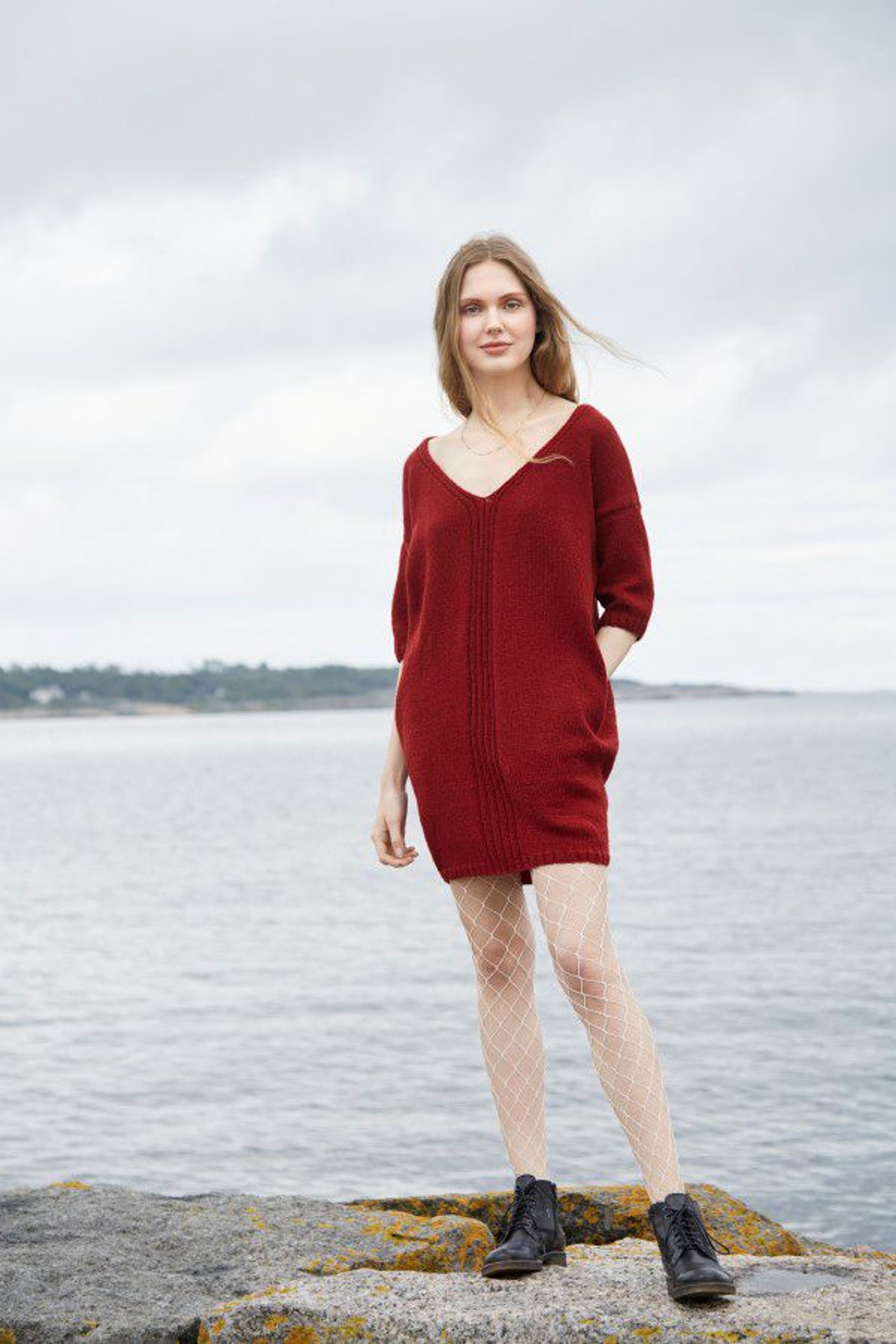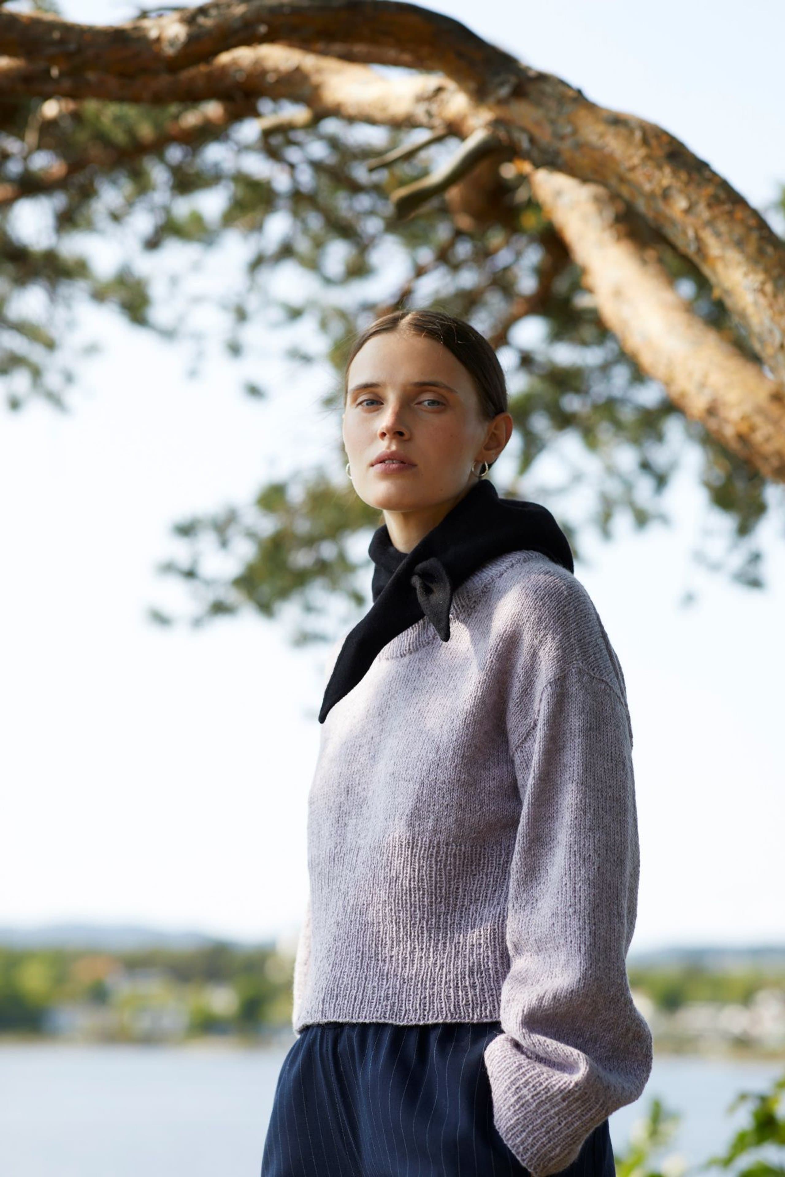 Garnkombinasjoner og forslag til strikkefasthet (p): Husk å strikke prøvelapp. Finull + Plum: 21 m = 10 cm (3,5) Finull + Alpaca Silk: 18 m = 10 cm (4) Finull x 2: 16 m = 10 cm (4,5) Finull x 2 + Plum: 14 m = 10 cm (6) Finull + Plum x 2: 14 m = 10 cm (6) Finull + Alpakka Lin: 14 m = 10 cm (5,5) Garnalternativer: Tumi Pt 5 Petunia Pelini