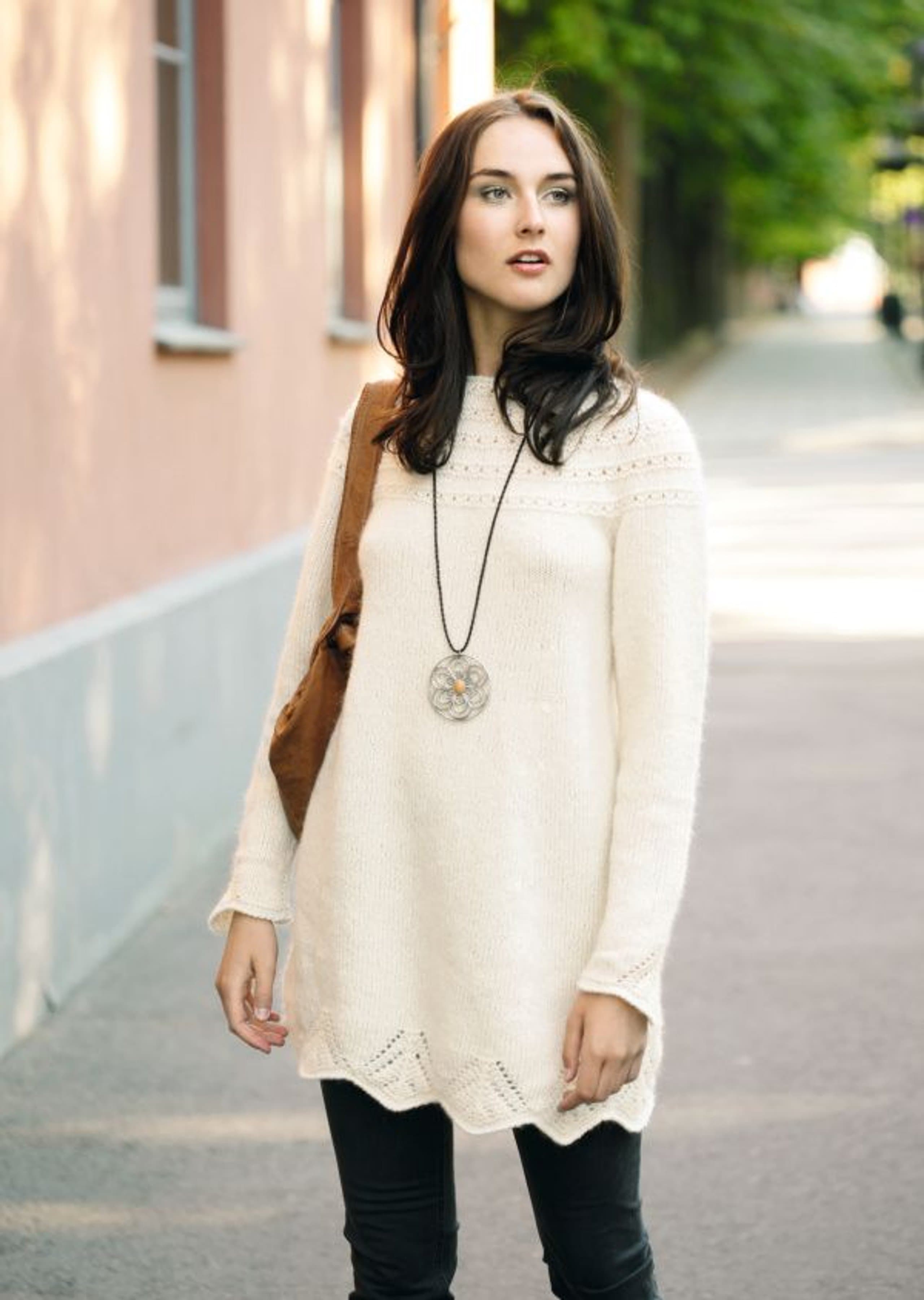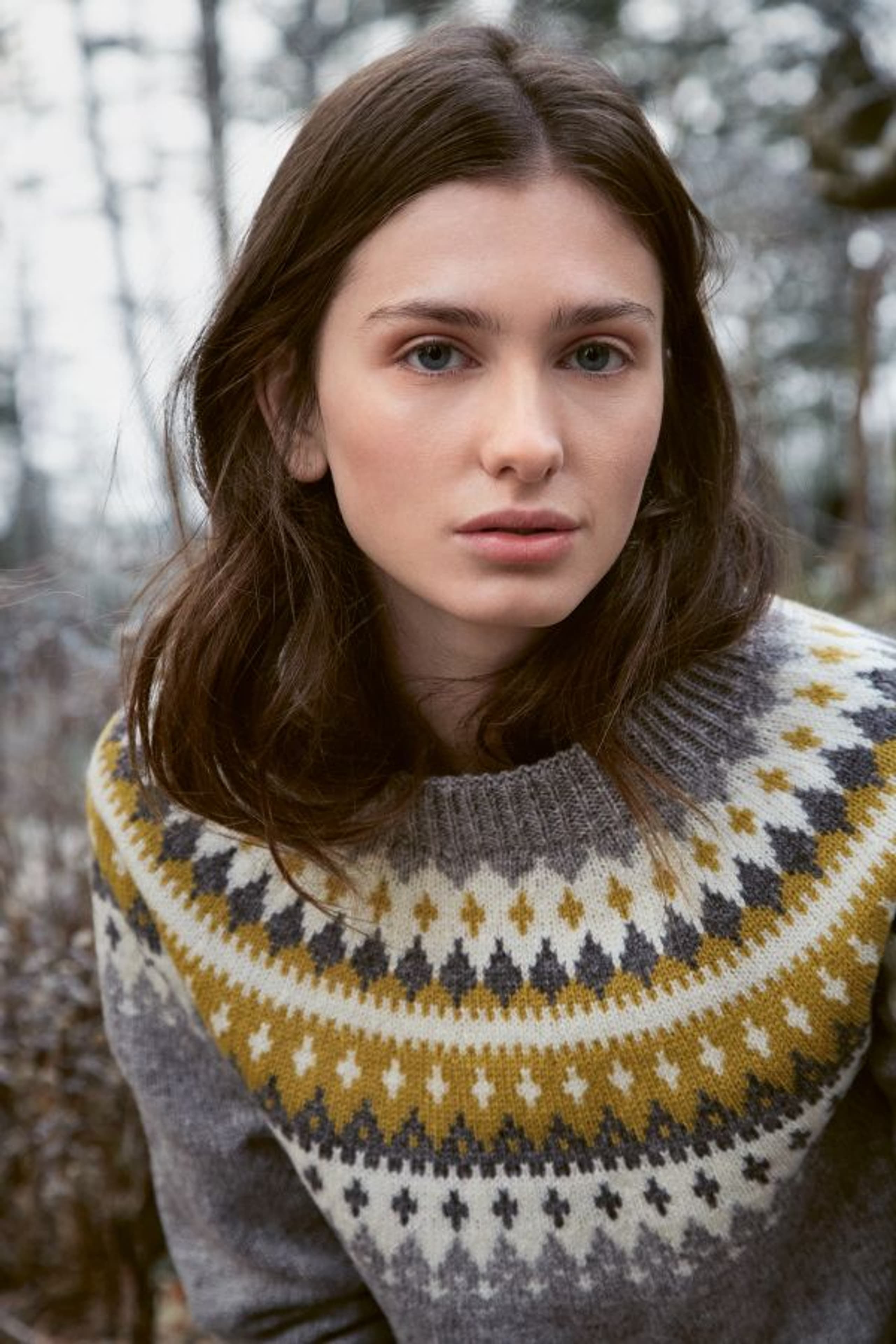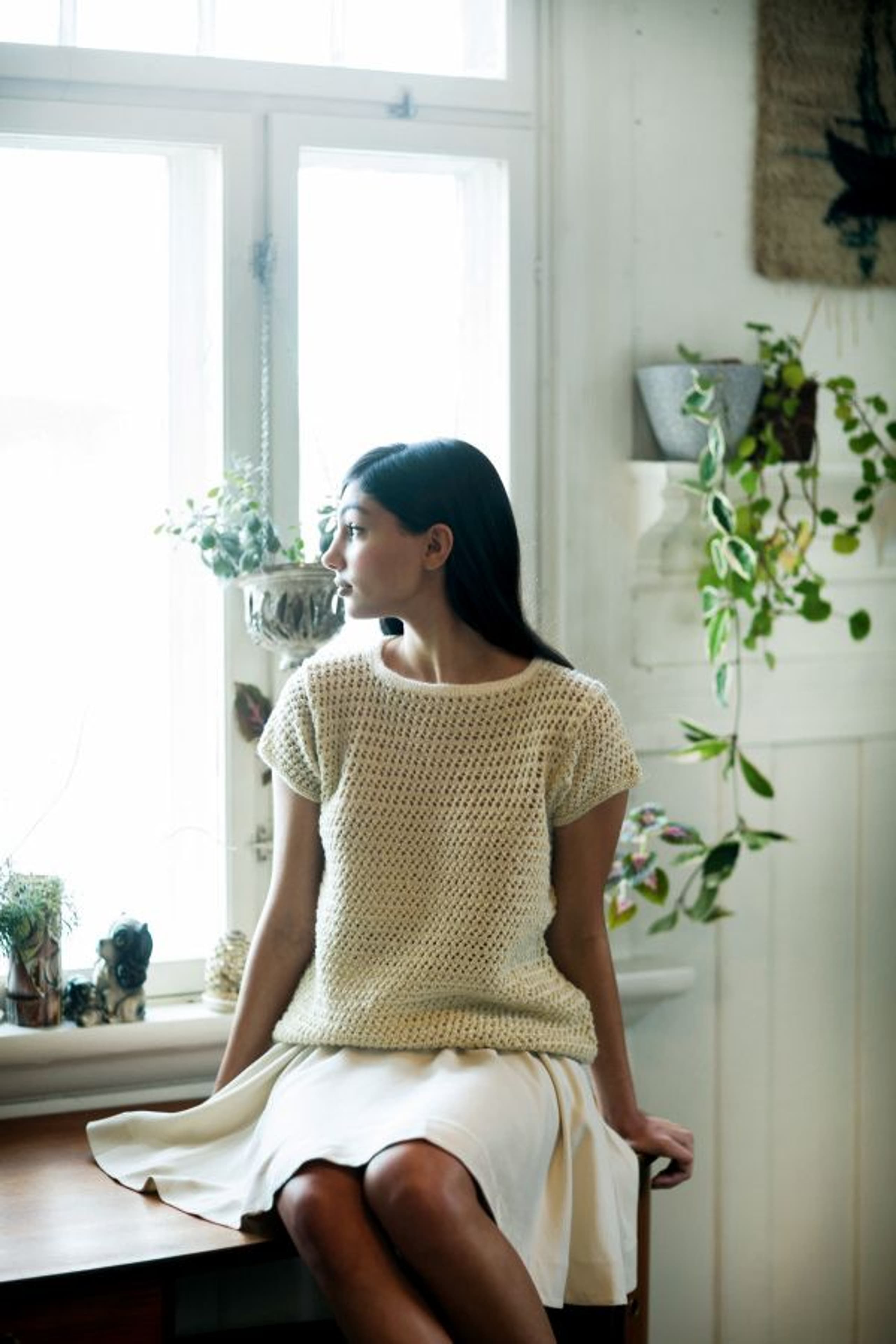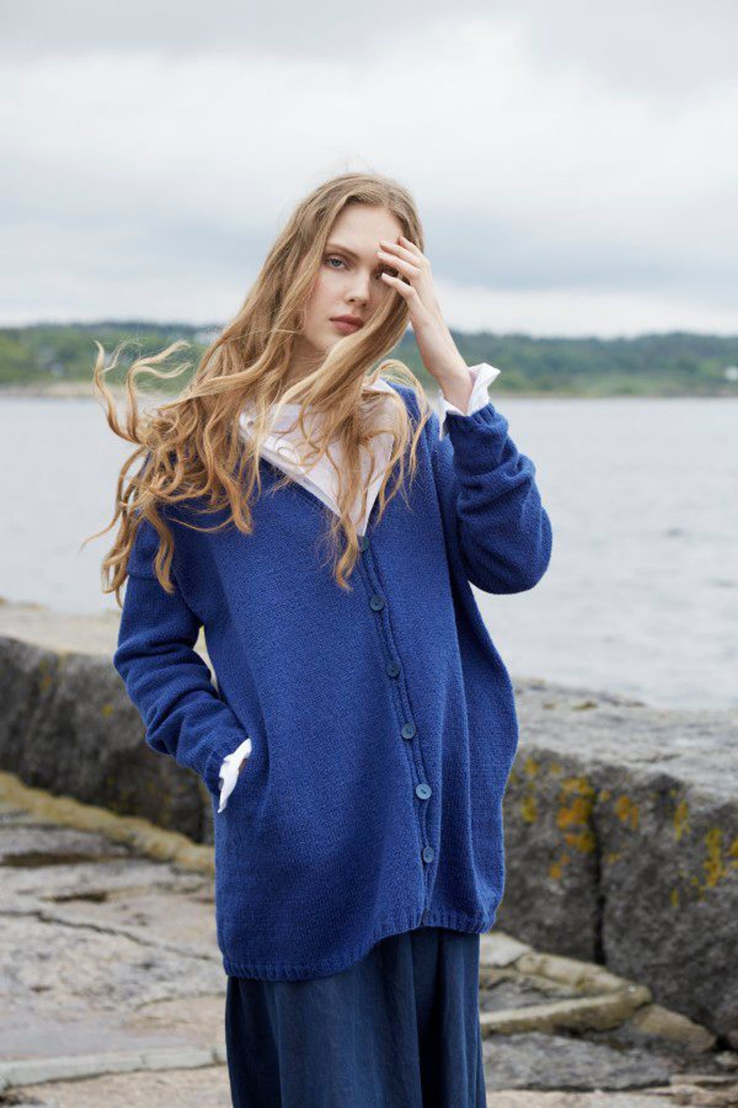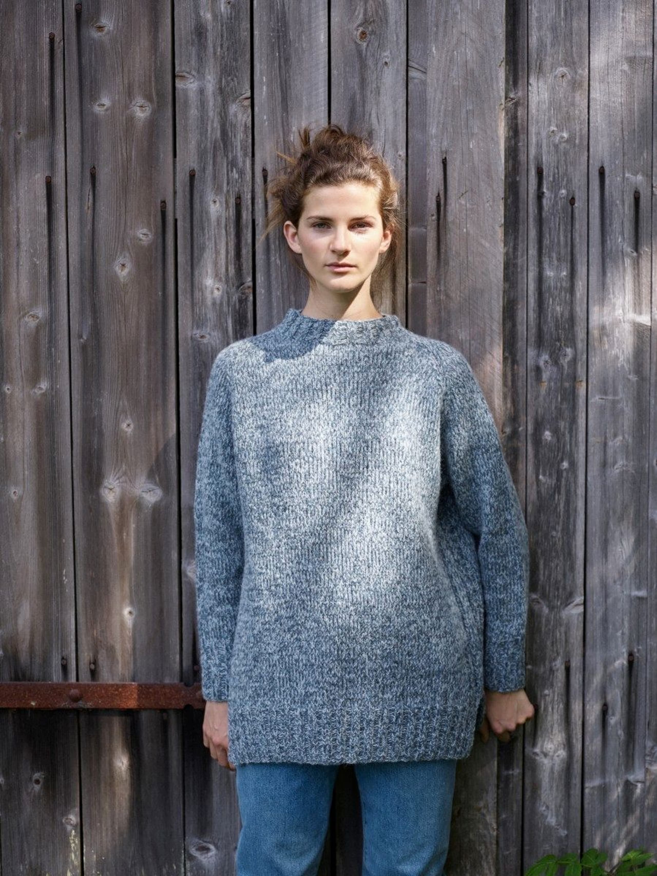 Garnkombinasjoner og forslag til strikkefasthet (p): Husk å strikke prøvelapp. Finull + Plum: 21 m = 10 cm (3,5) Finull + Alpaca Silk: 18 m = 10 cm (4) Finull x 2: 16 m = 10 cm (4,5) Finull x 2 + Plum: 14 m = 10 cm (6) Finull + Plum x 2: 14 m = 10 cm (6) Finull + Alpakka Lin: 14 m = 10 cm (5,5) Garnalternativer: Tumi Pt 5 Petunia Pelini