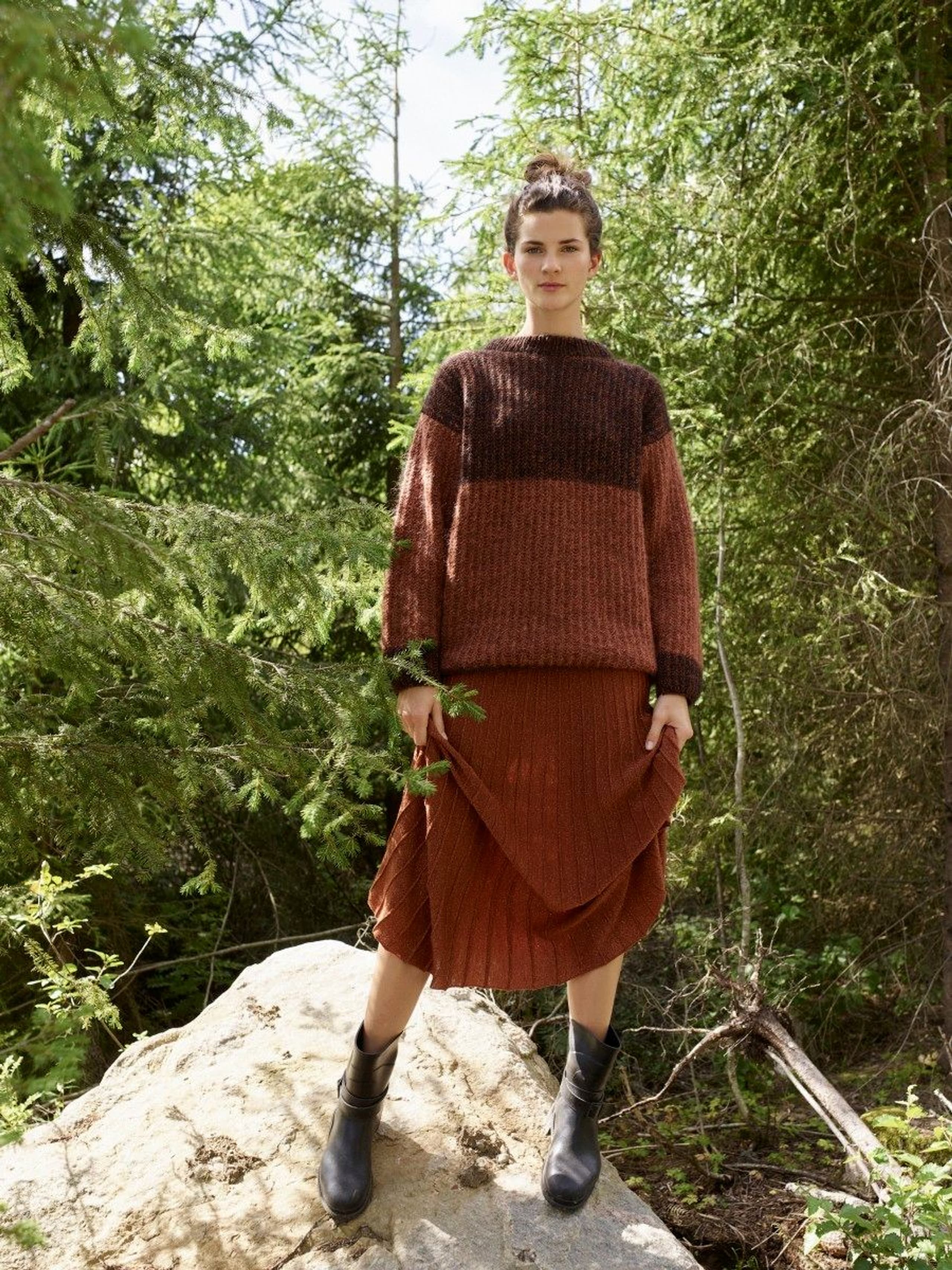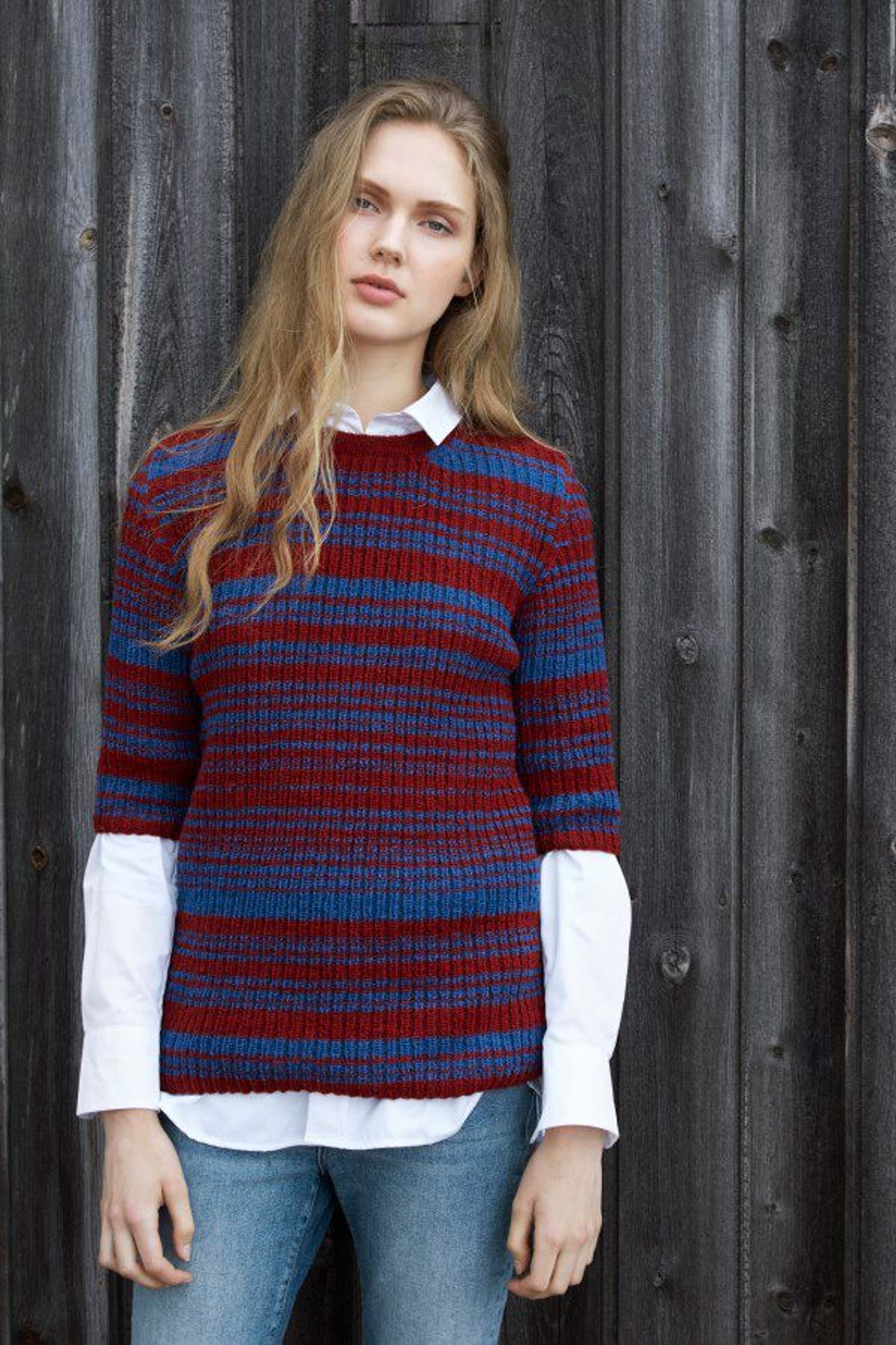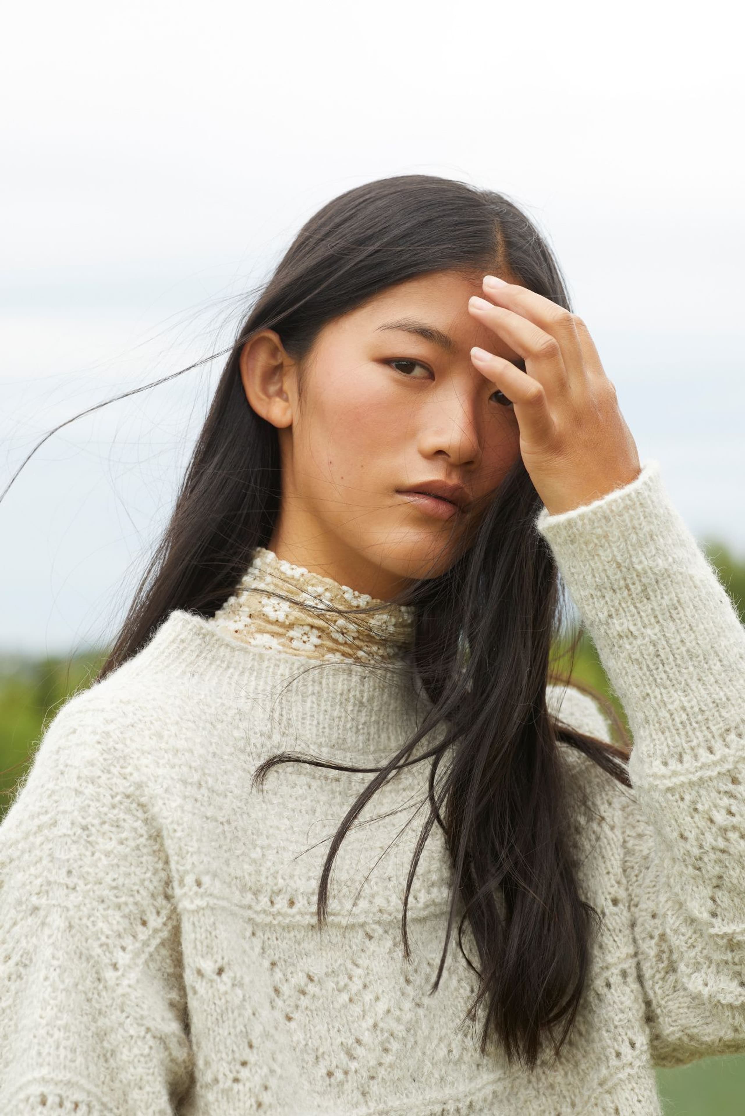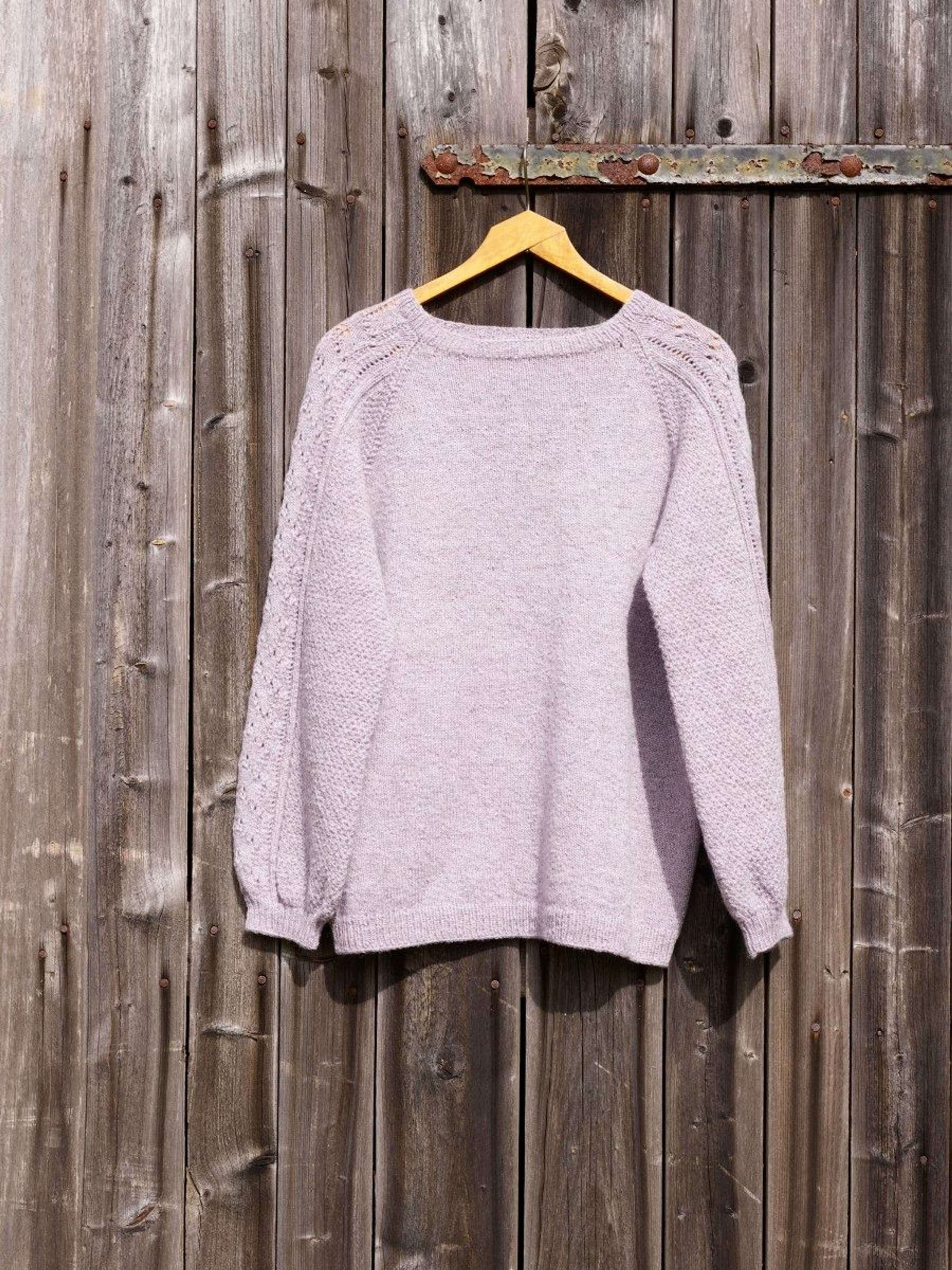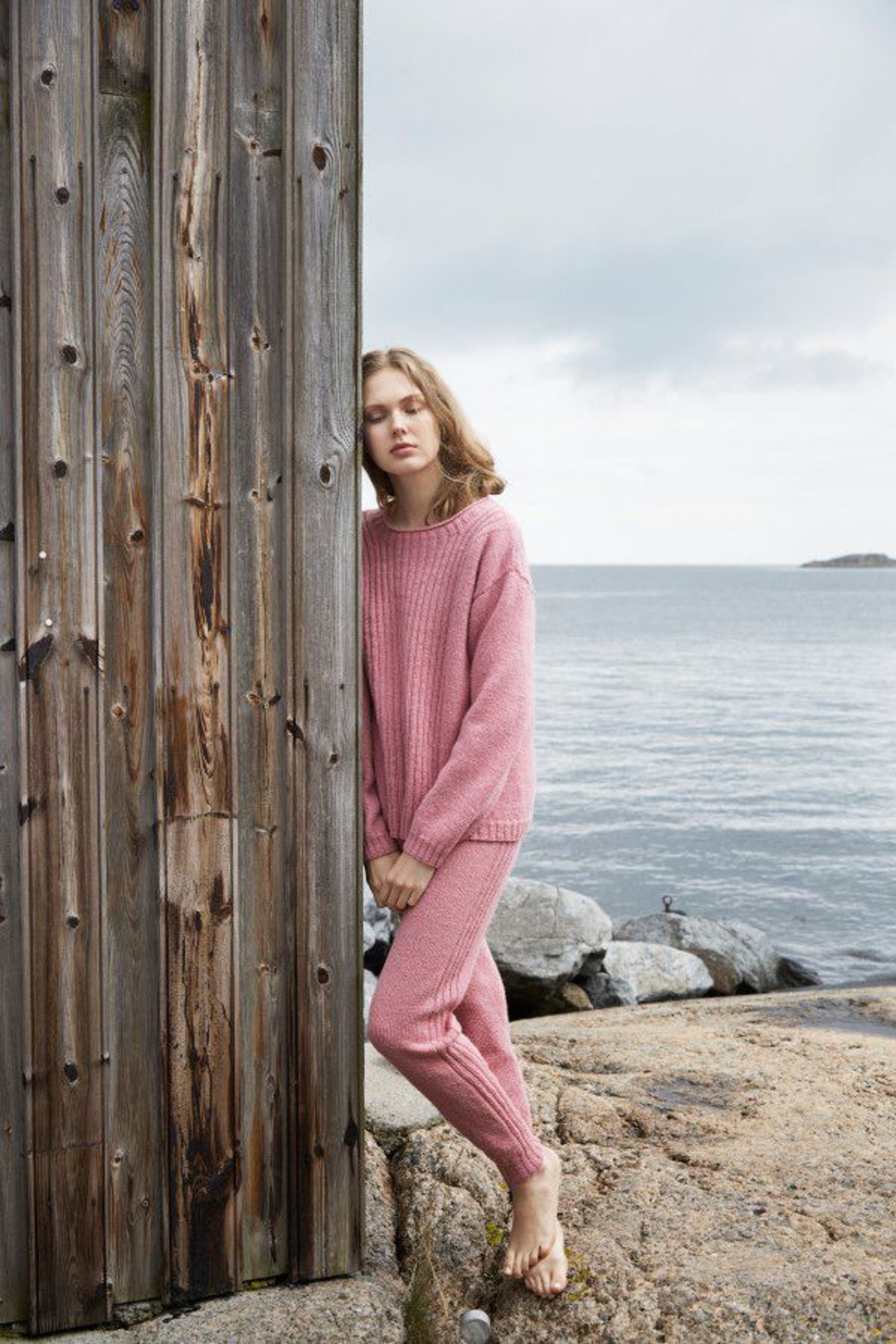 Garnkombinasjoner og forslag til strikkefasthet (p): Husk å strikke prøvelapp. Finull + Plum: 21 m = 10 cm (3,5) Finull + Alpaca Silk: 18 m = 10 cm (4) Finull x 2: 16 m = 10 cm (4,5) Finull x 2 + Plum: 14 m = 10 cm (6) Finull + Plum x 2: 14 m = 10 cm (6) Finull + Alpakka Lin: 14 m = 10 cm (5,5) Garnalternativer: Tumi Pt 5 Petunia Pelini