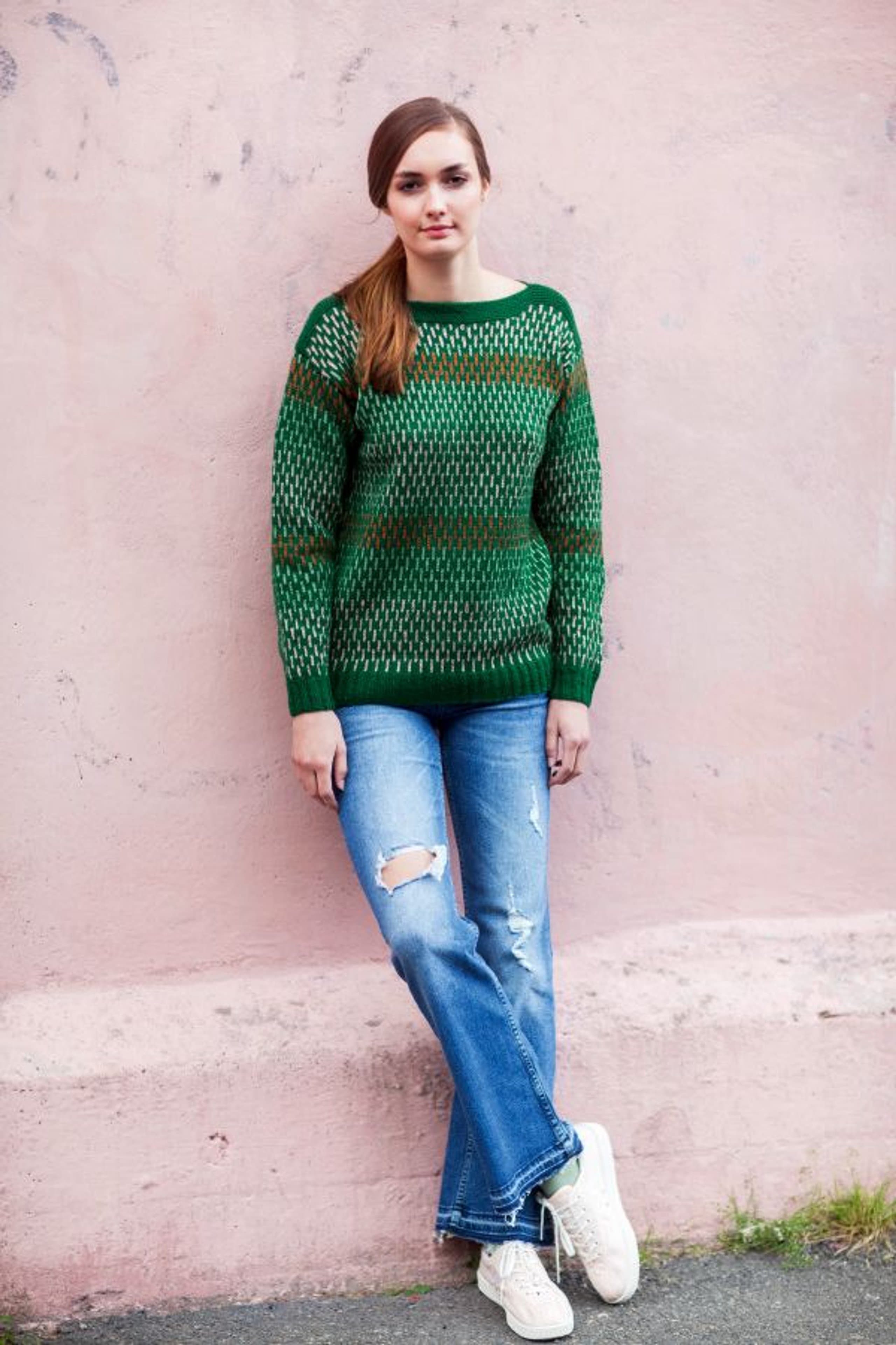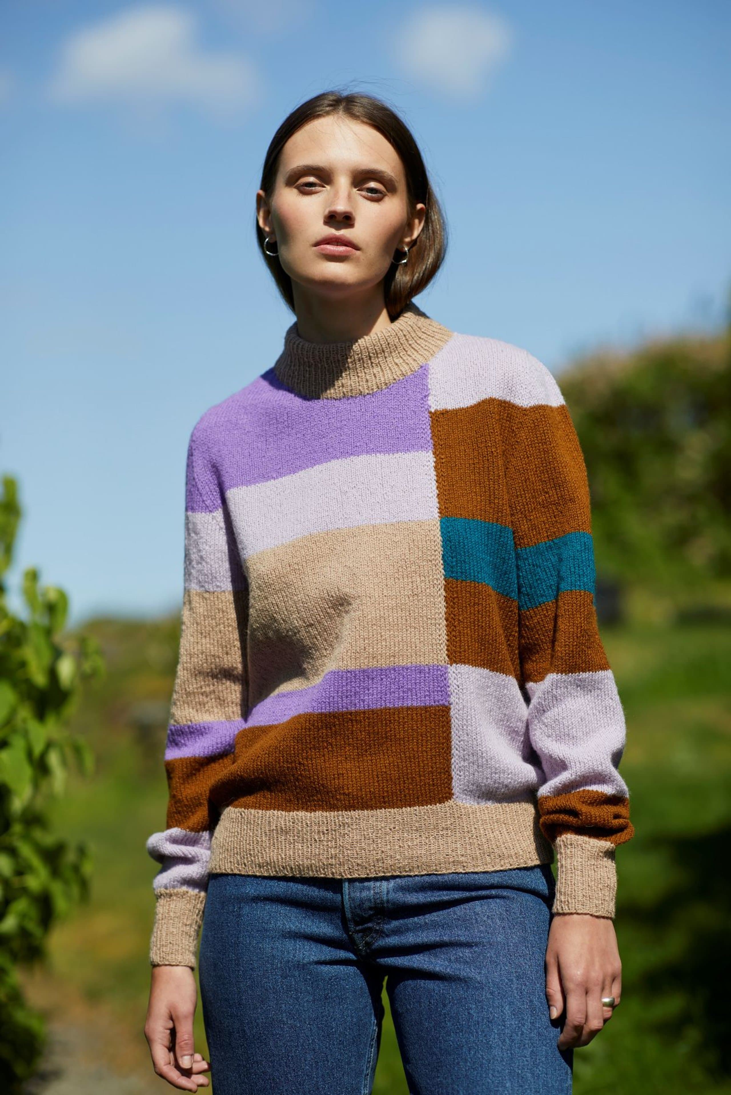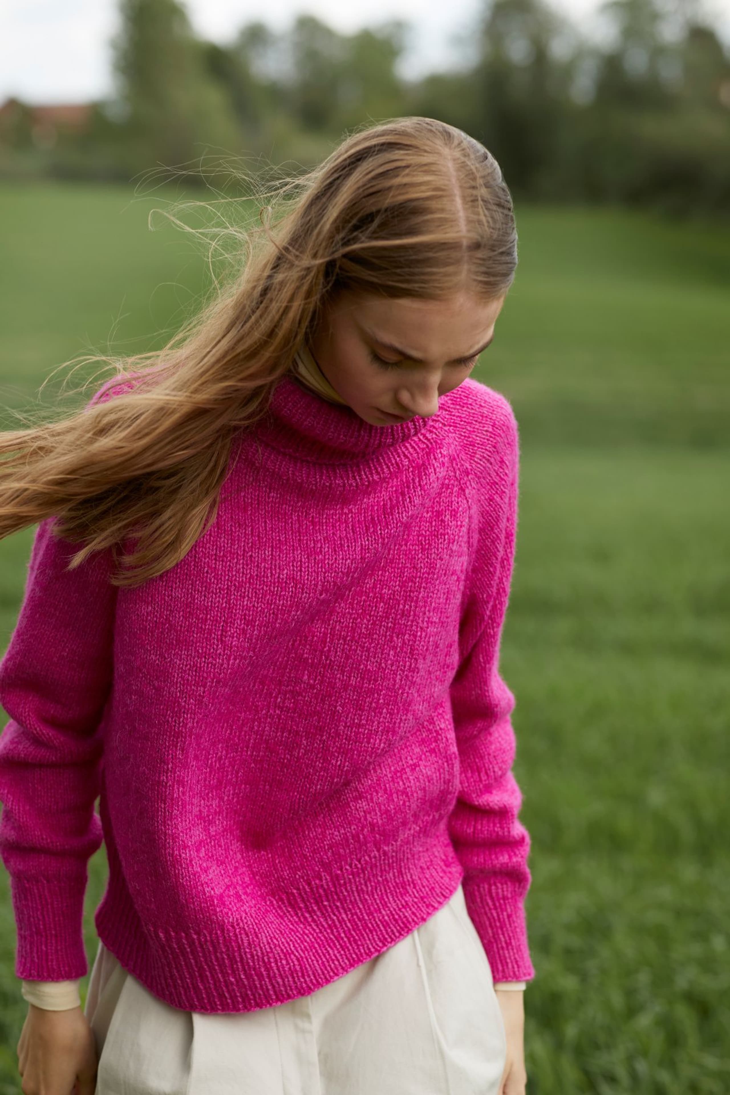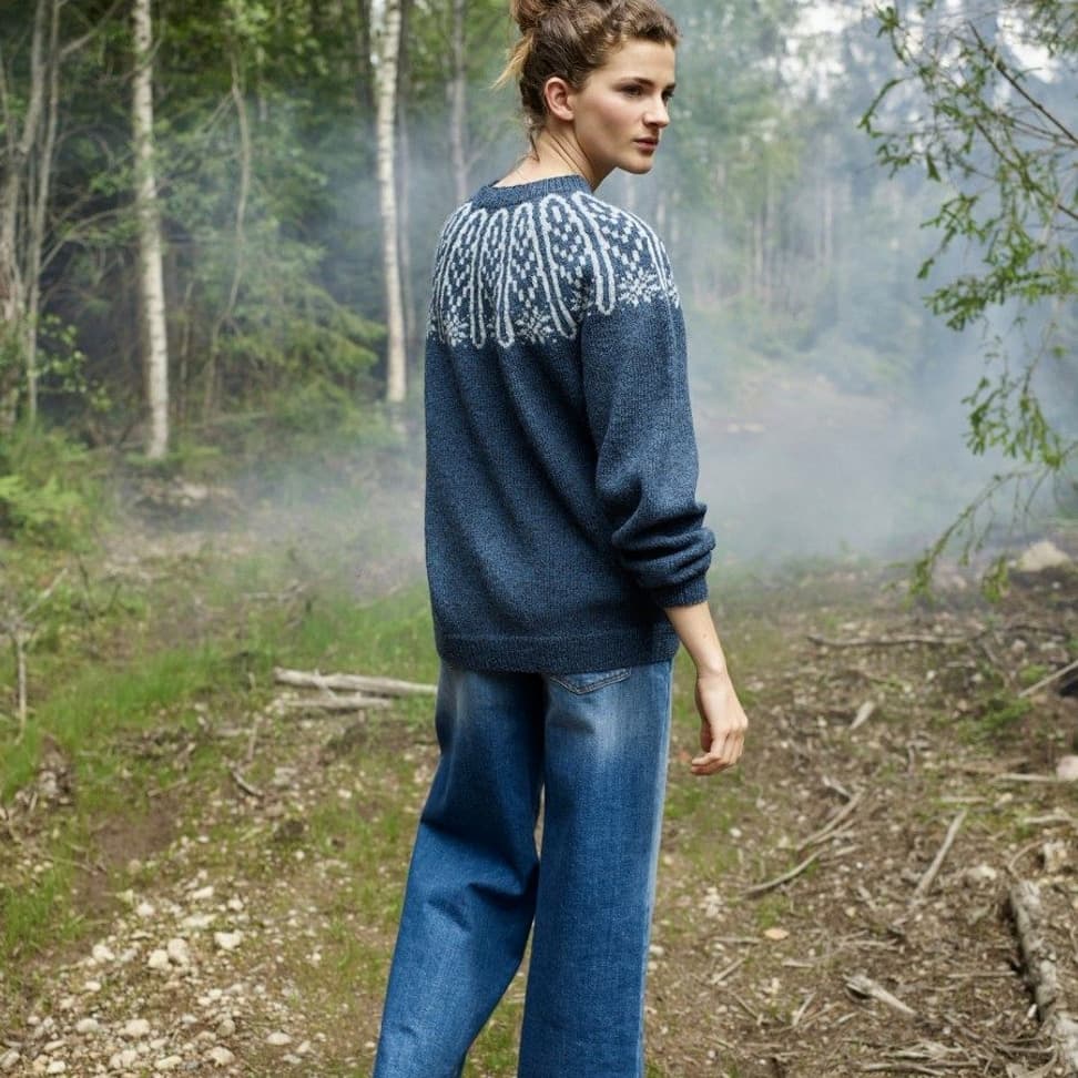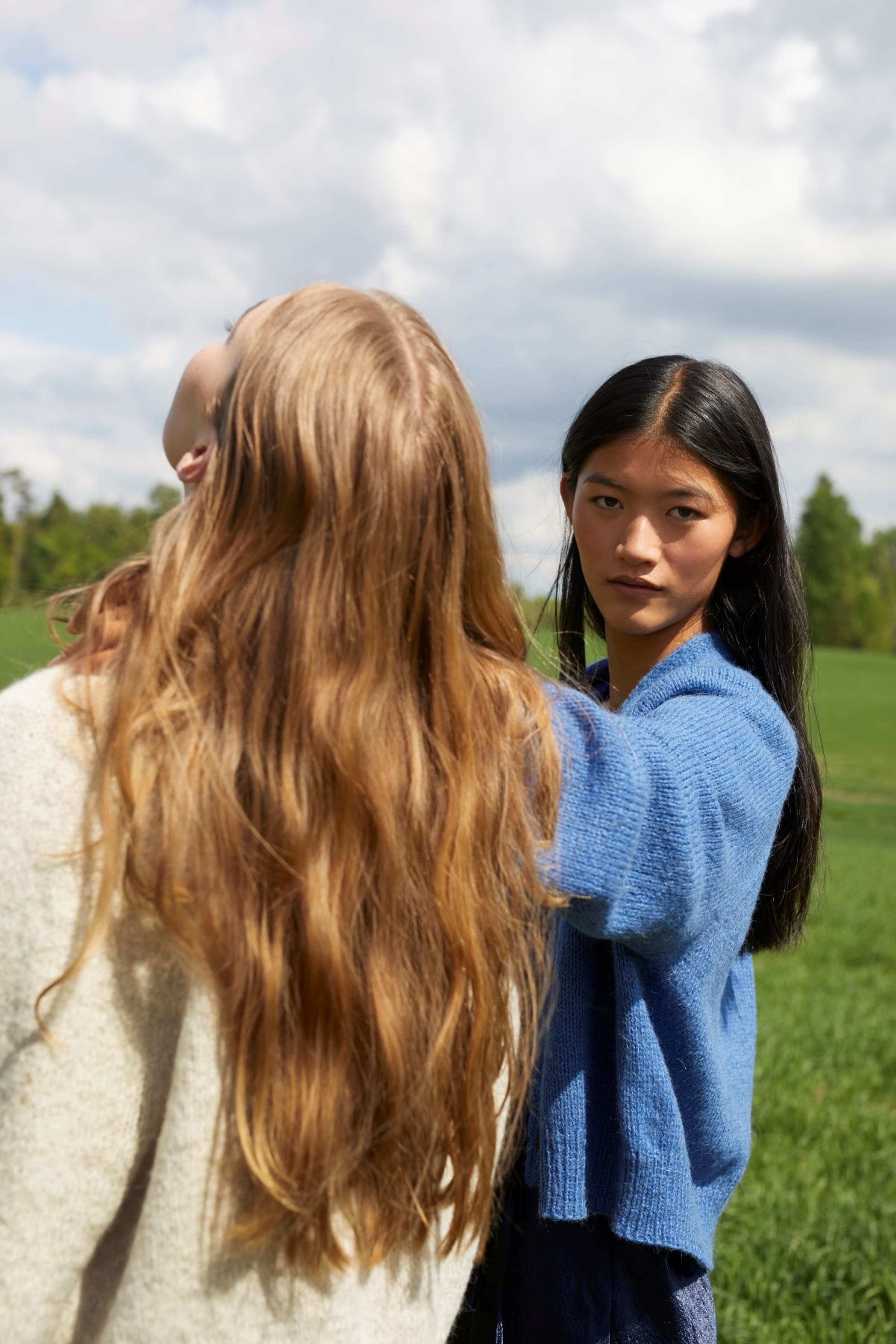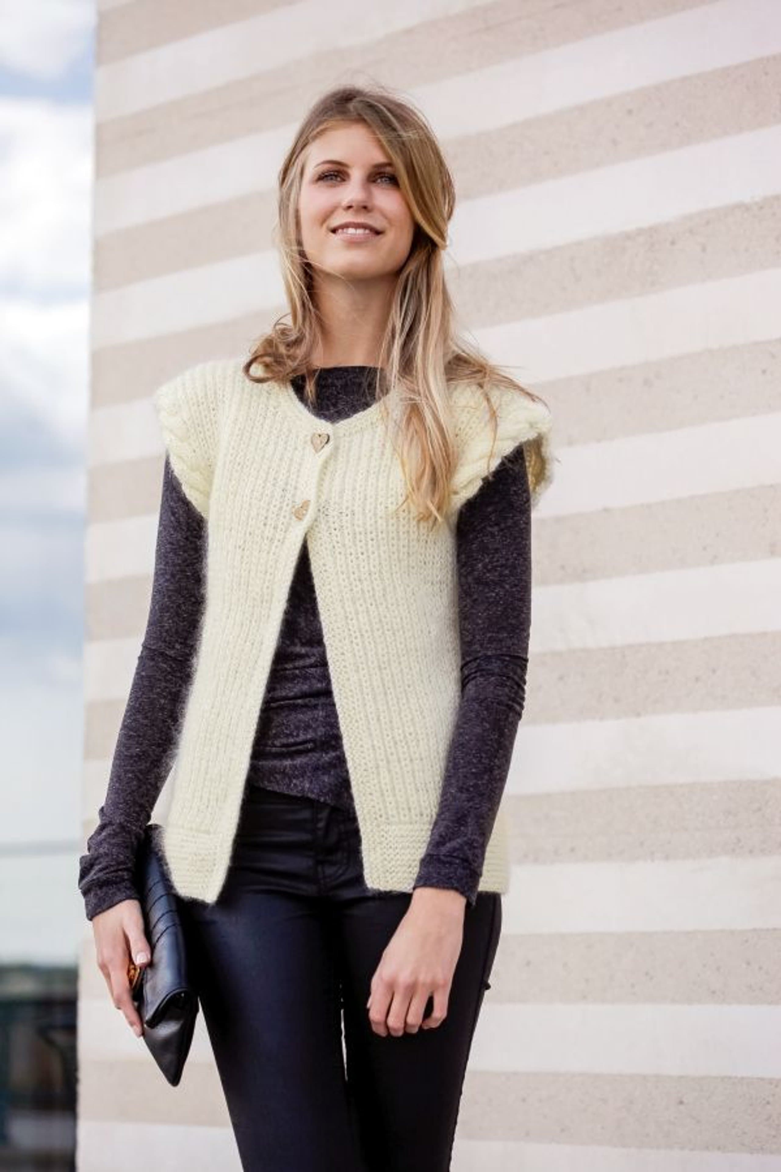 Garnkombinasjoner og forslag til strikkefasthet (p): Husk å strikke prøvelapp. Finull + Plum: 21 m = 10 cm (3,5) Finull + Alpaca Silk: 18 m = 10 cm (4) Finull x 2: 16 m = 10 cm (4,5) Finull x 2 + Plum: 14 m = 10 cm (6) Finull + Plum x 2: 14 m = 10 cm (6) Finull + Alpakka Lin: 14 m = 10 cm (5,5) Garnalternativer: Tumi Pt 5 Petunia Pelini