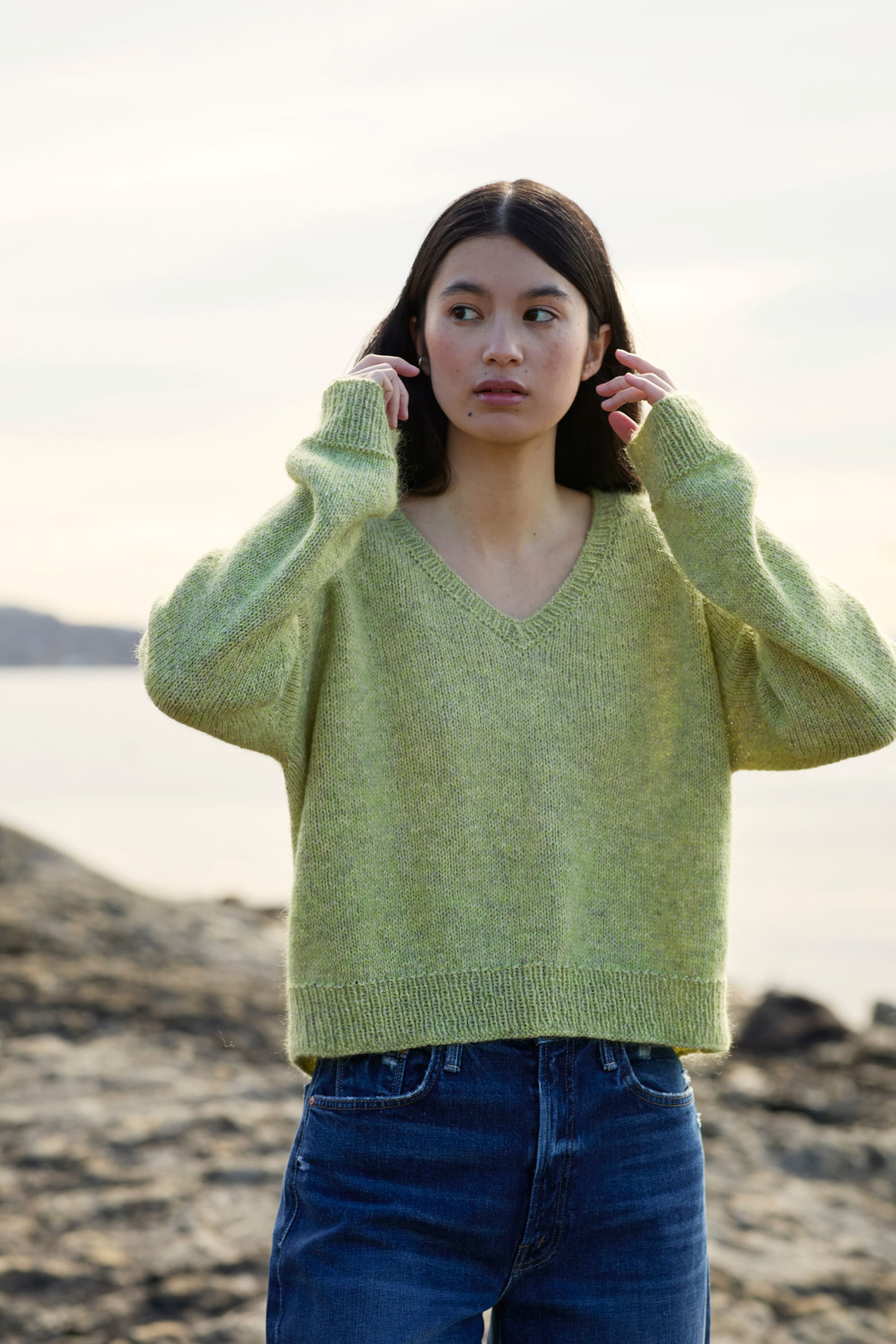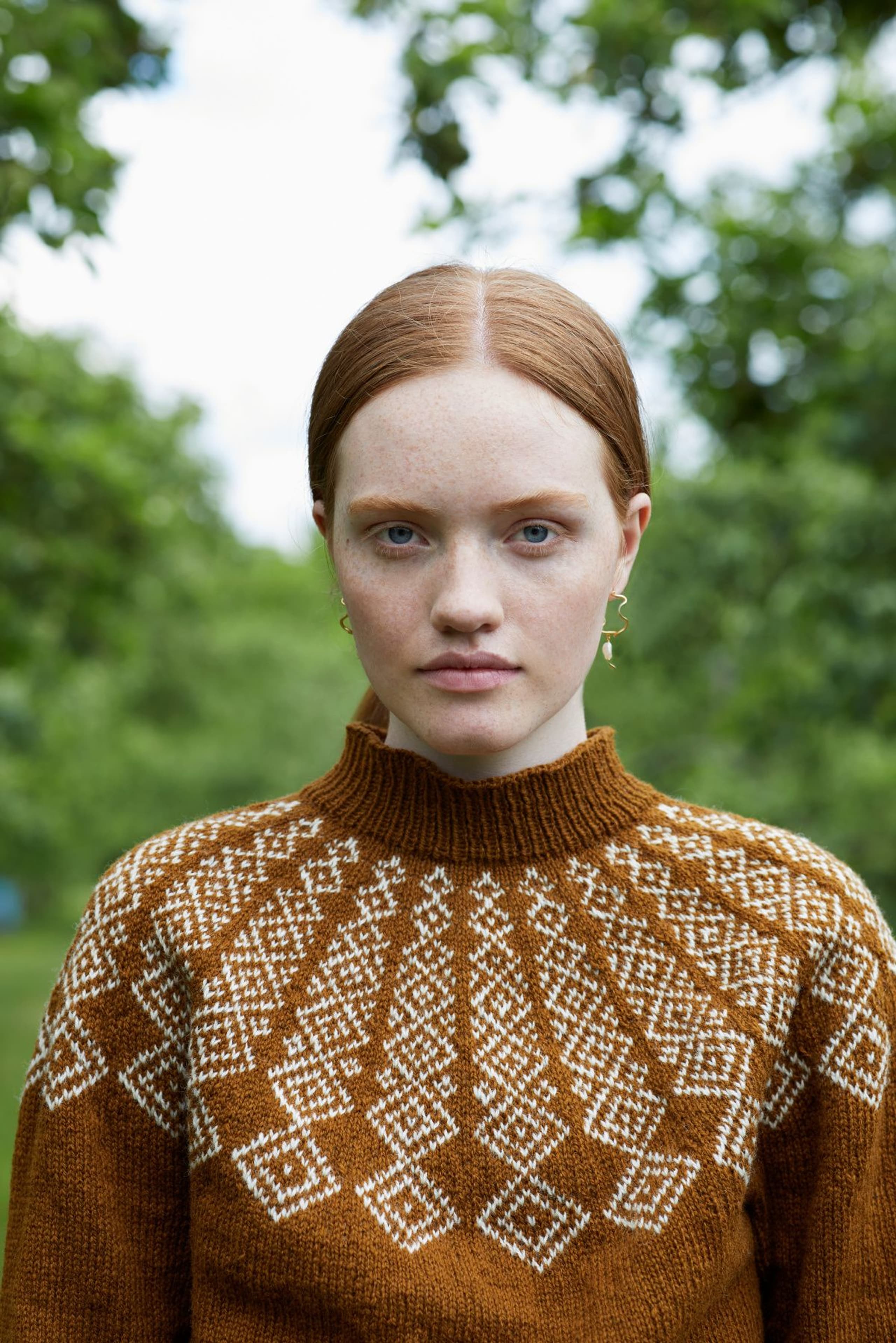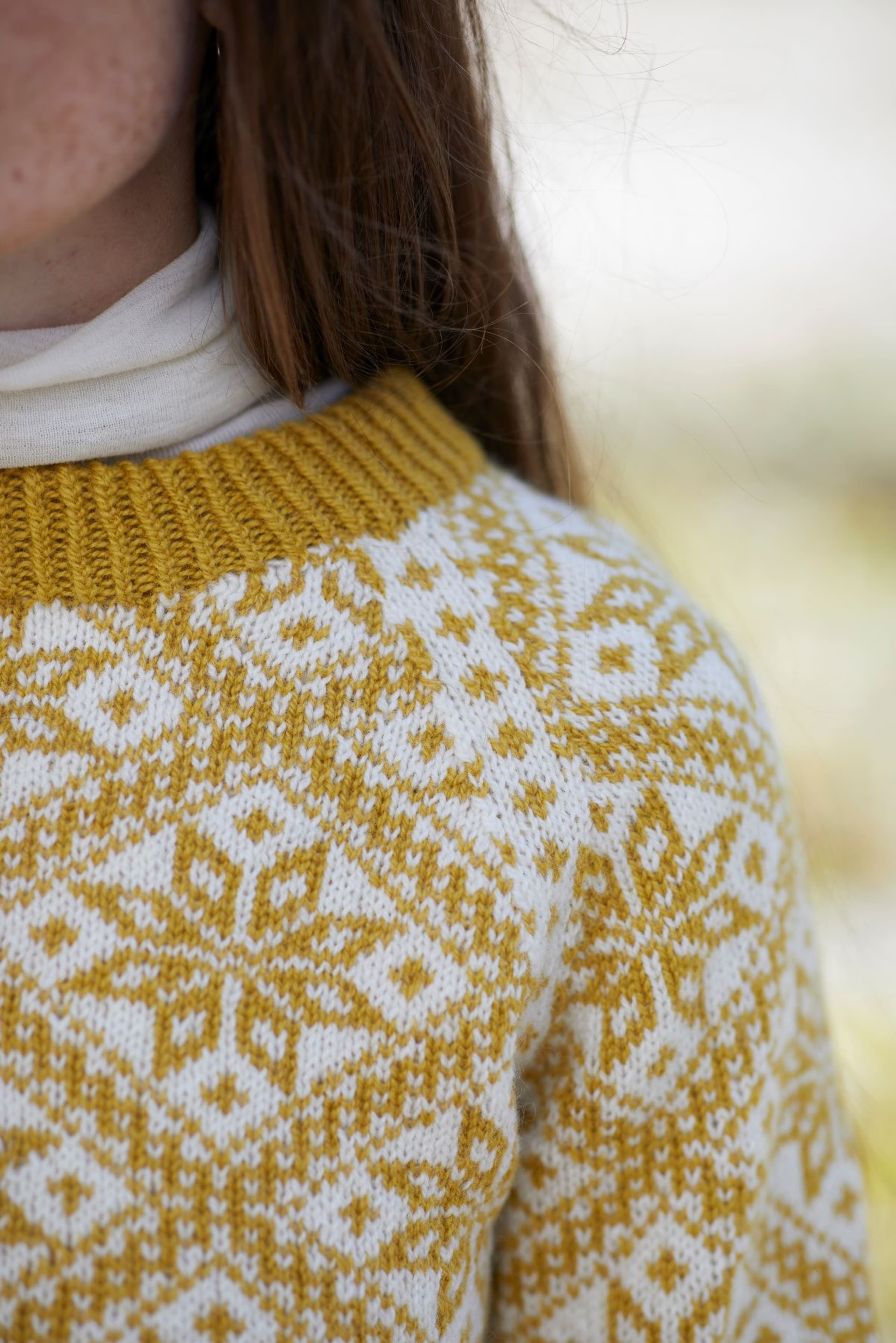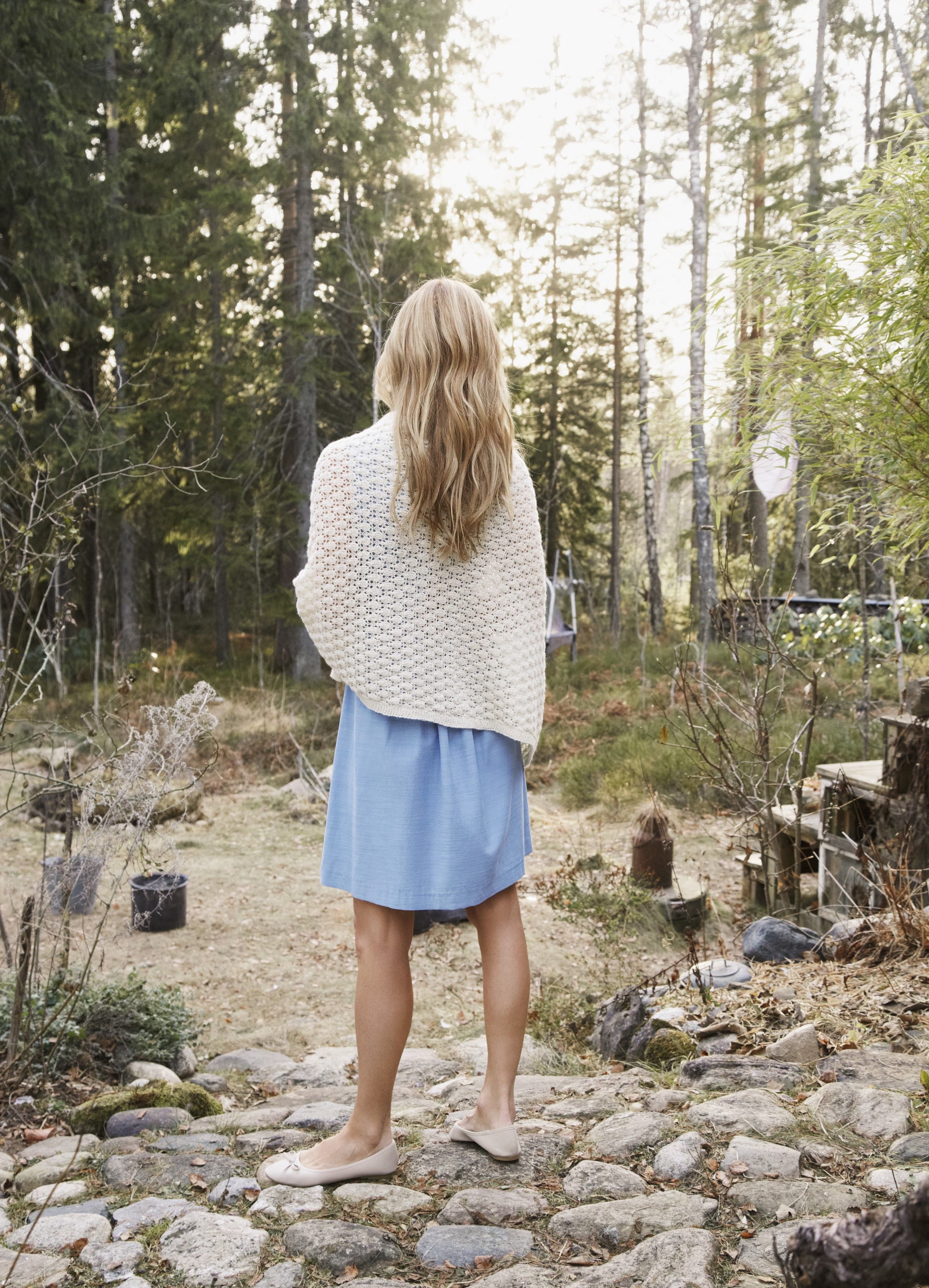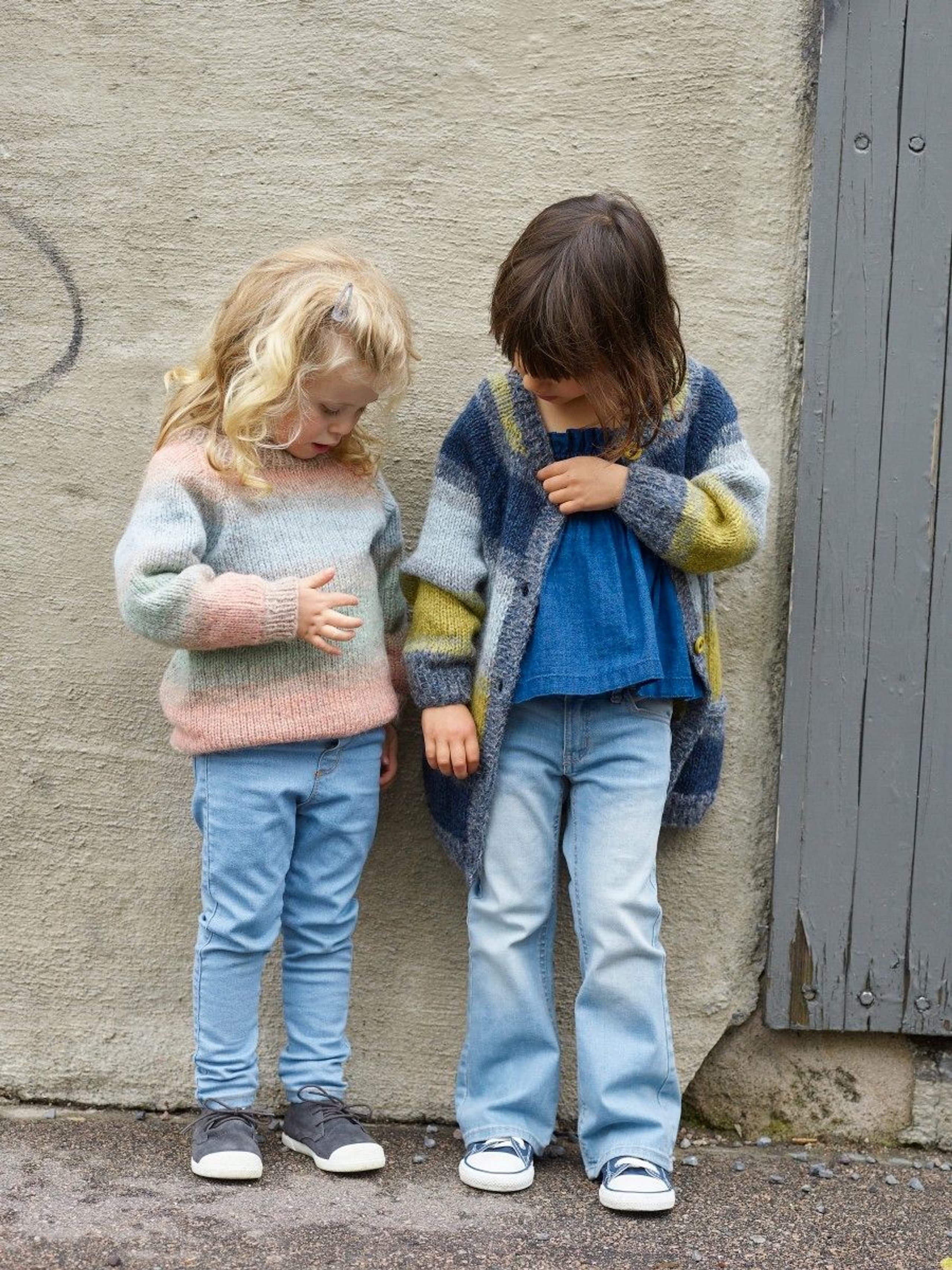 Garnkombinasjoner og forslag til strikkefasthet (p): Husk å strikke prøvelapp. Finull + Plum: 21 m = 10 cm (3,5) Finull + Alpaca Silk: 18 m = 10 cm (4) Finull x 2: 16 m = 10 cm (4,5) Finull x 2 + Plum: 14 m = 10 cm (6) Finull + Plum x 2: 14 m = 10 cm (6) Finull + Alpakka Lin: 14 m = 10 cm (5,5) Garnalternativer: Tumi Pt 5 Petunia Pelini