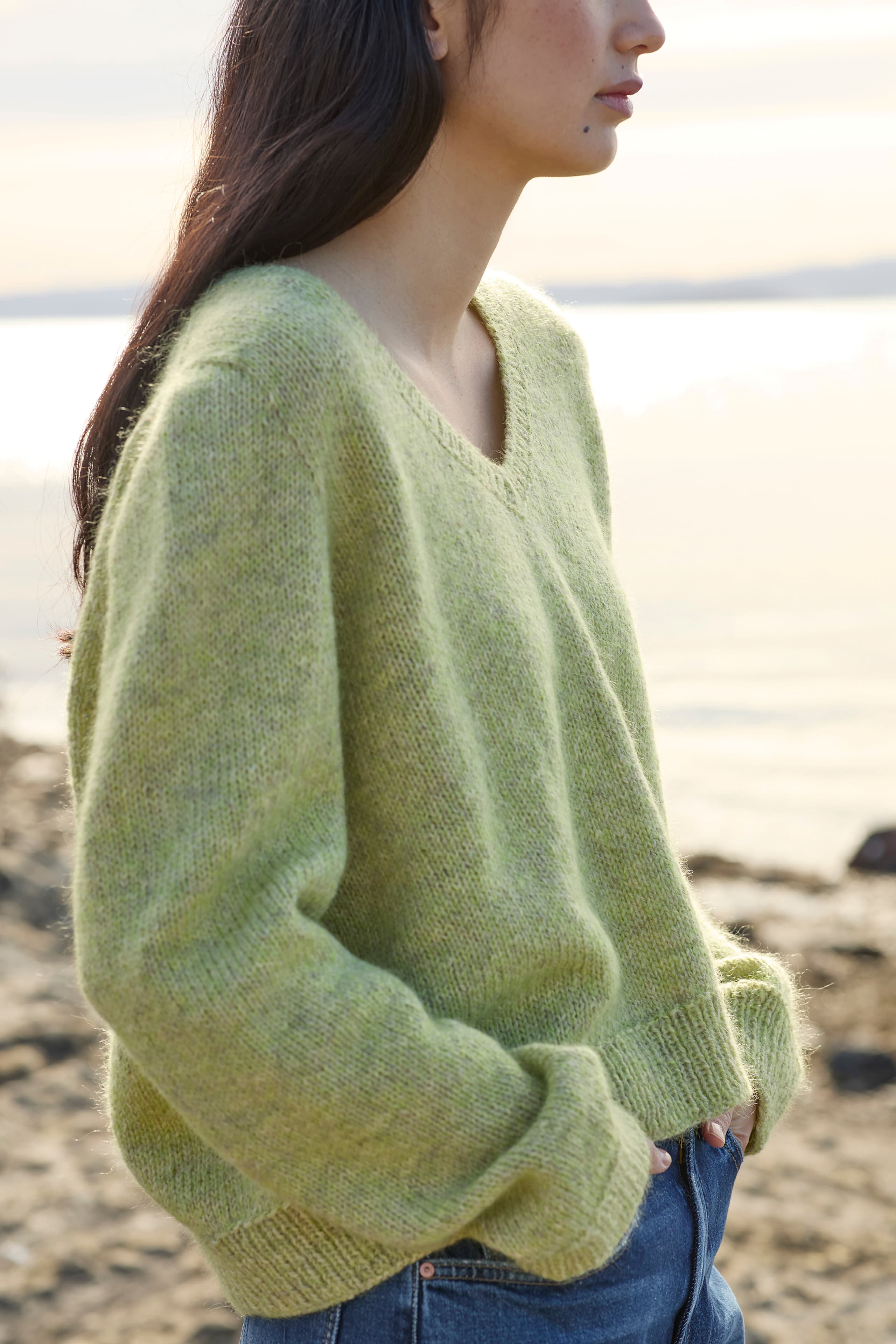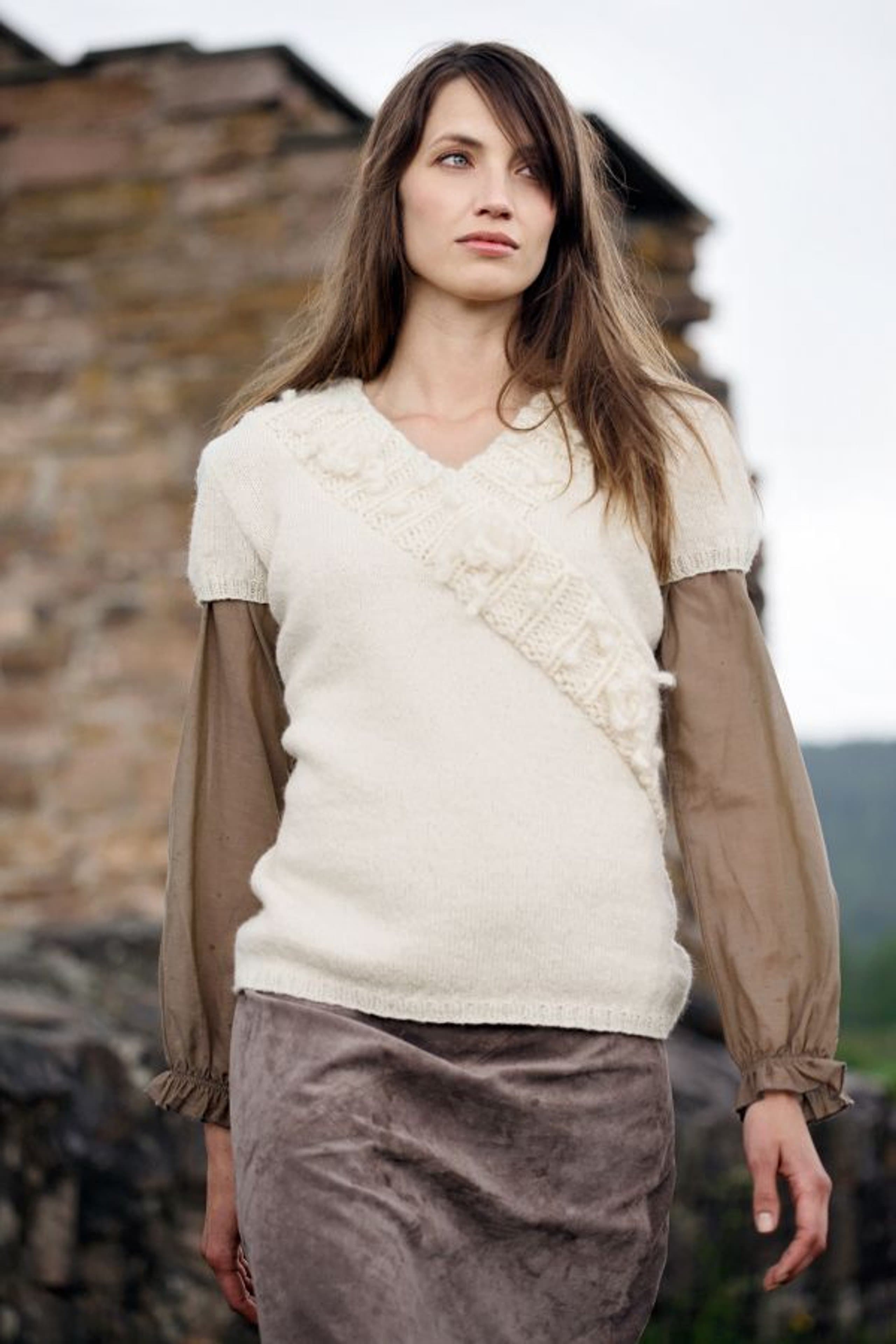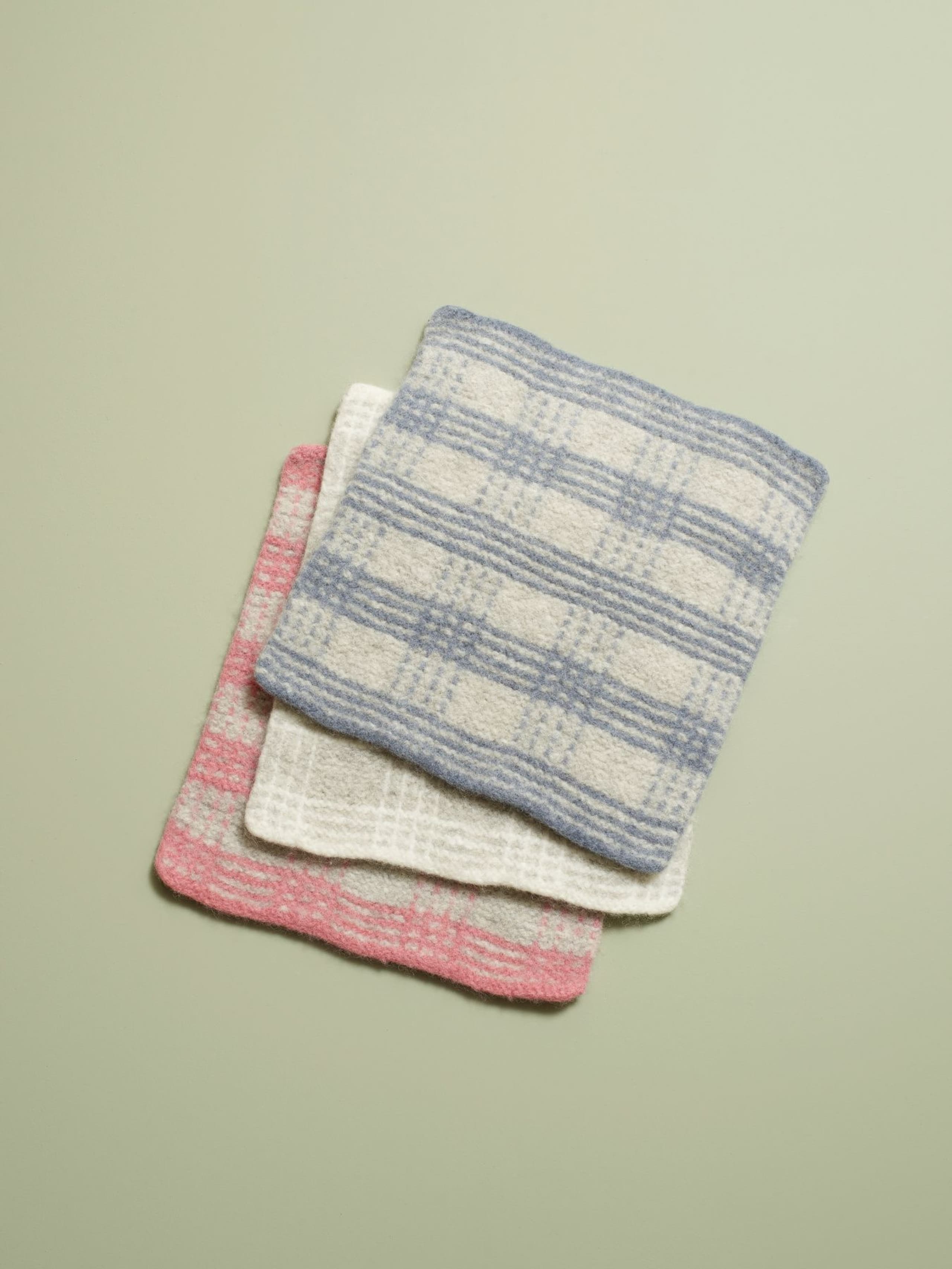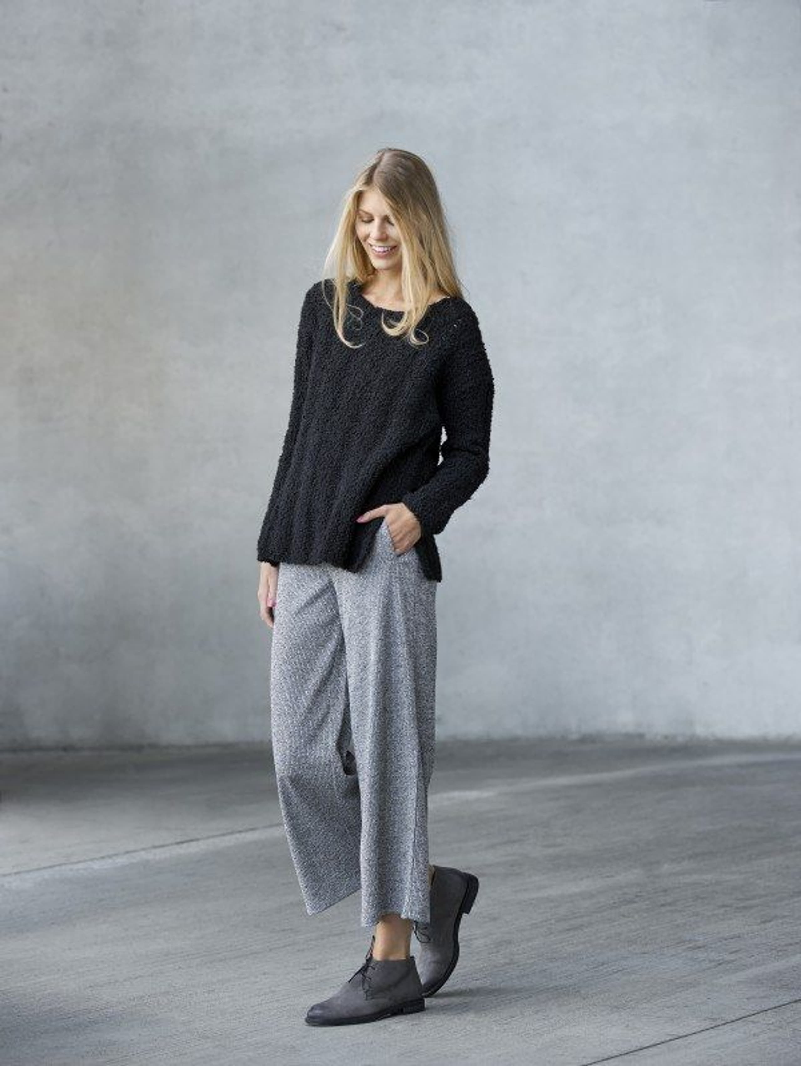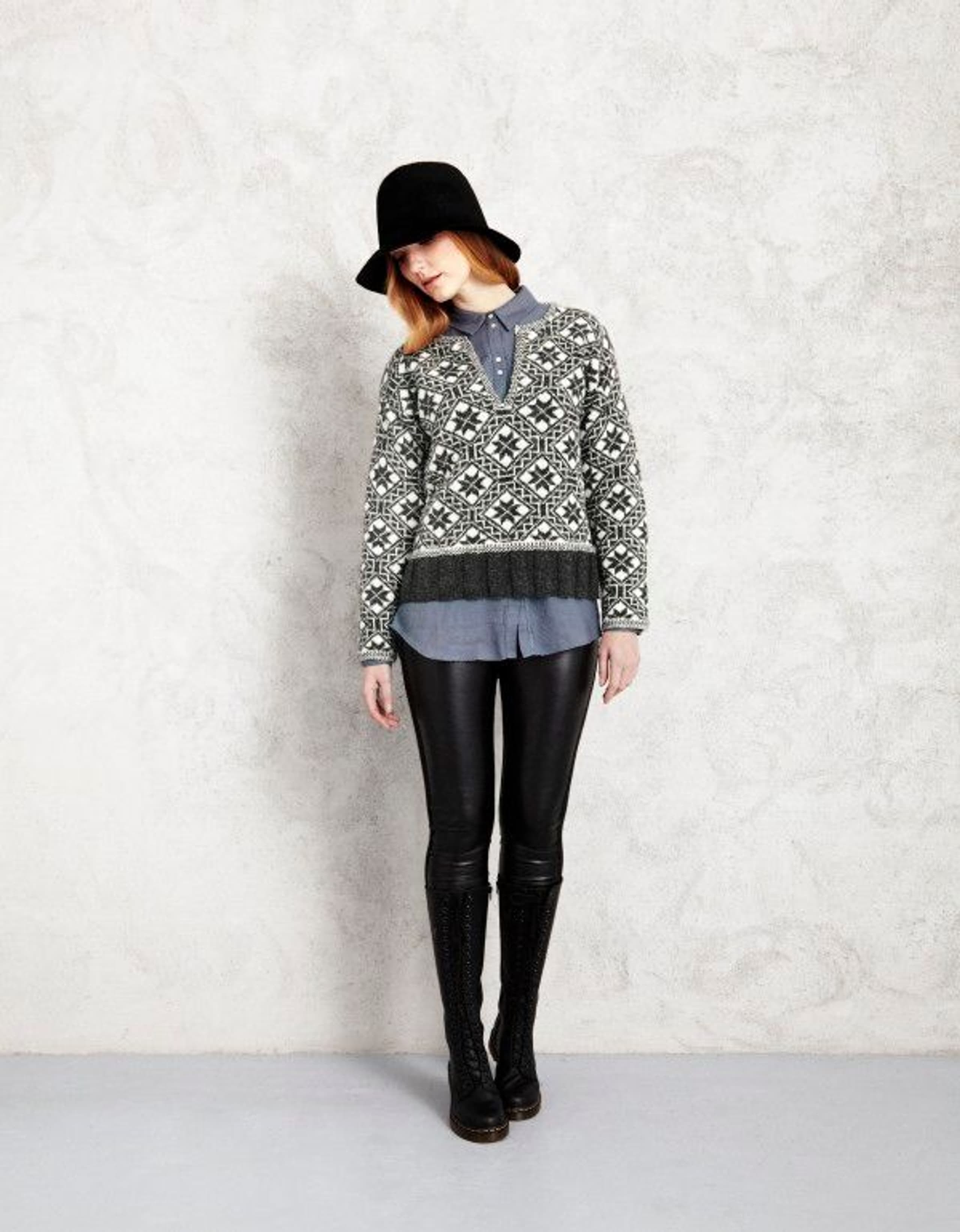 Garnkombinasjoner og forslag til strikkefasthet (p): Husk å strikke prøvelapp. Finull + Plum: 21 m = 10 cm (3,5) Finull + Alpaca Silk: 18 m = 10 cm (4) Finull x 2: 16 m = 10 cm (4,5) Finull x 2 + Plum: 14 m = 10 cm (6) Finull + Plum x 2: 14 m = 10 cm (6) Finull + Alpakka Lin: 14 m = 10 cm (5,5) Garnalternativer: Tumi Pt 5 Petunia Pelini