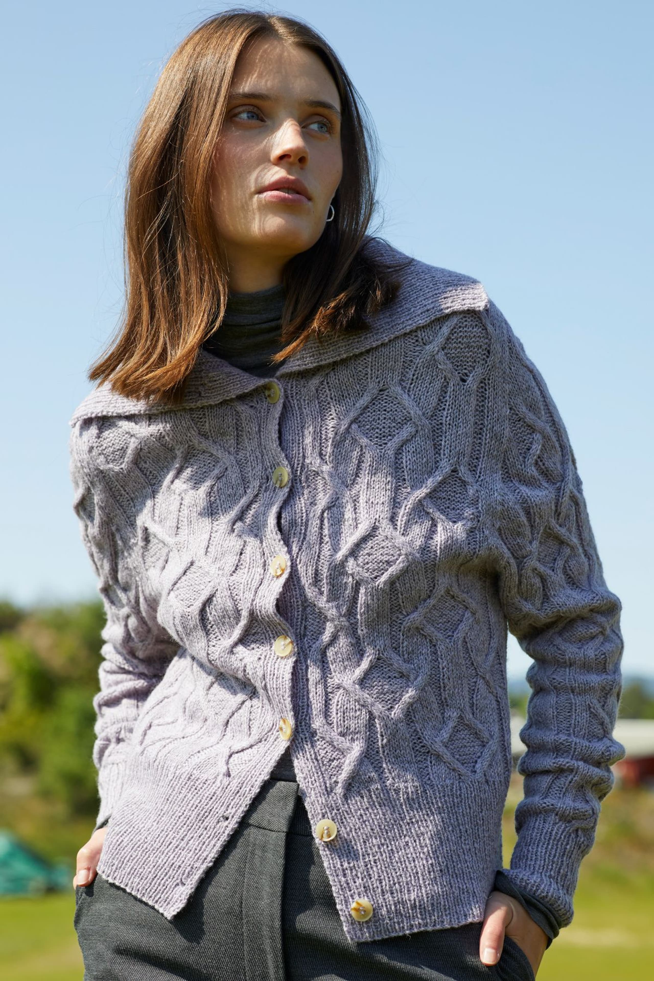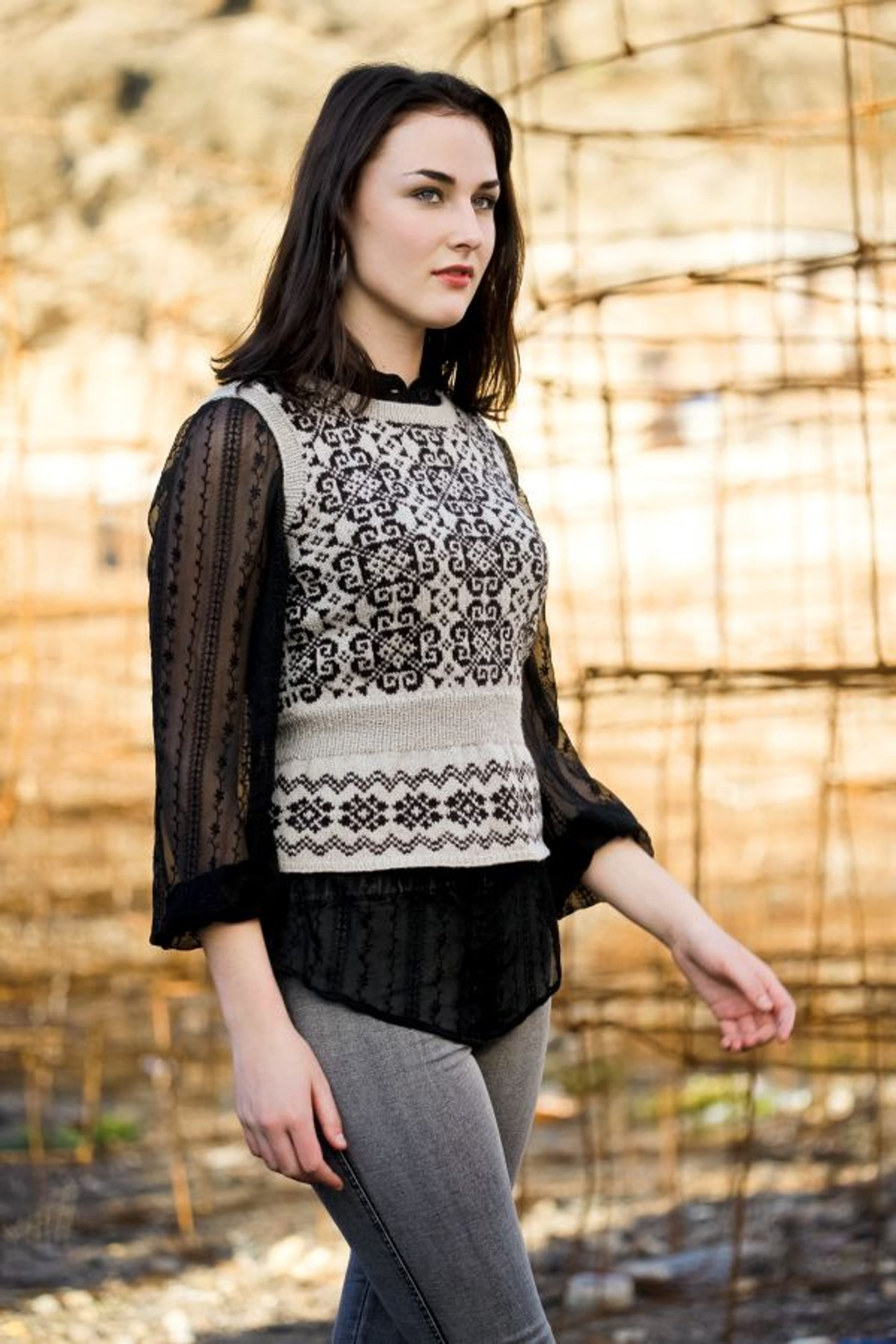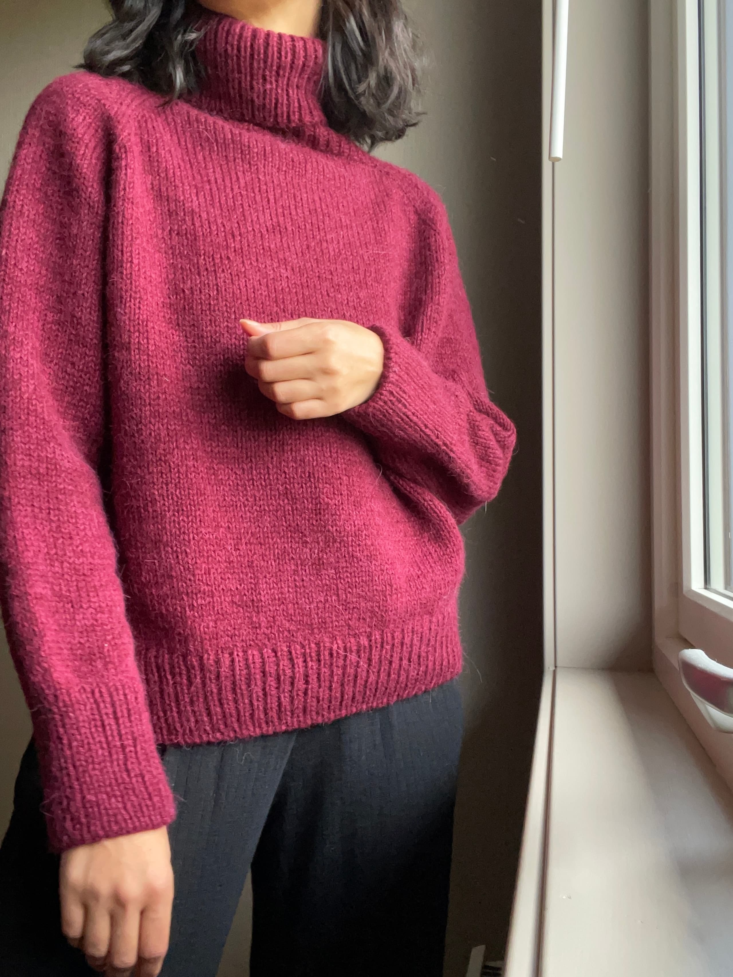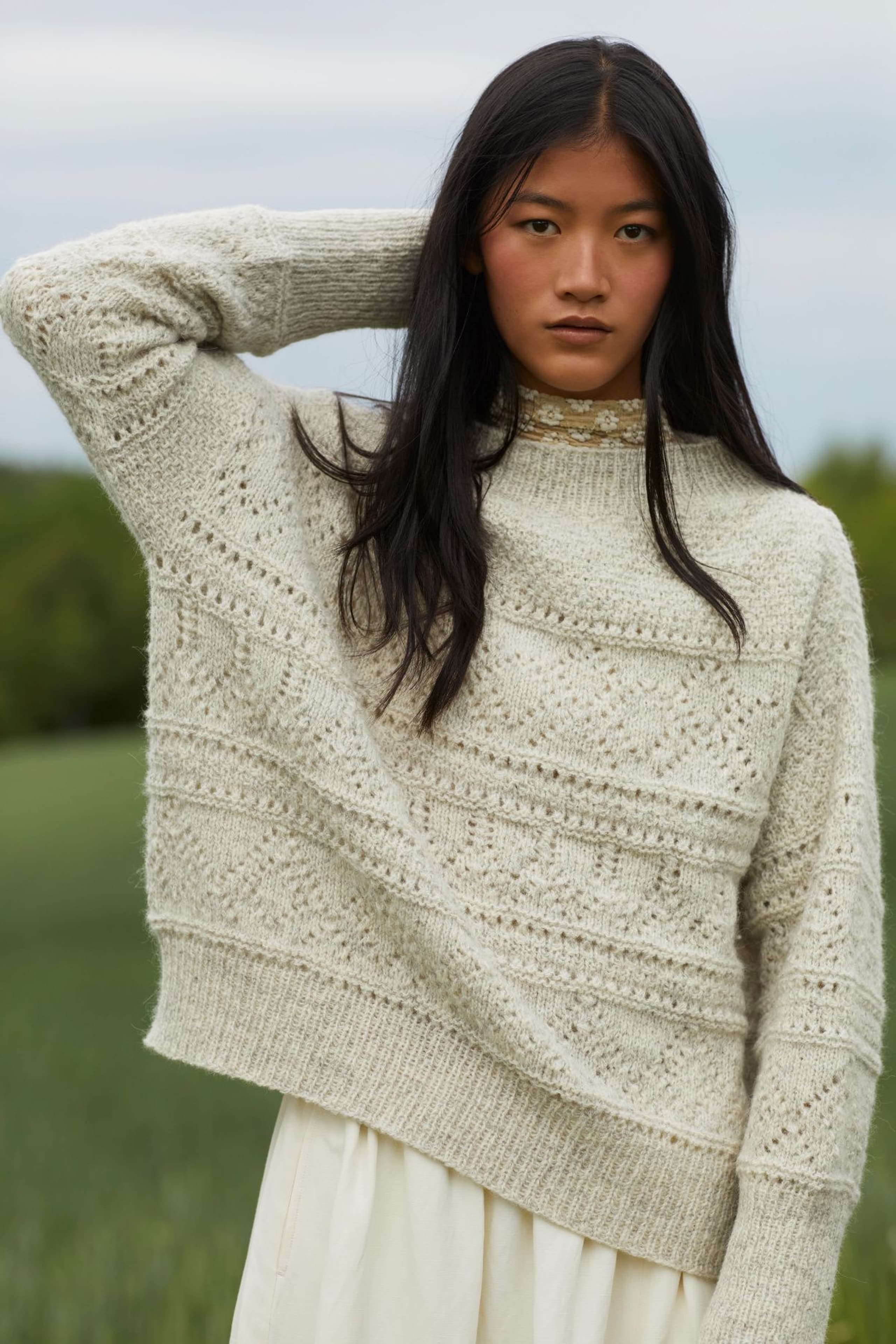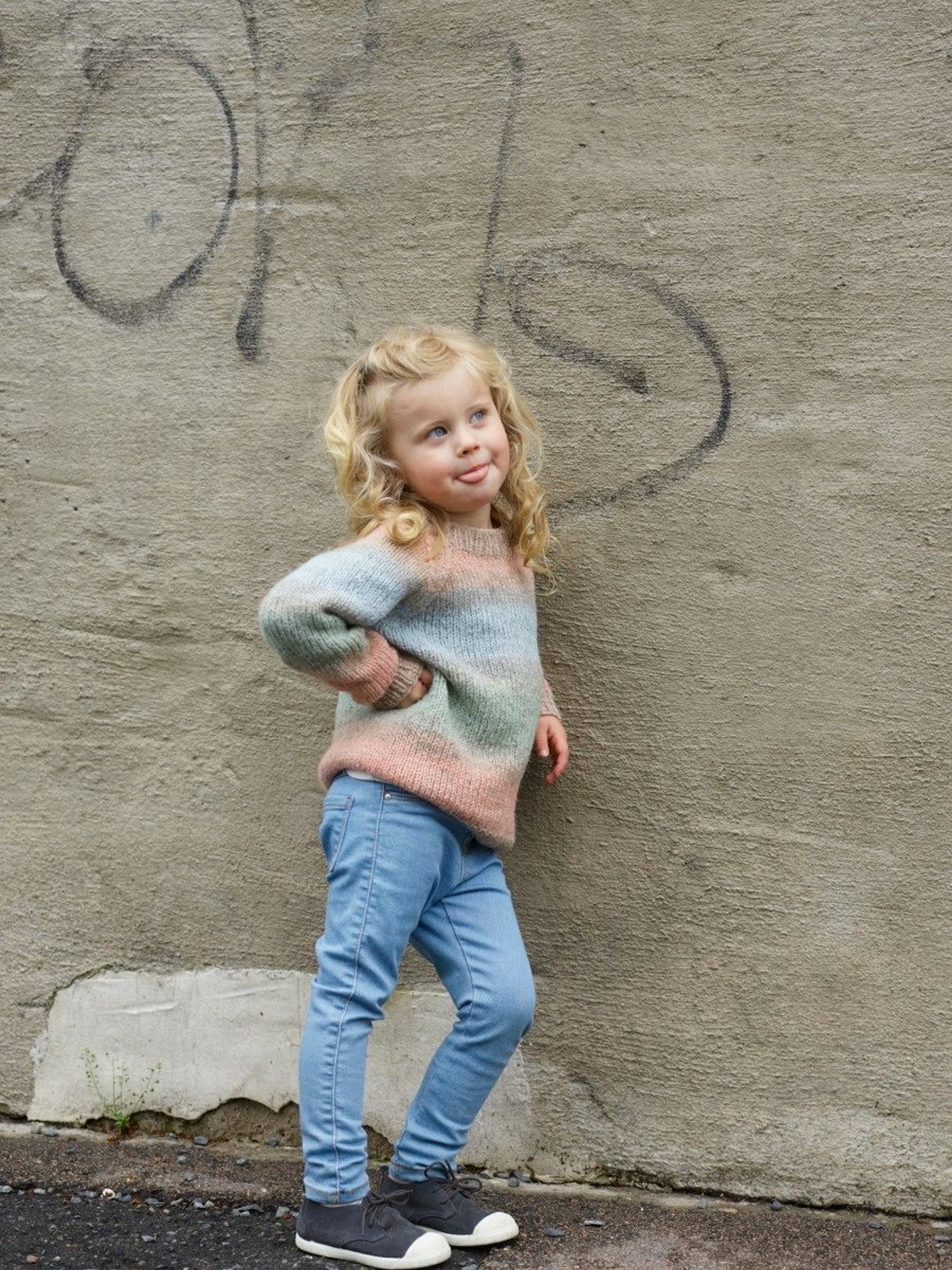 Garnkombinasjoner og forslag til strikkefasthet (p): Husk å strikke prøvelapp. Finull + Plum: 21 m = 10 cm (3,5) Finull + Alpaca Silk: 18 m = 10 cm (4) Finull x 2: 16 m = 10 cm (4,5) Finull x 2 + Plum: 14 m = 10 cm (6) Finull + Plum x 2: 14 m = 10 cm (6) Finull + Alpakka Lin: 14 m = 10 cm (5,5) Garnalternativer: Tumi Pt 5 Petunia Pelini
