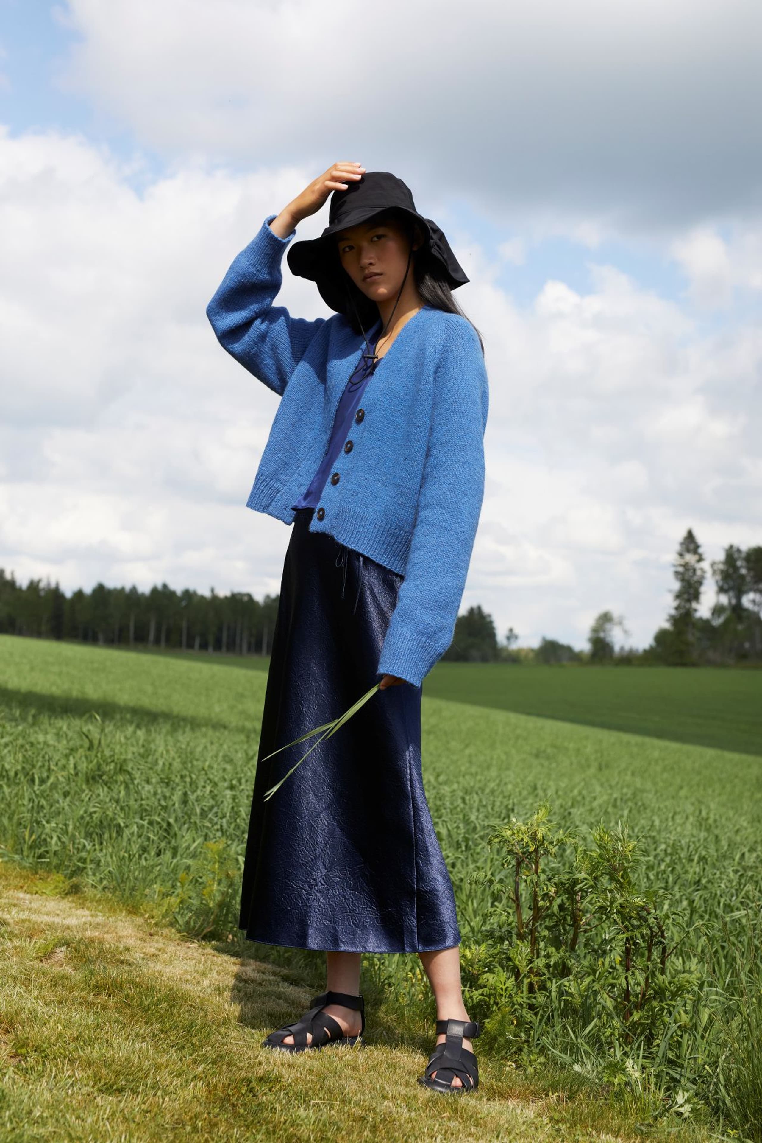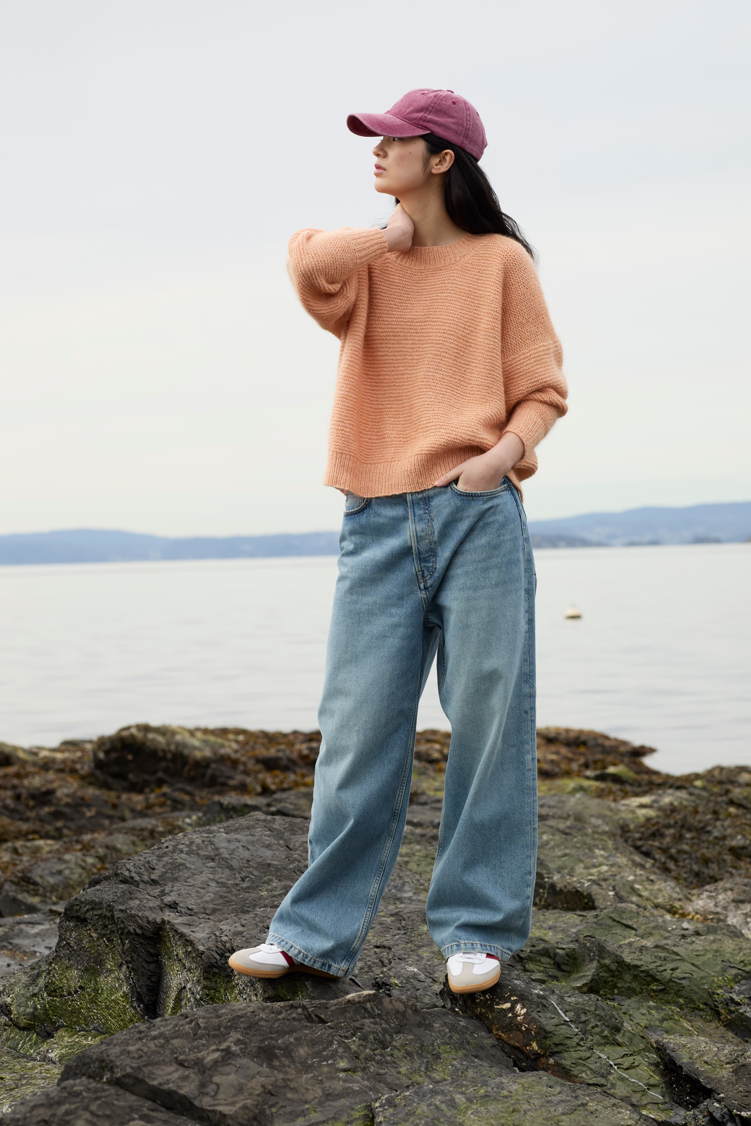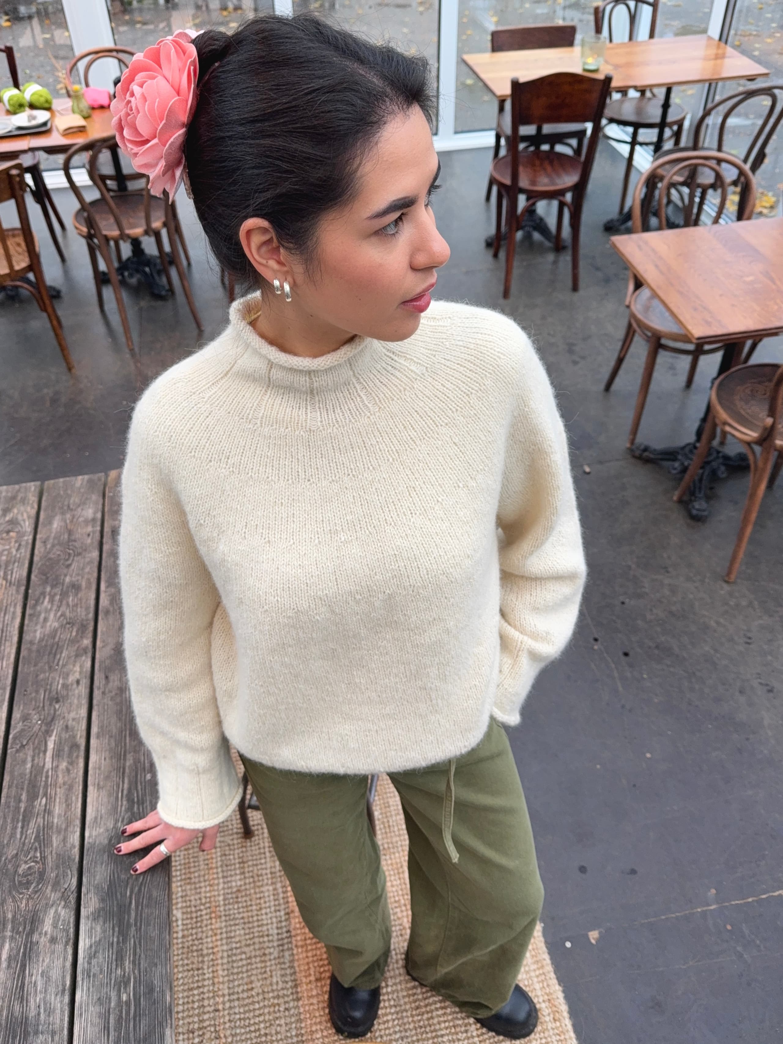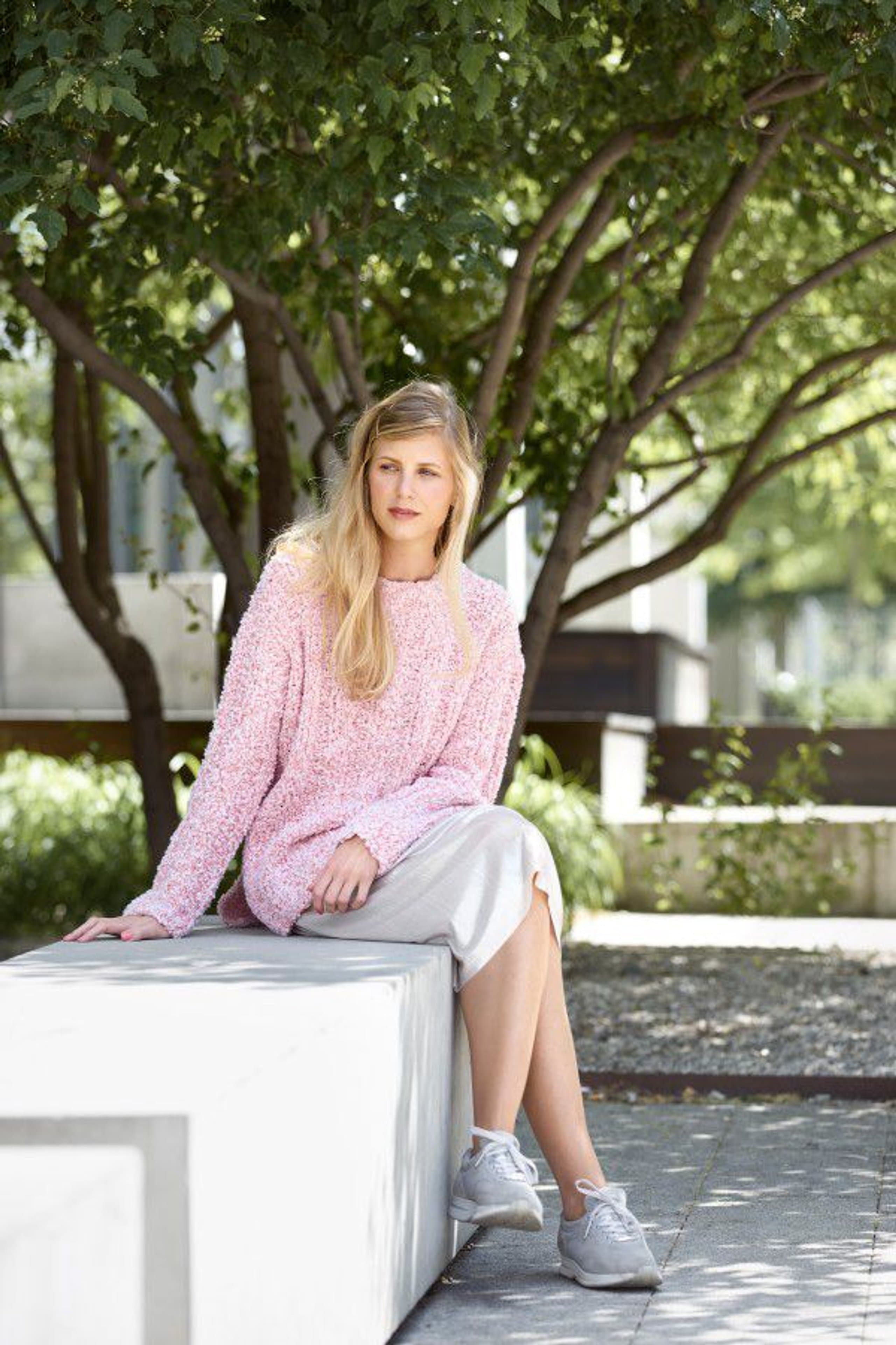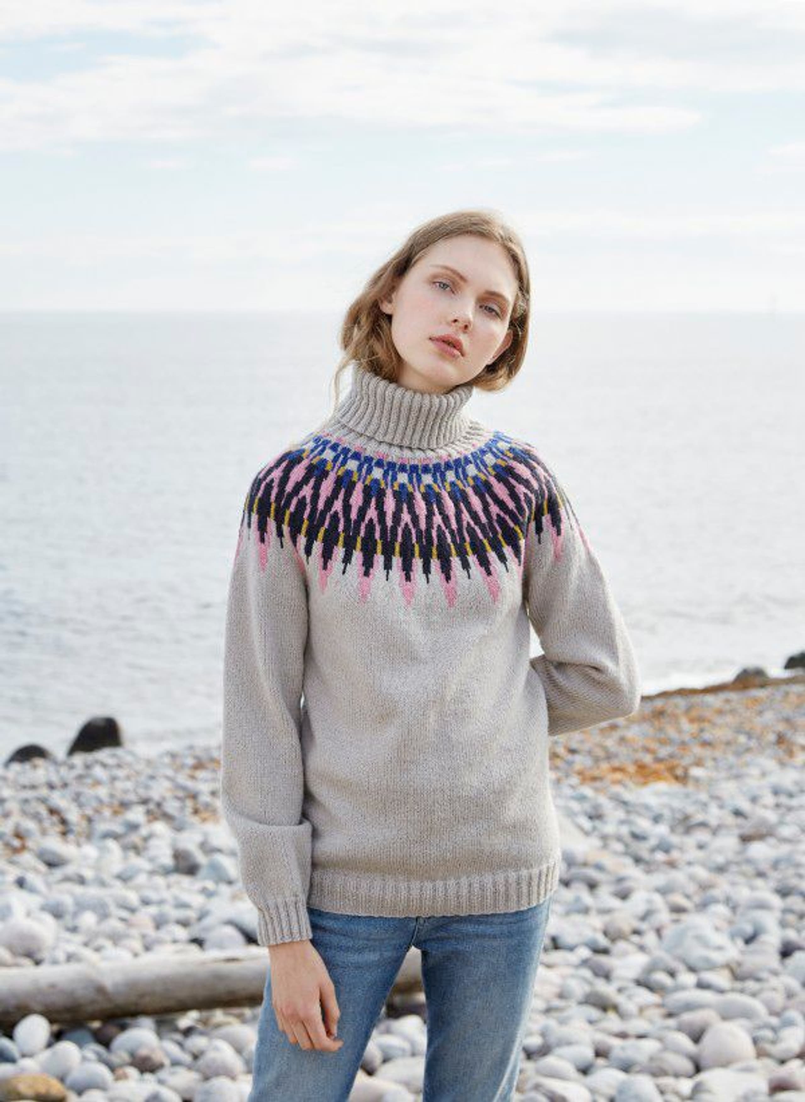 Garnkombinasjoner og forslag til strikkefasthet (p): Husk å strikke prøvelapp. Finull + Plum: 21 m = 10 cm (3,5) Finull + Alpaca Silk: 18 m = 10 cm (4) Finull x 2: 16 m = 10 cm (4,5) Finull x 2 + Plum: 14 m = 10 cm (6) Finull + Plum x 2: 14 m = 10 cm (6) Finull + Alpakka Lin: 14 m = 10 cm (5,5) Garnalternativer: Tumi Pt 5 Petunia Pelini