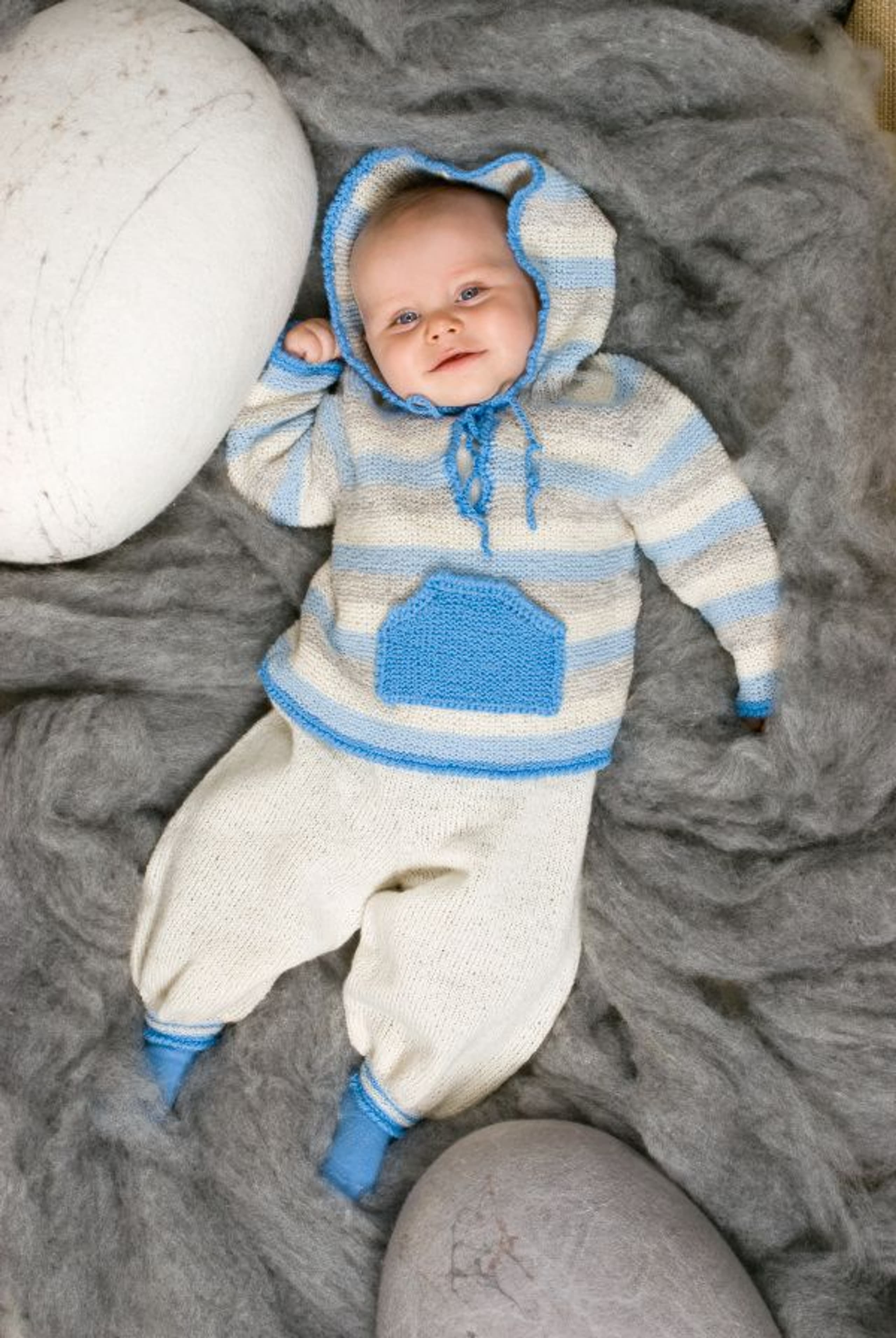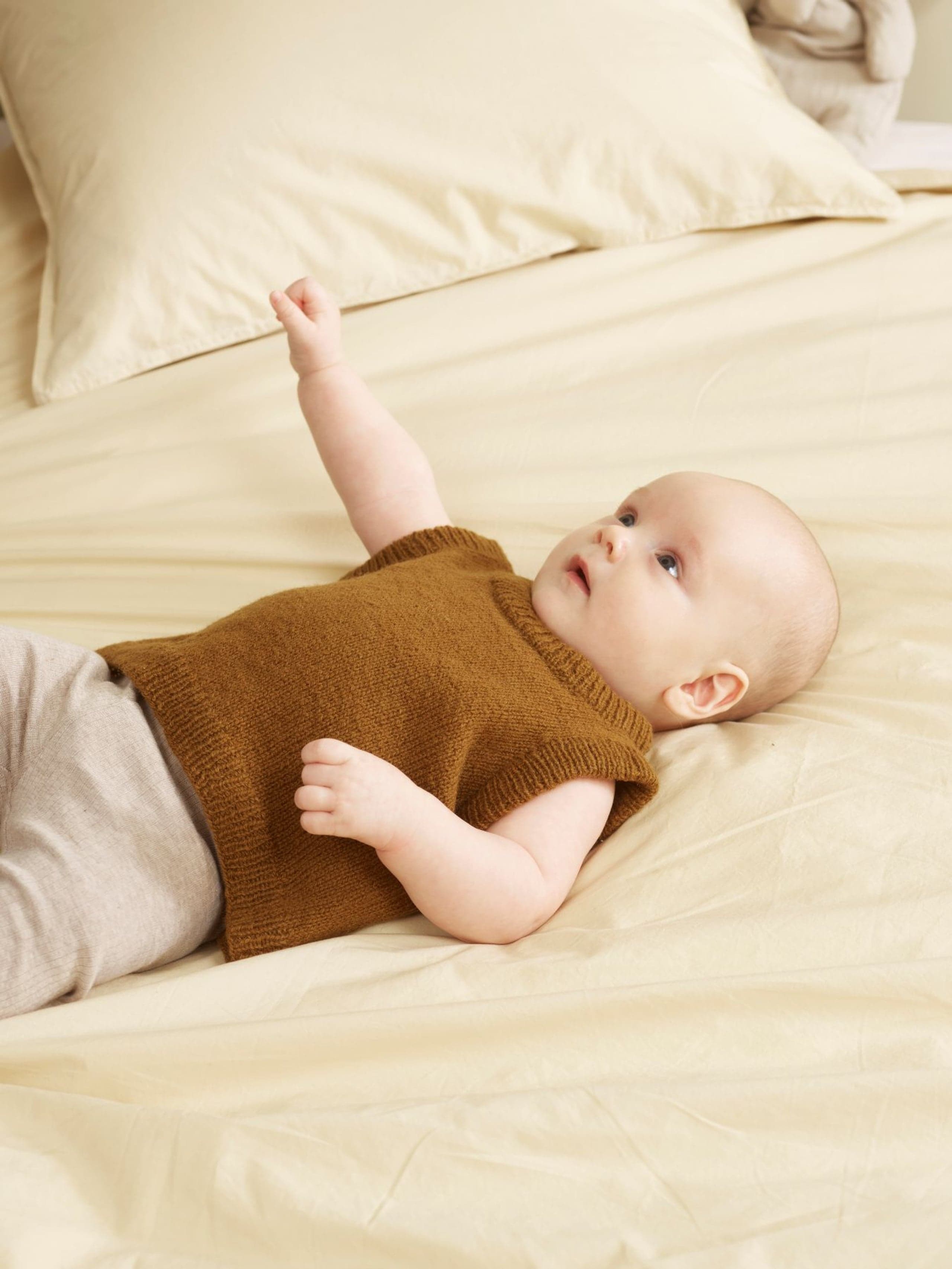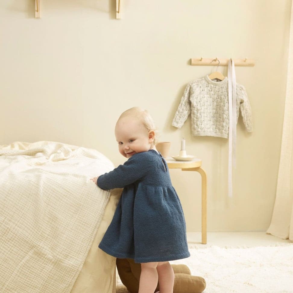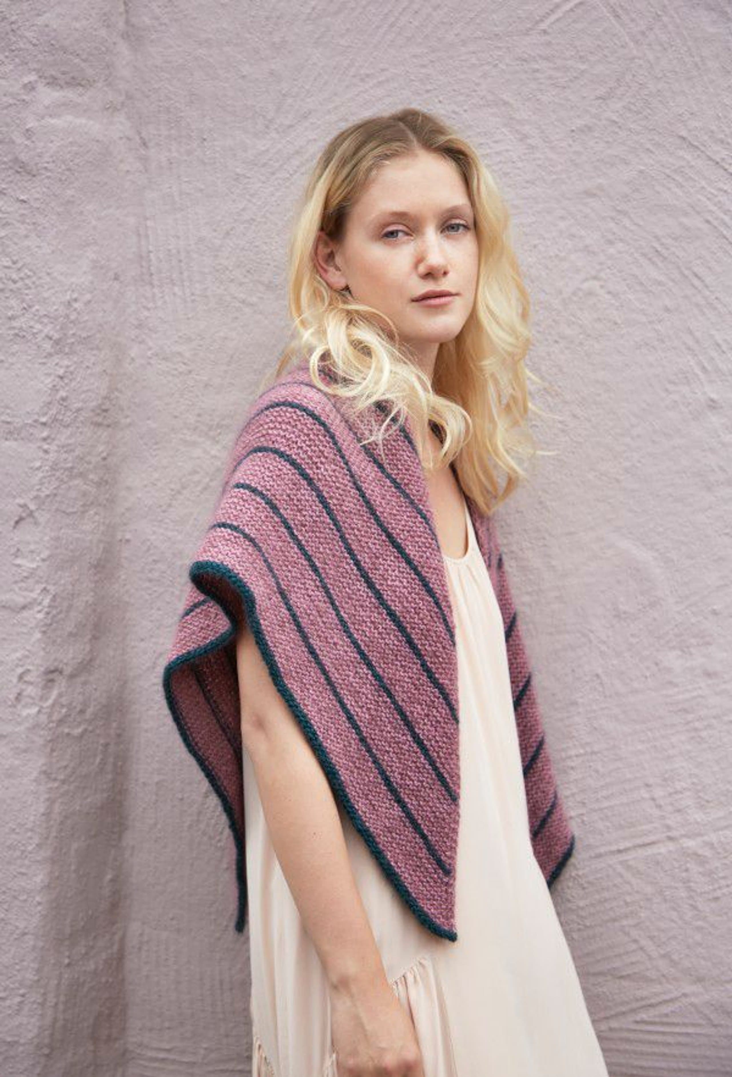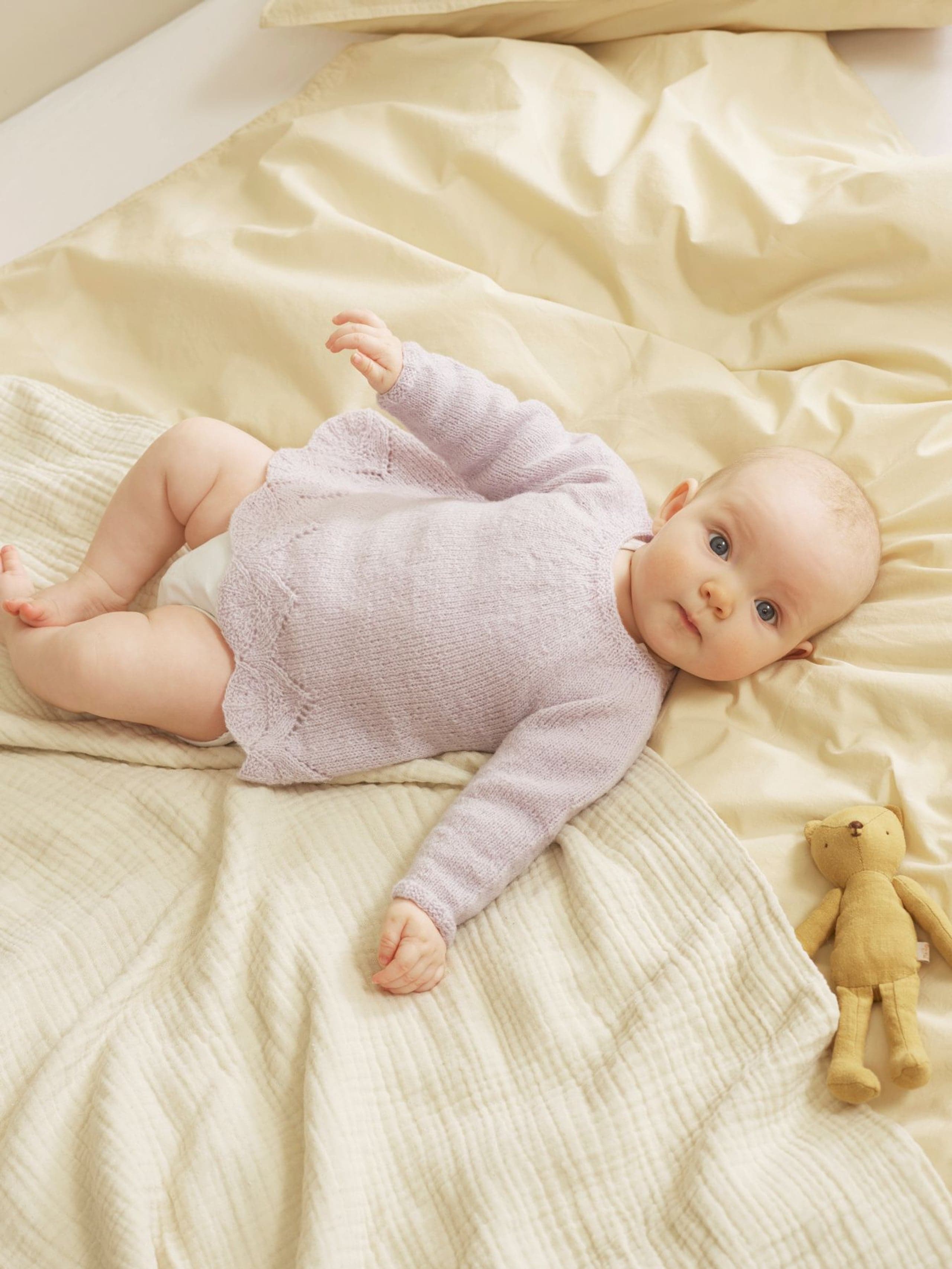 Garnkombinasjoner og forslag til strikkefasthet (p): Husk å strikke prøvelapp. Lamull + Plum: 20 m = 10 cm (3,5) Lamull + Alpaca Silk: 20 m = 10 cm (3) Lamull + Plum x 2: 18 m på 10 cm (4) Lamull x 2 : 18 m = 10 cm (3,5) Lamull + Tumi: 17 m = 10 cm (5) Lamull x 2 + Plum: 16 m = 10 cm (4,5) Lamull + Alpakka Lin: 14 m = 10 cm (4,5) Garnalternativer: Babygarn Inca Pandora