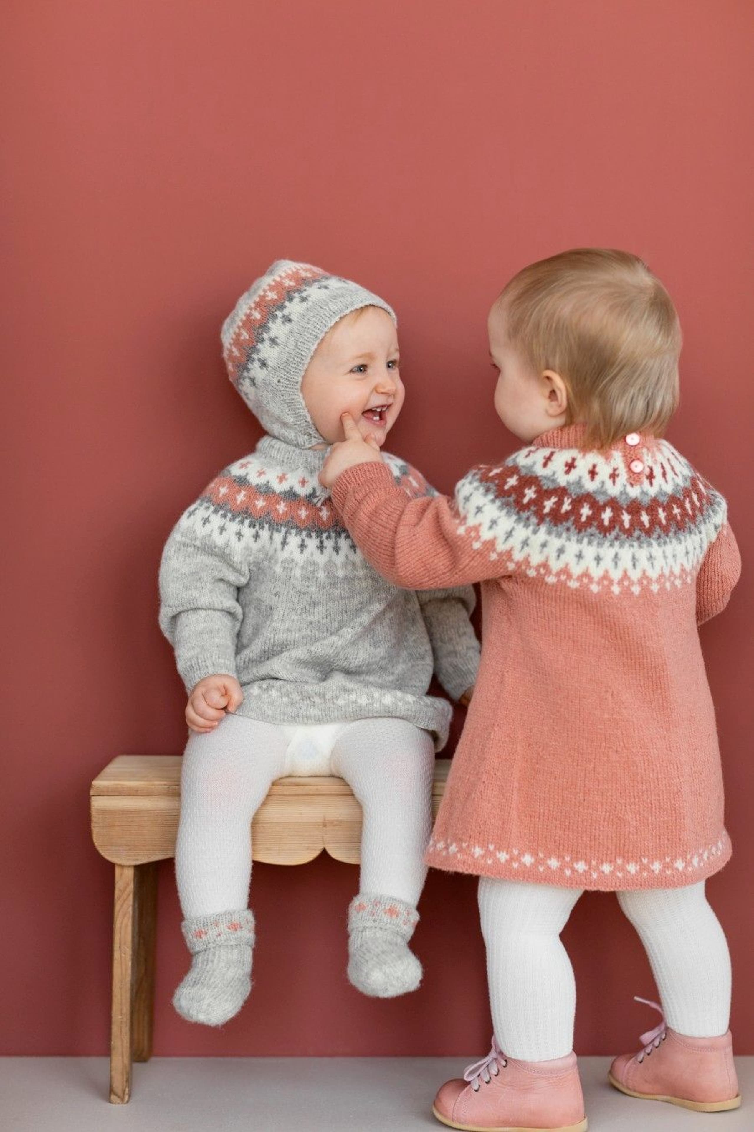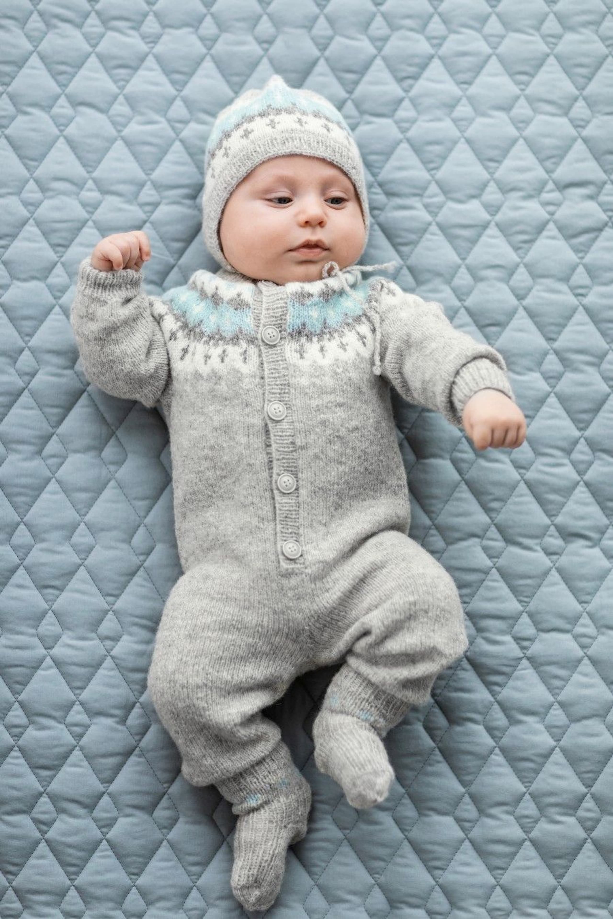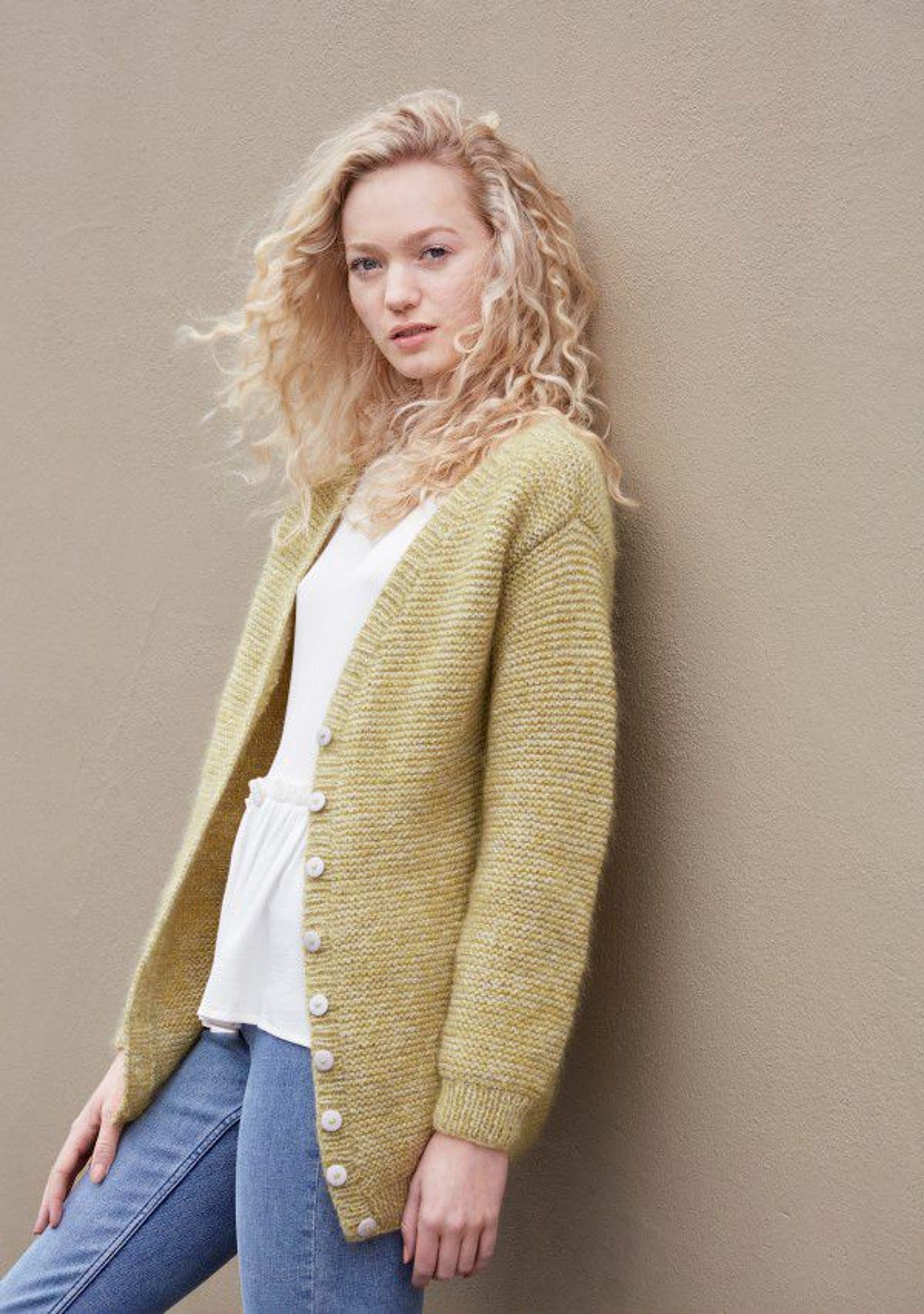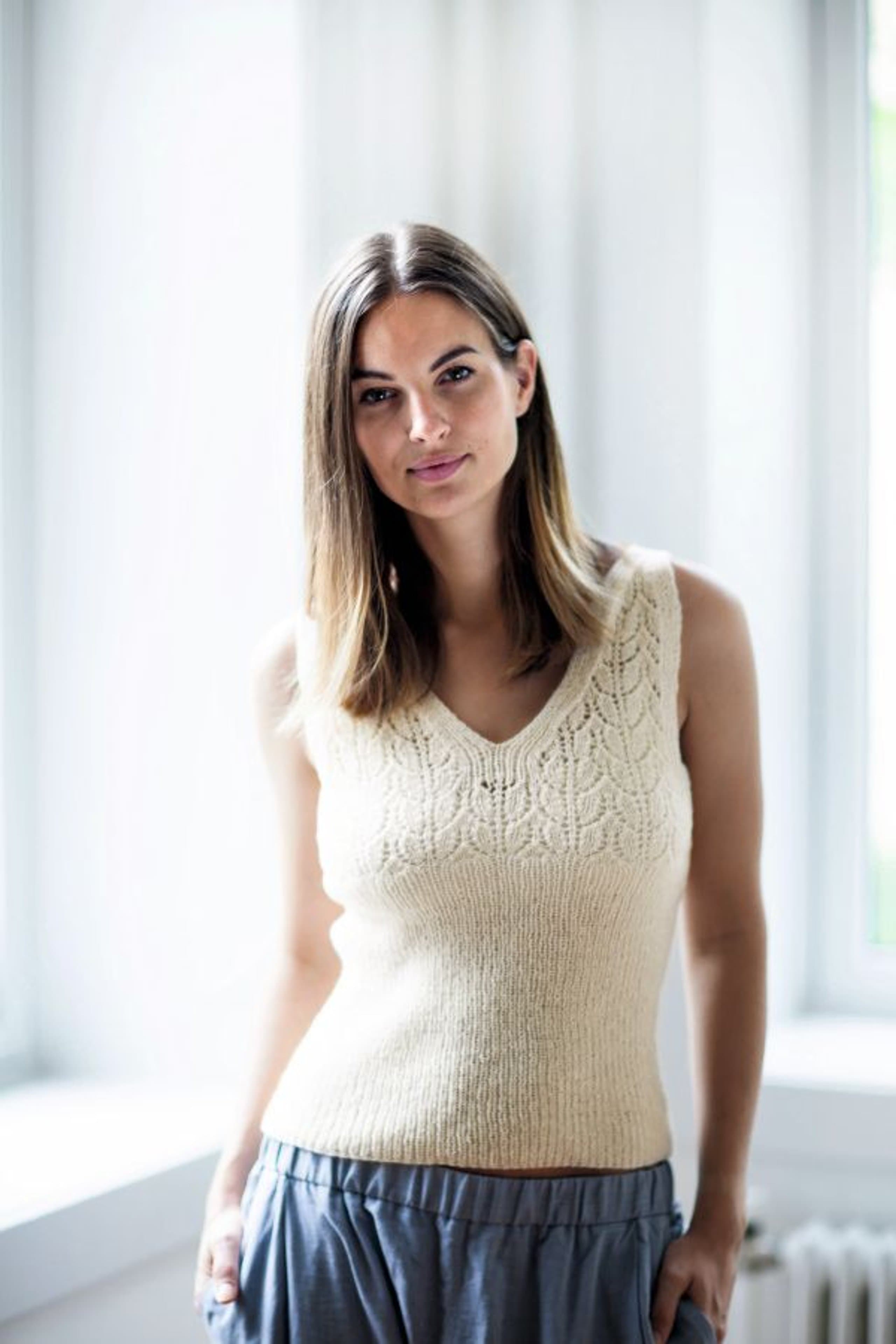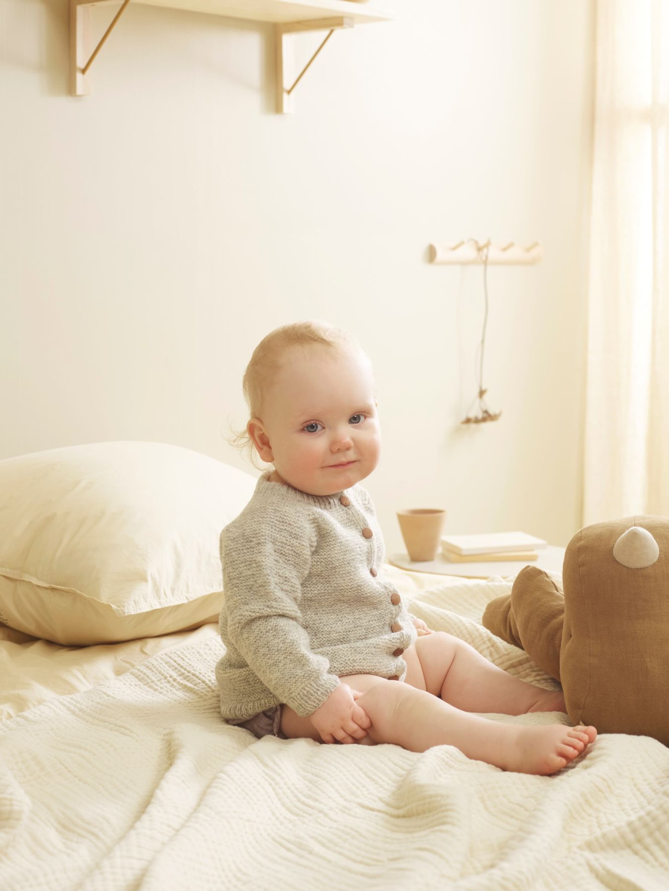 Garnkombinasjoner og forslag til strikkefasthet (p): Husk å strikke prøvelapp. Lamull + Plum: 20 m = 10 cm (3,5) Lamull + Alpaca Silk: 20 m = 10 cm (3) Lamull + Plum x 2: 18 m på 10 cm (4) Lamull x 2 : 18 m = 10 cm (3,5) Lamull + Tumi: 17 m = 10 cm (5) Lamull x 2 + Plum: 16 m = 10 cm (4,5) Lamull + Alpakka Lin: 14 m = 10 cm (4,5) Garnalternativer: Babygarn Inca Pandora