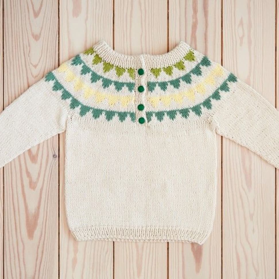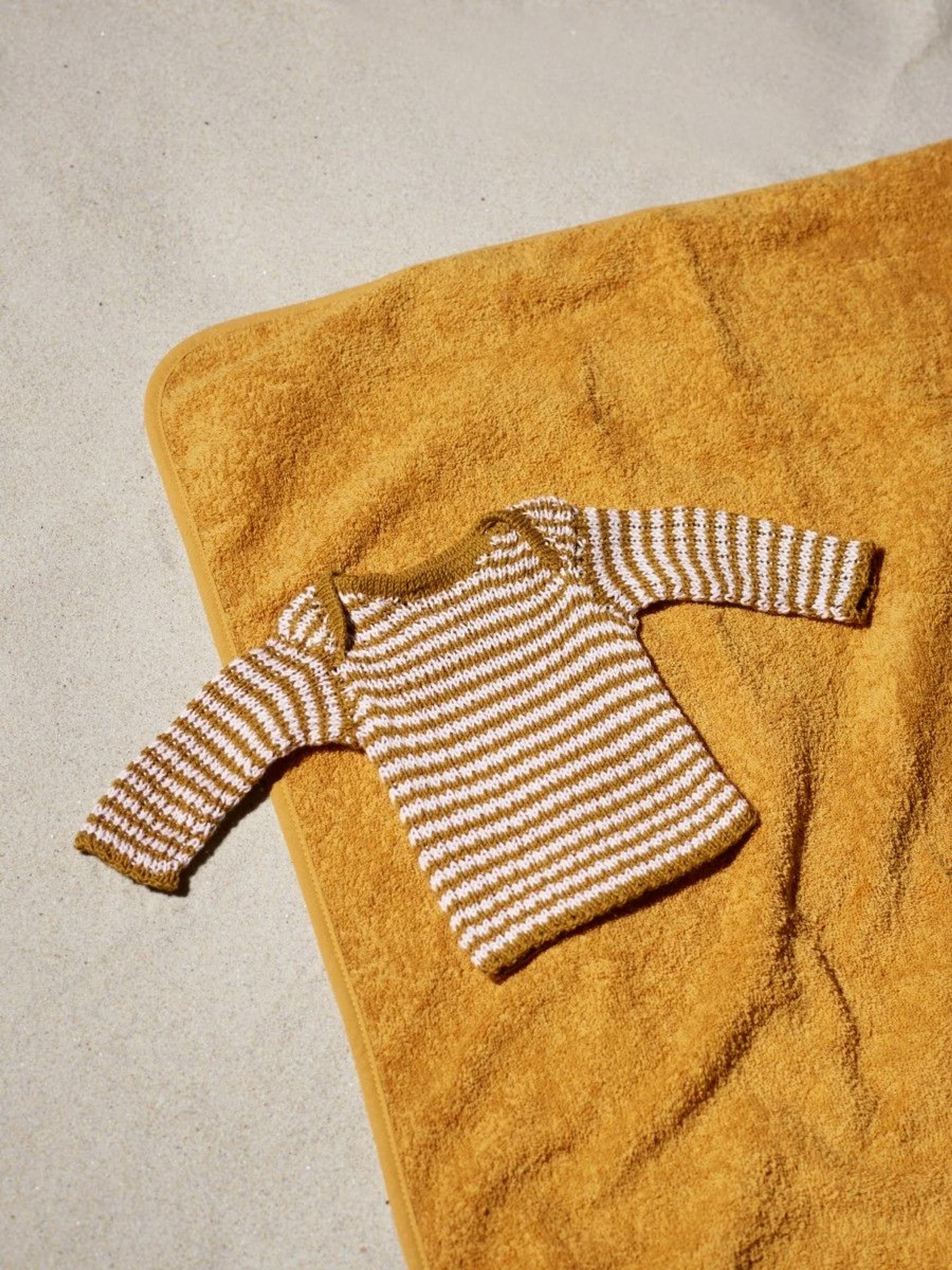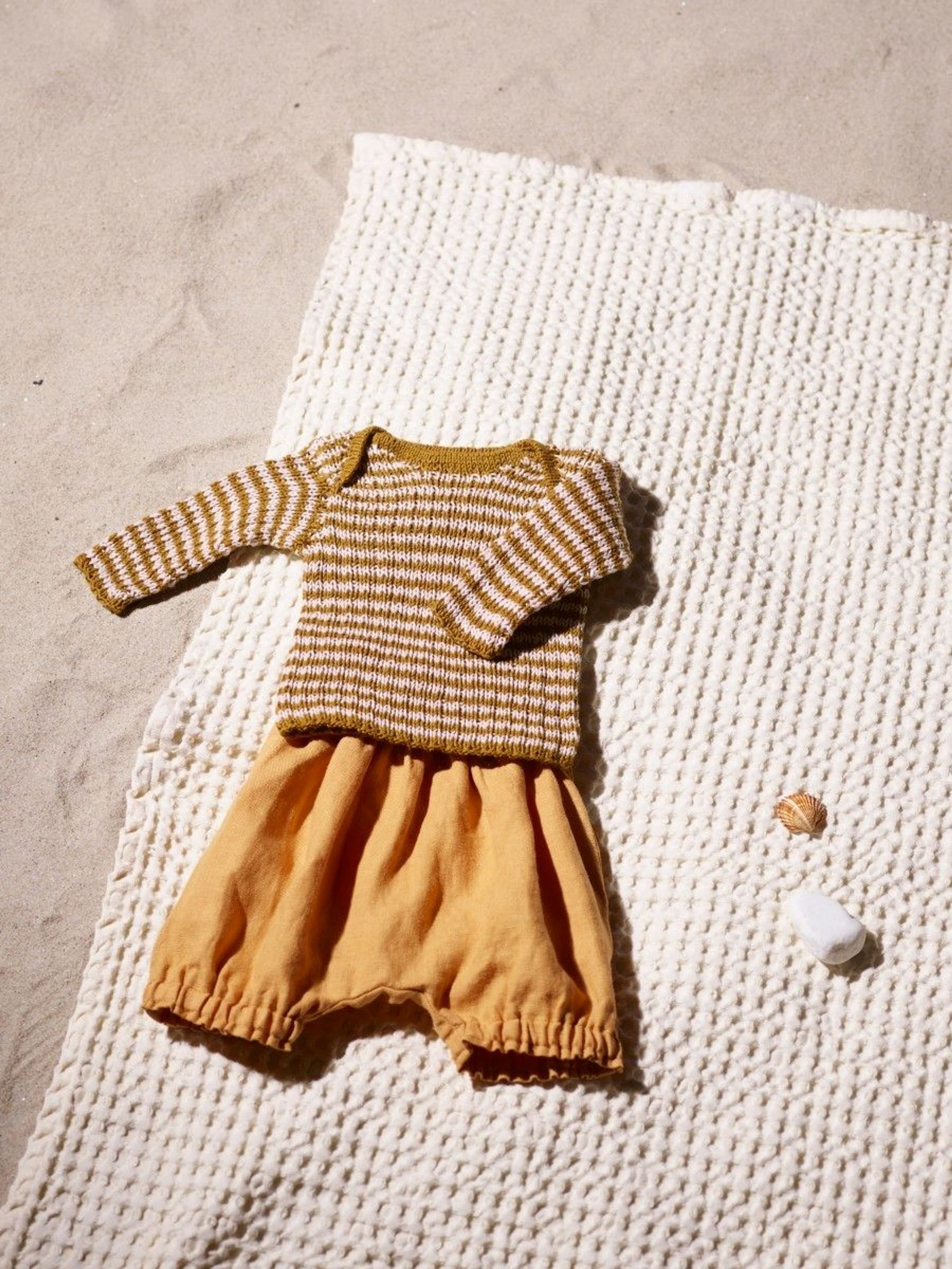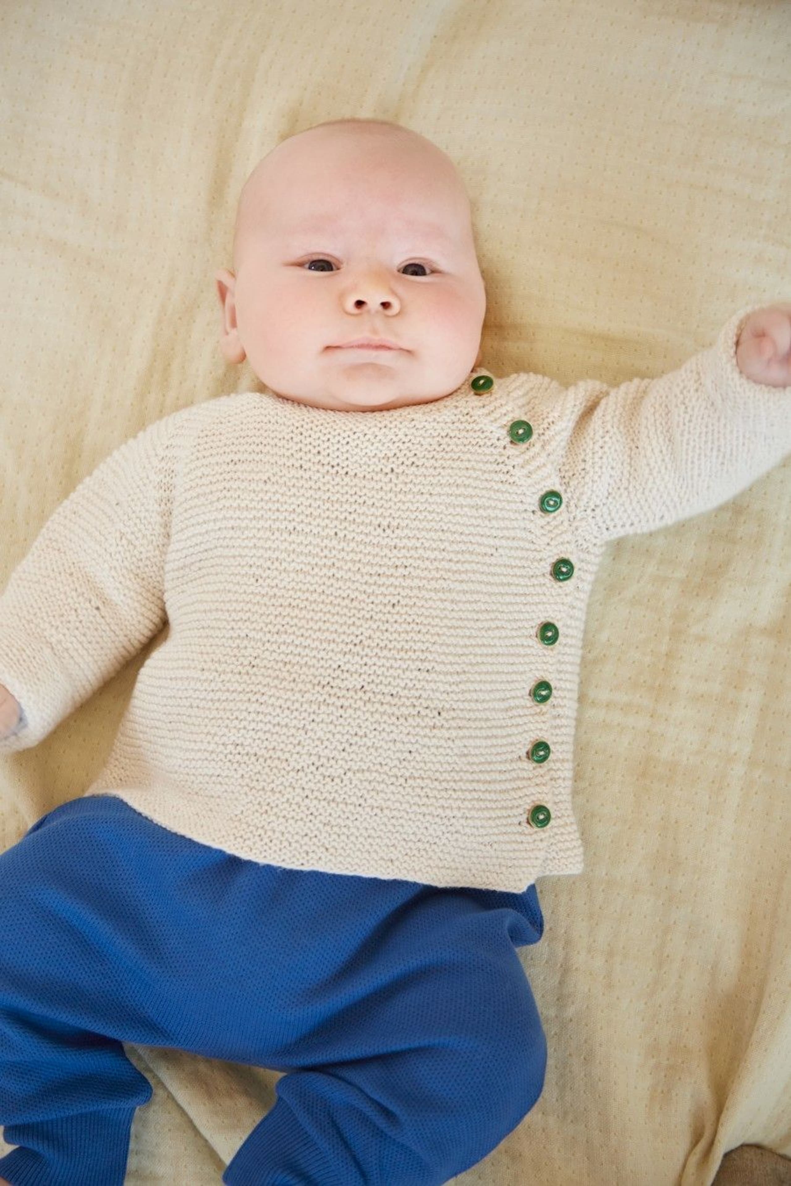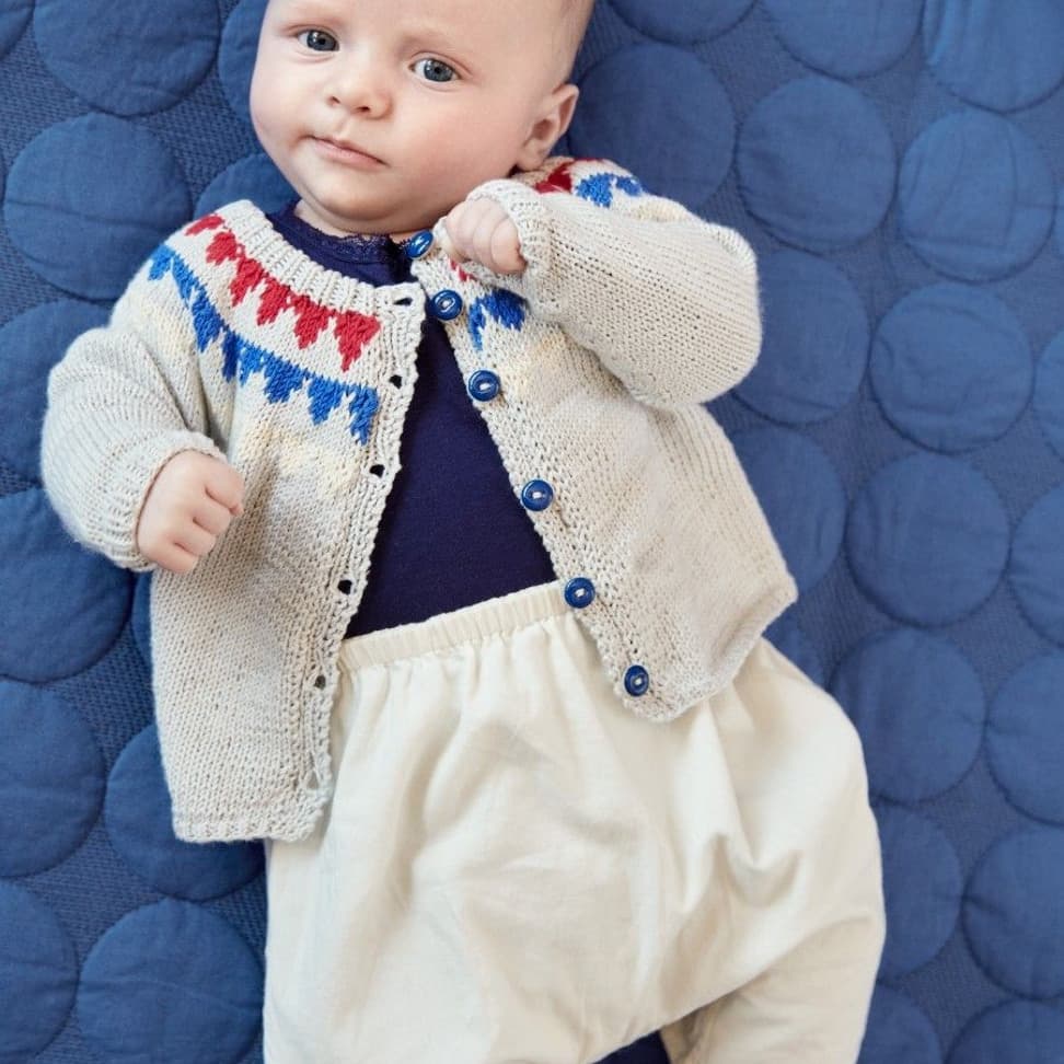 Garnkombinasjoner og forslag til strikkefasthet (p): Husk å strikke prøvelapp. Pandora x 2: 21 m = 10 cm (3,5) Garnalternativer: Lamull Inca Babygarn