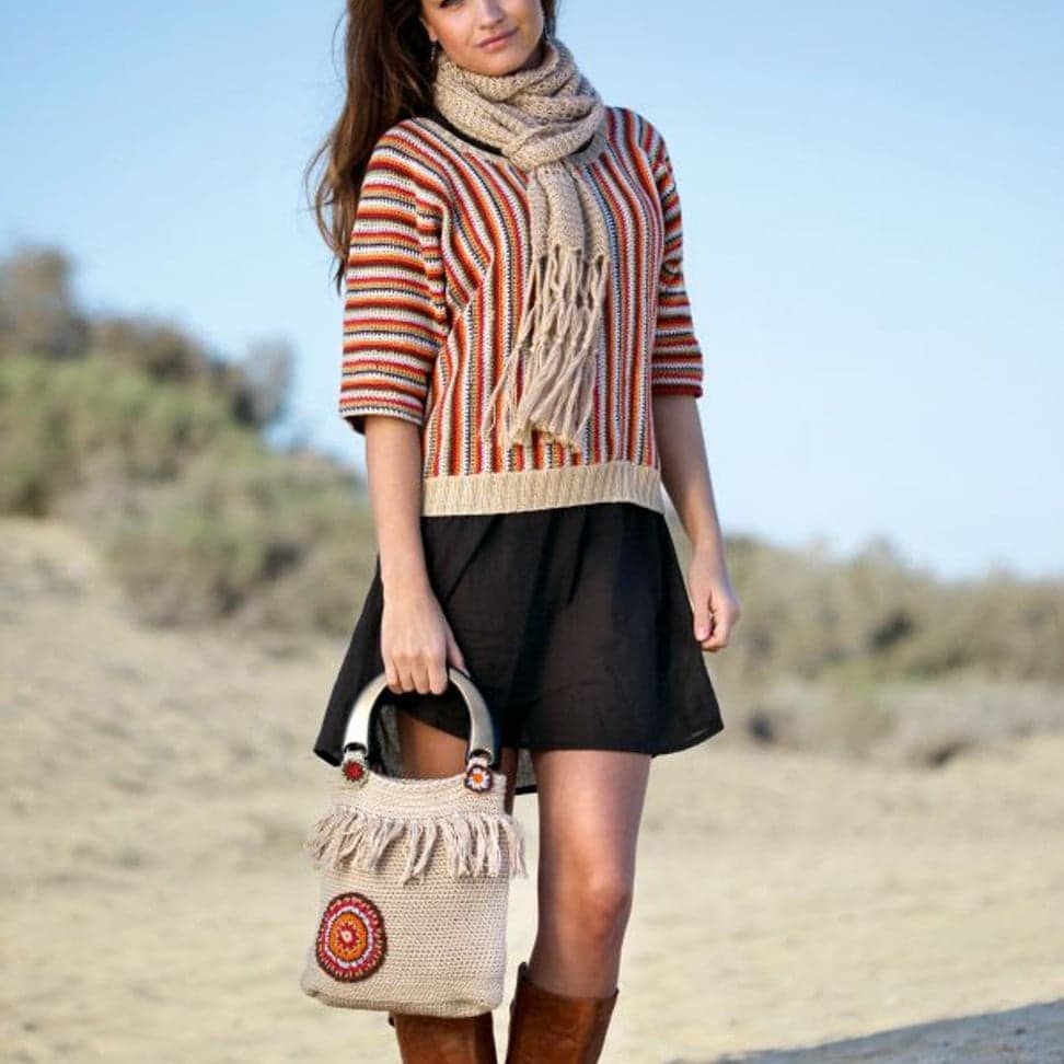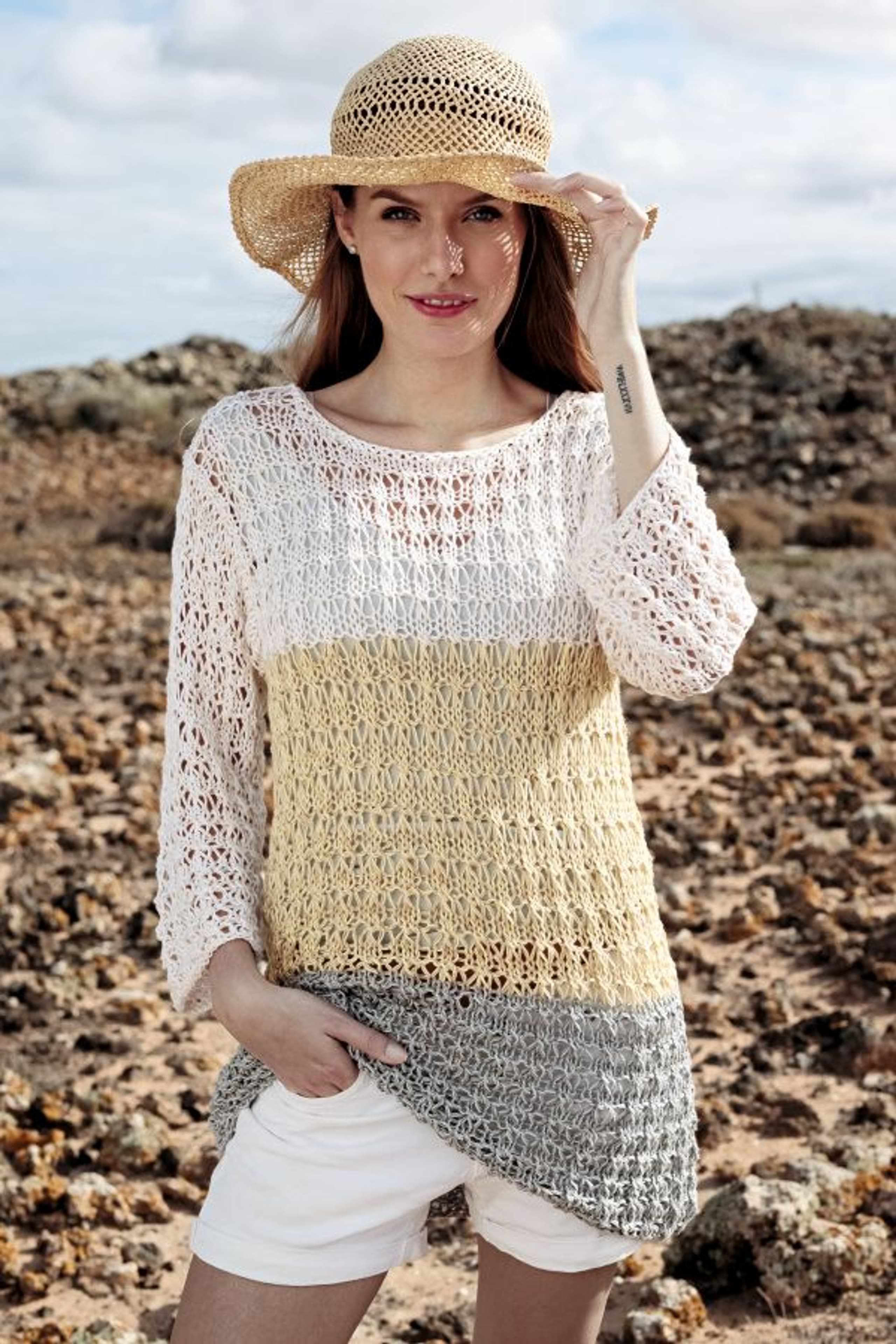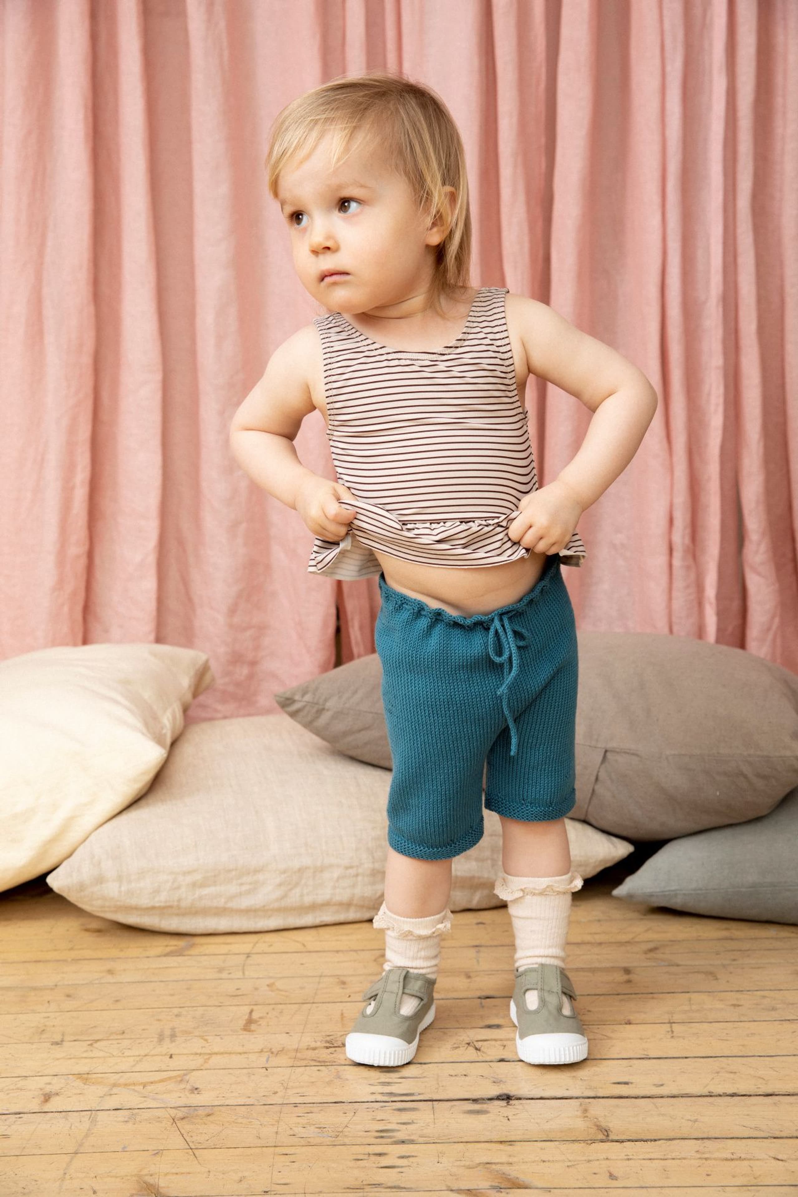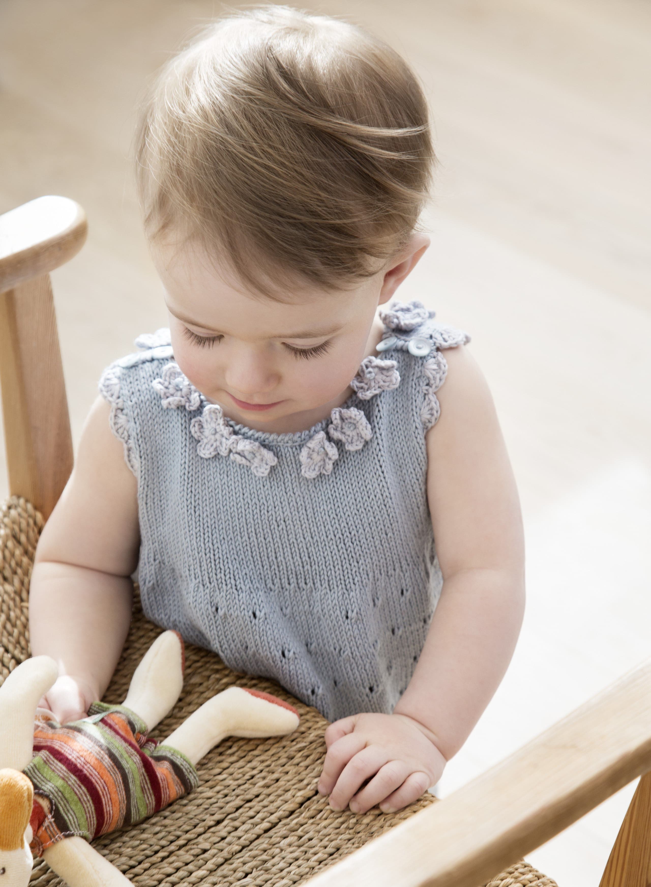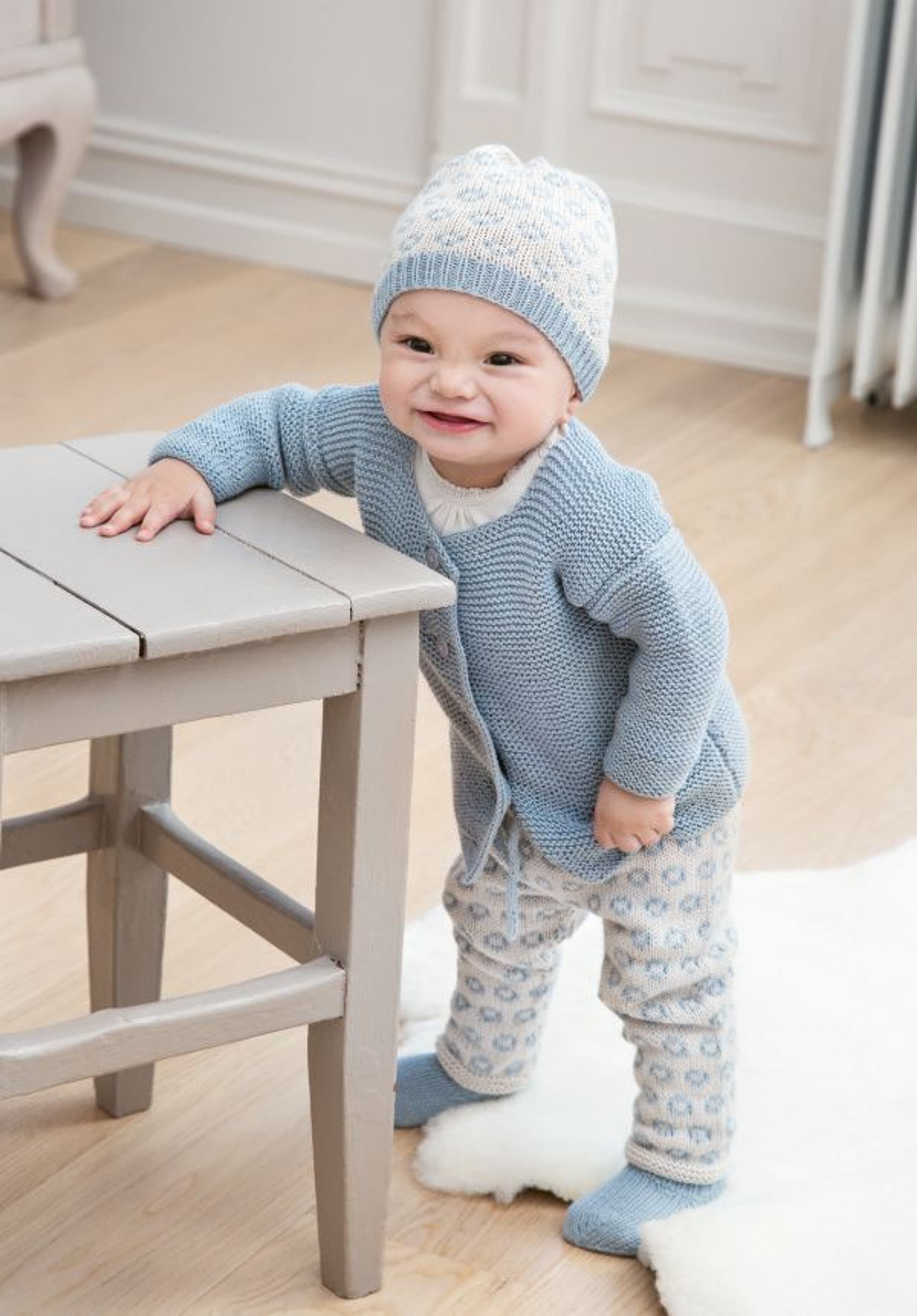 Garnkombinasjoner og forslag til strikkefasthet (p): Husk å strikke prøvelapp. Pandora x 2: 21 m = 10 cm (3,5) Garnalternativer: Lamull Inca Babygarn