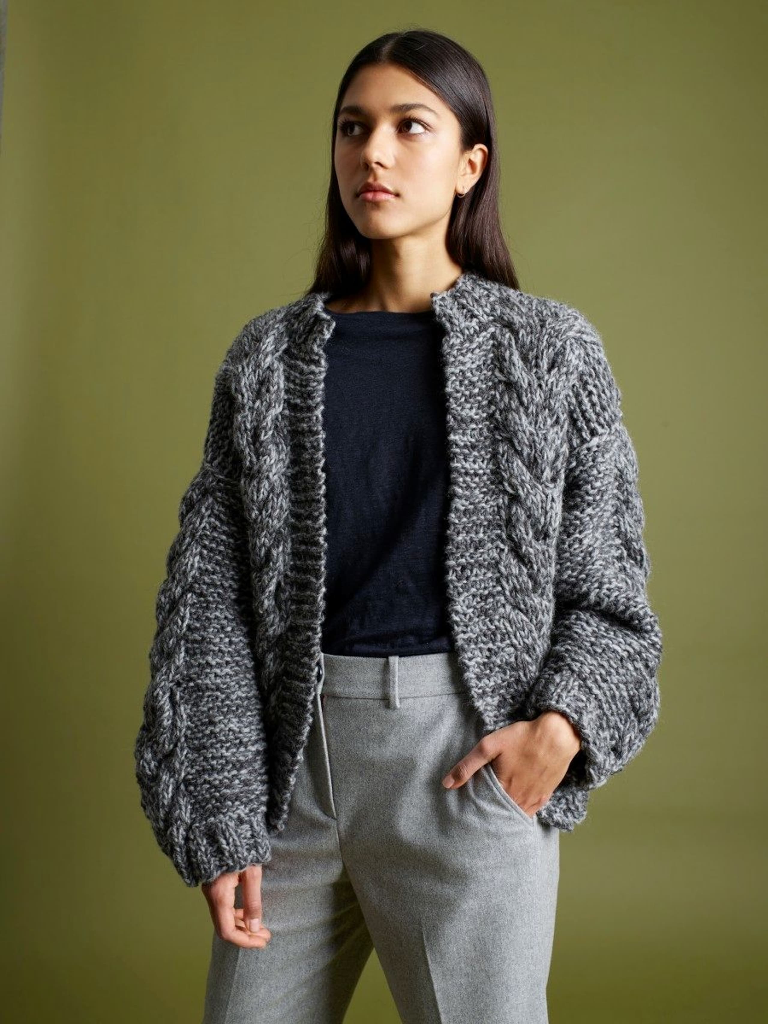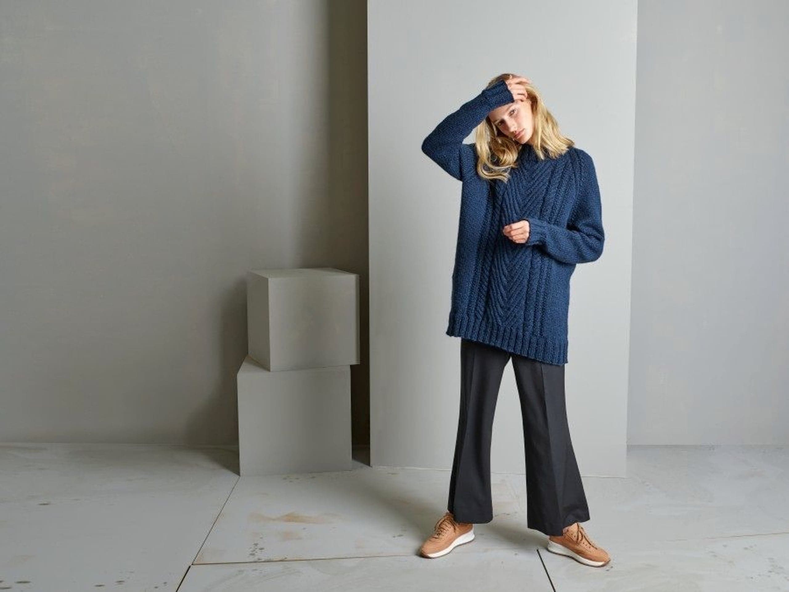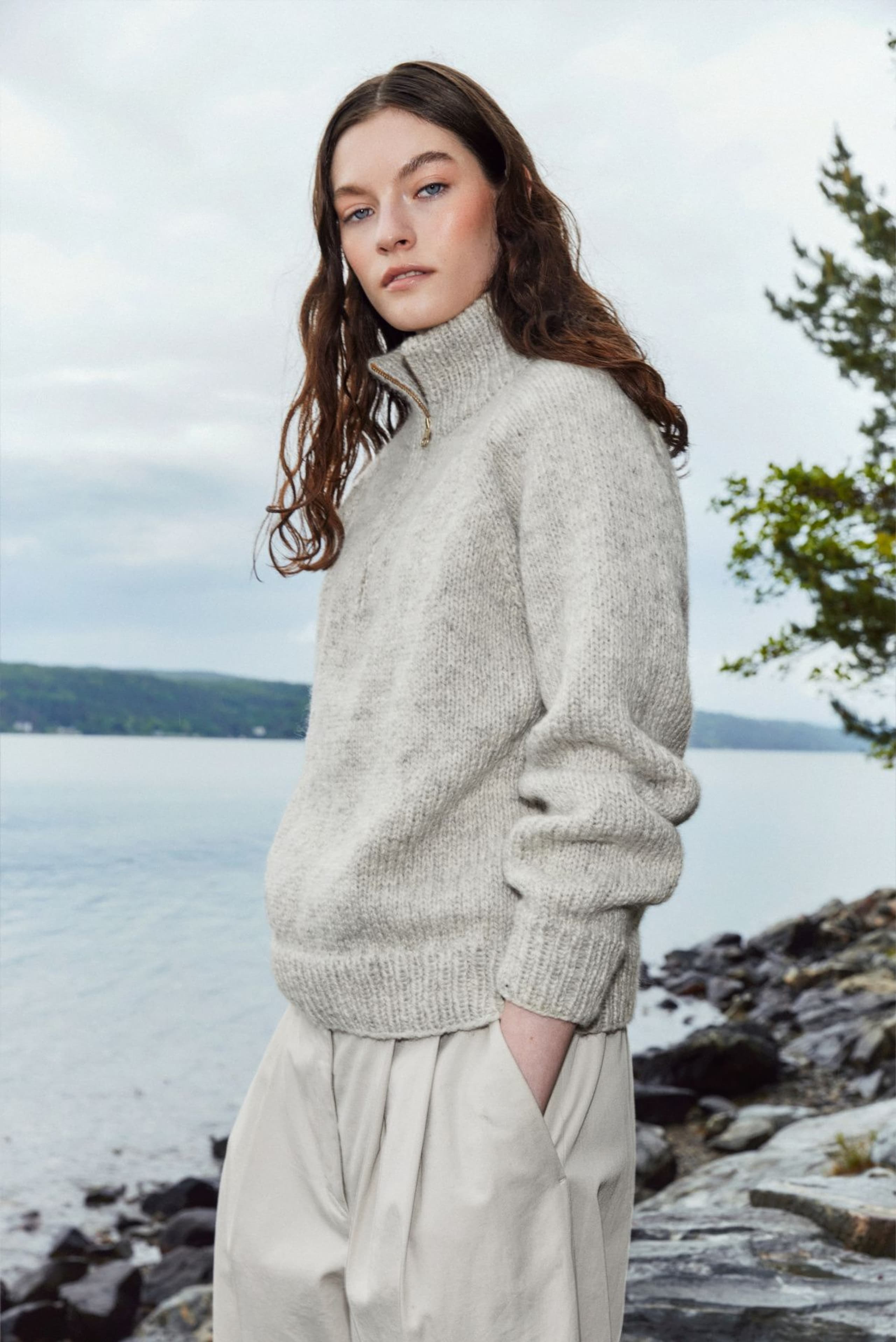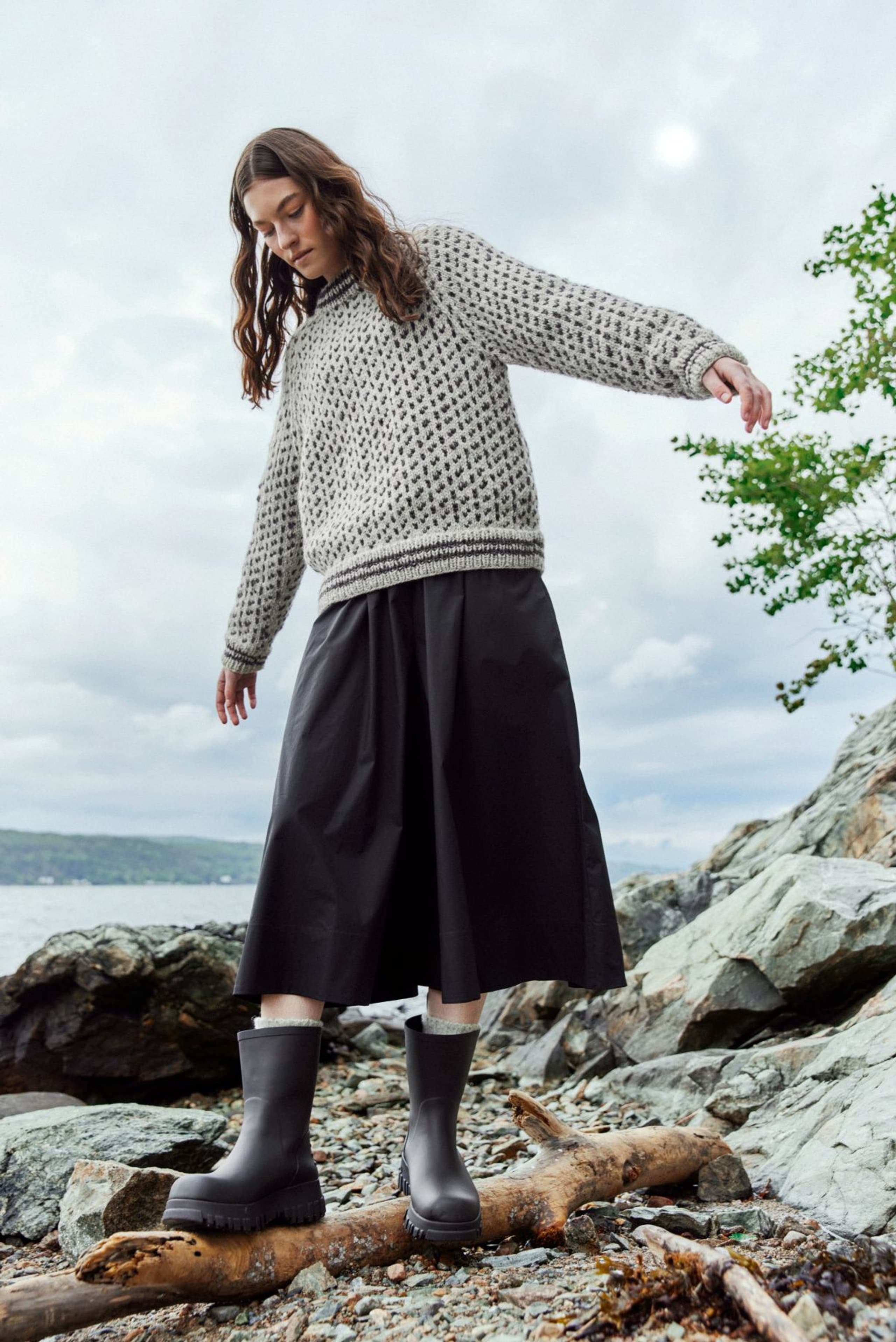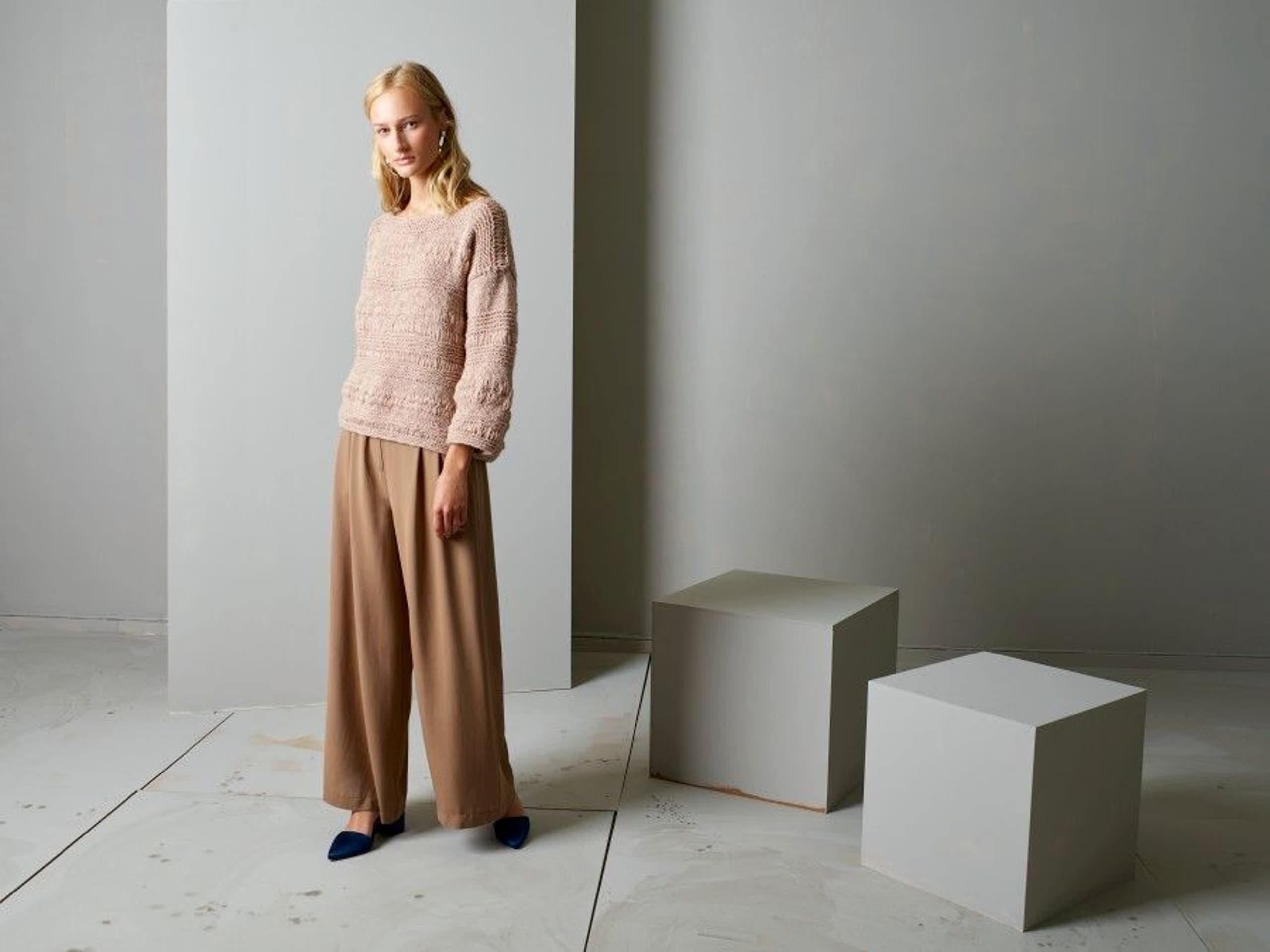 Garnkombinasjoner og forslag til strikkefasthet (p): Husk å strikke prøvelapp. Vams + Plum: 12 m = 10 cm (7) Vams + Alpaca Silk: 12 m = 10 cm (7) Garnalternativer: Puno Finull og Alpakka Lin Alpakka Lin x2