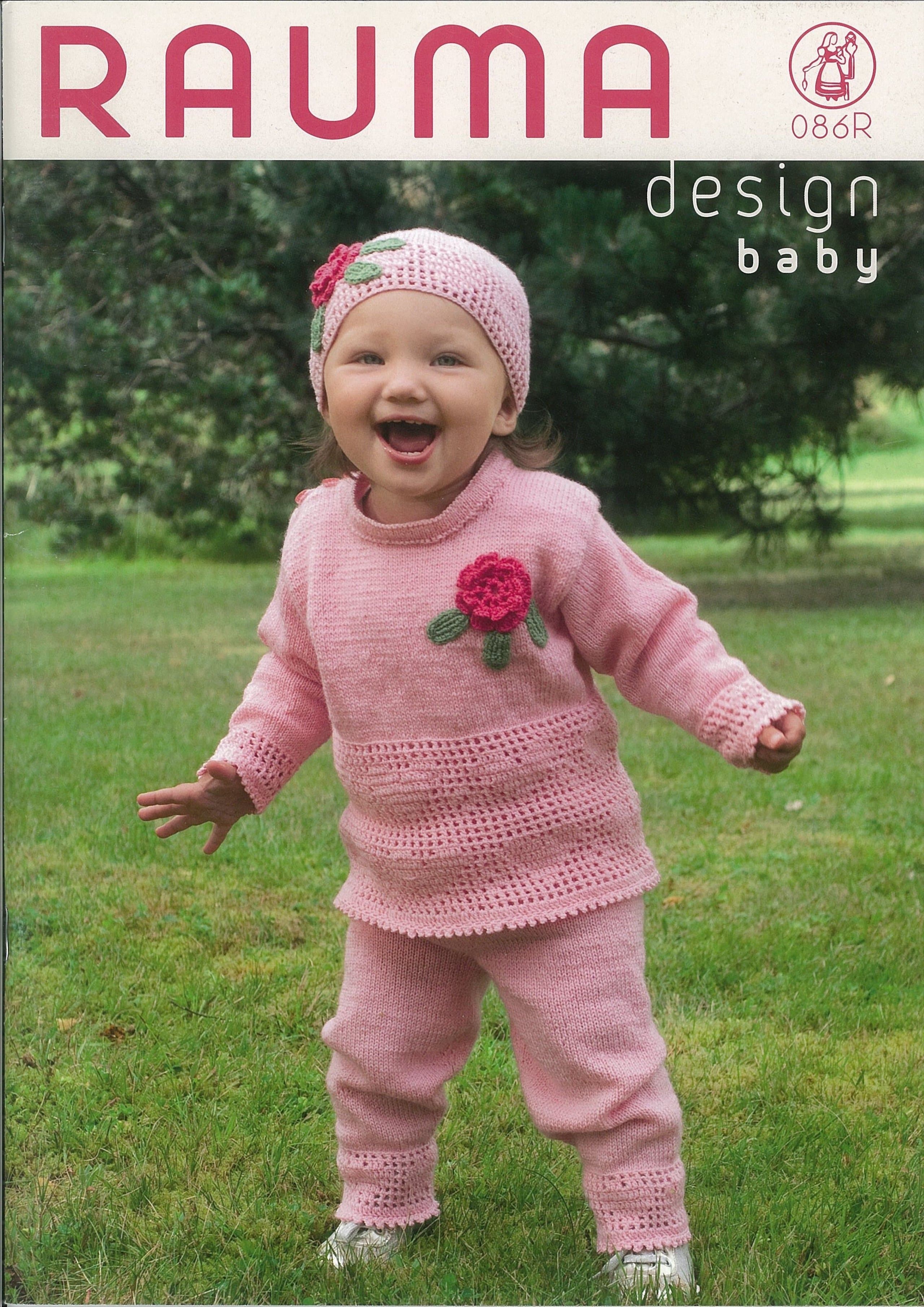 Lekker dåpskjole og andre plagg strikket i Baby Panda, Plum og Pillpi.