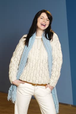 Genser med hull-og flettemønster og skjerf