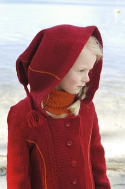 Jakke med hette og broderi, lue. hals og votter