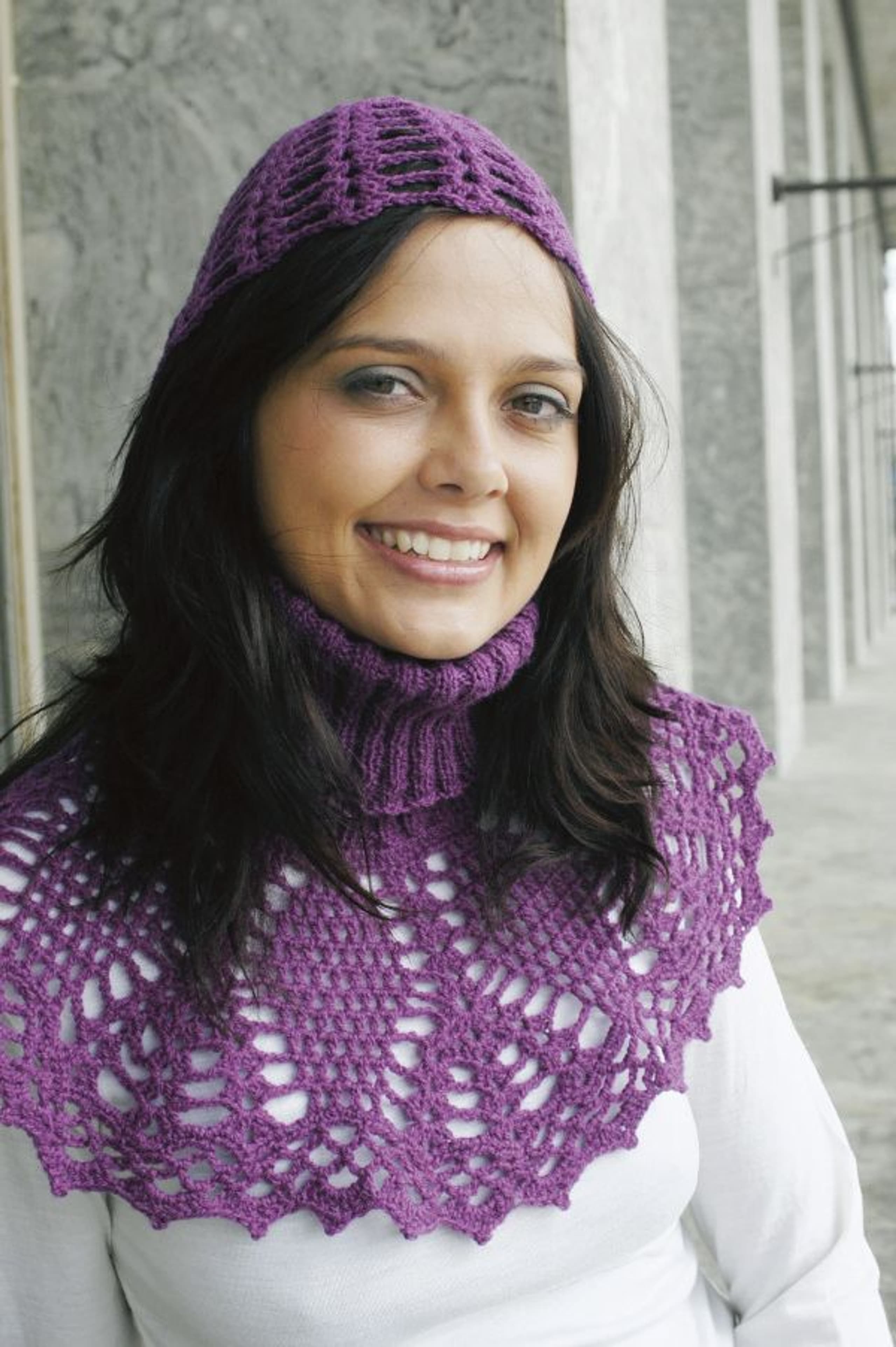 Heklet krage, hals, lue, skjerf, pulsvarmere og veske
