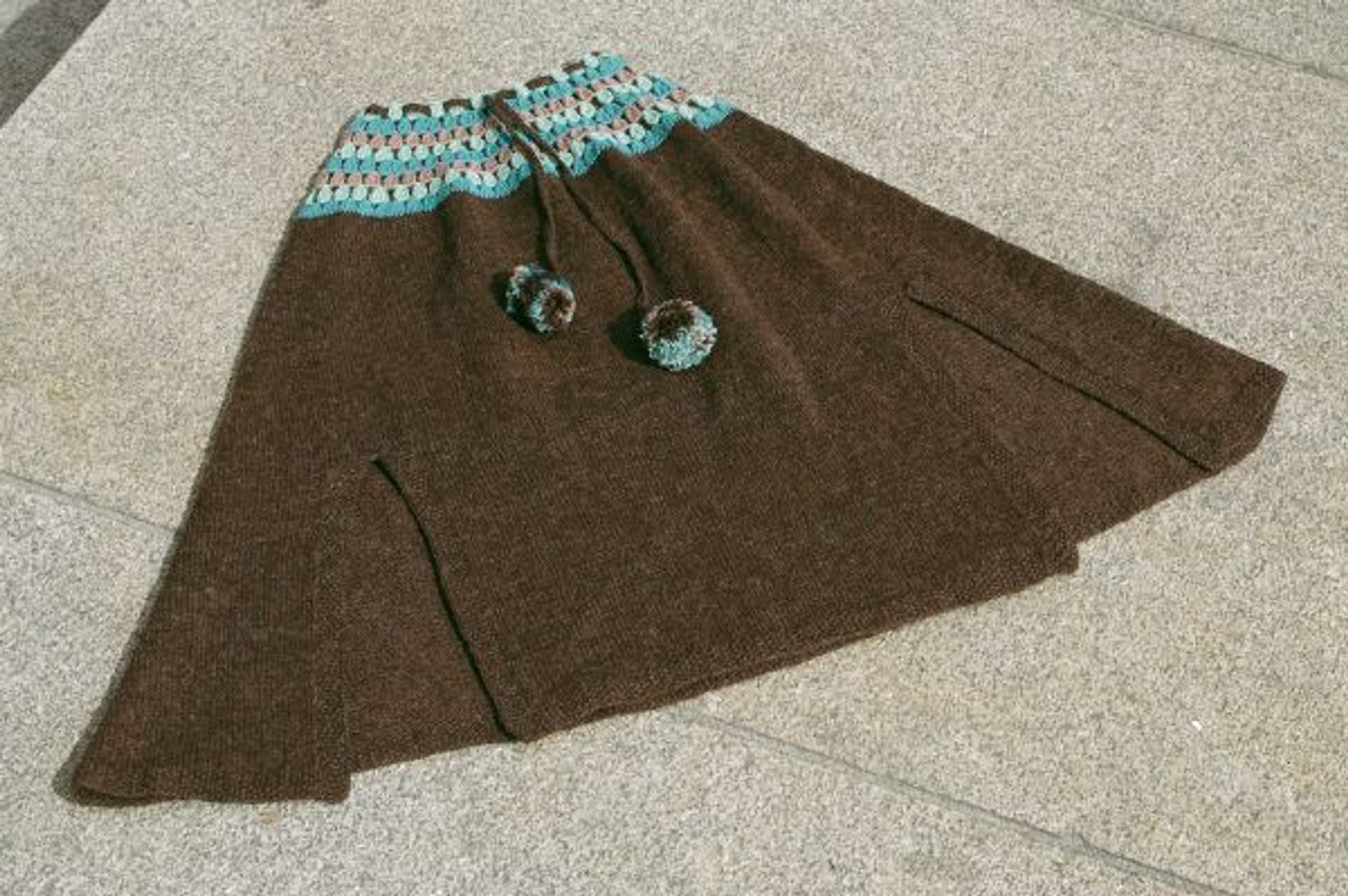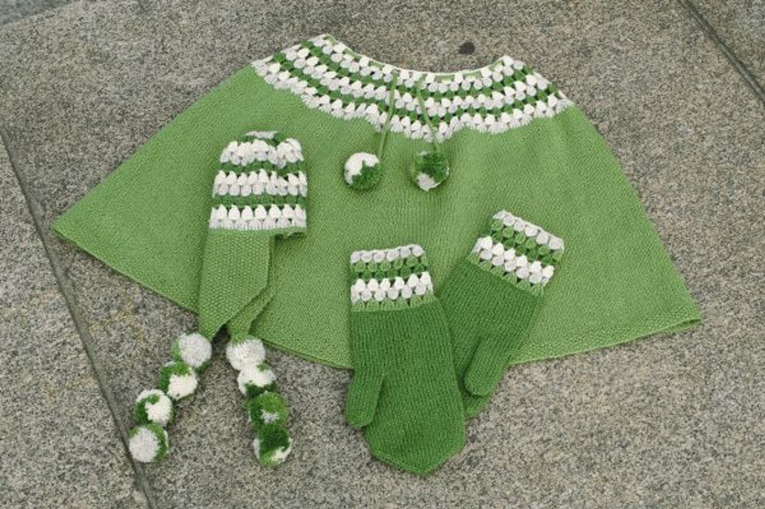 Halvlang cape, kort cape med eller uten splitt, lue og votter