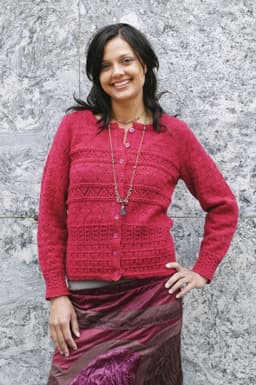 Jakke med rysjer, skjerf, lue med og uten rysjekant