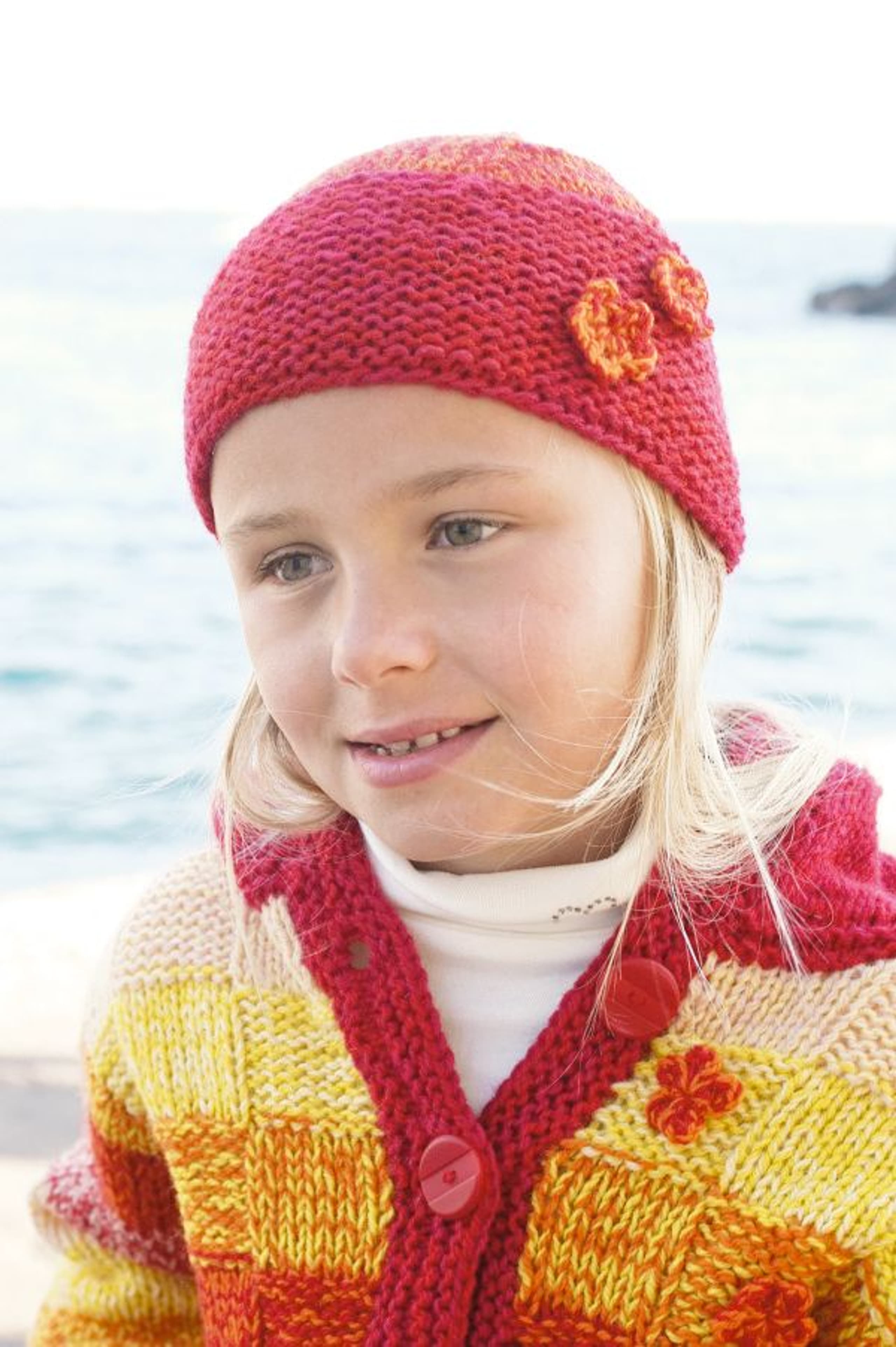 Genser, lue og leggvarmere med hullmønster