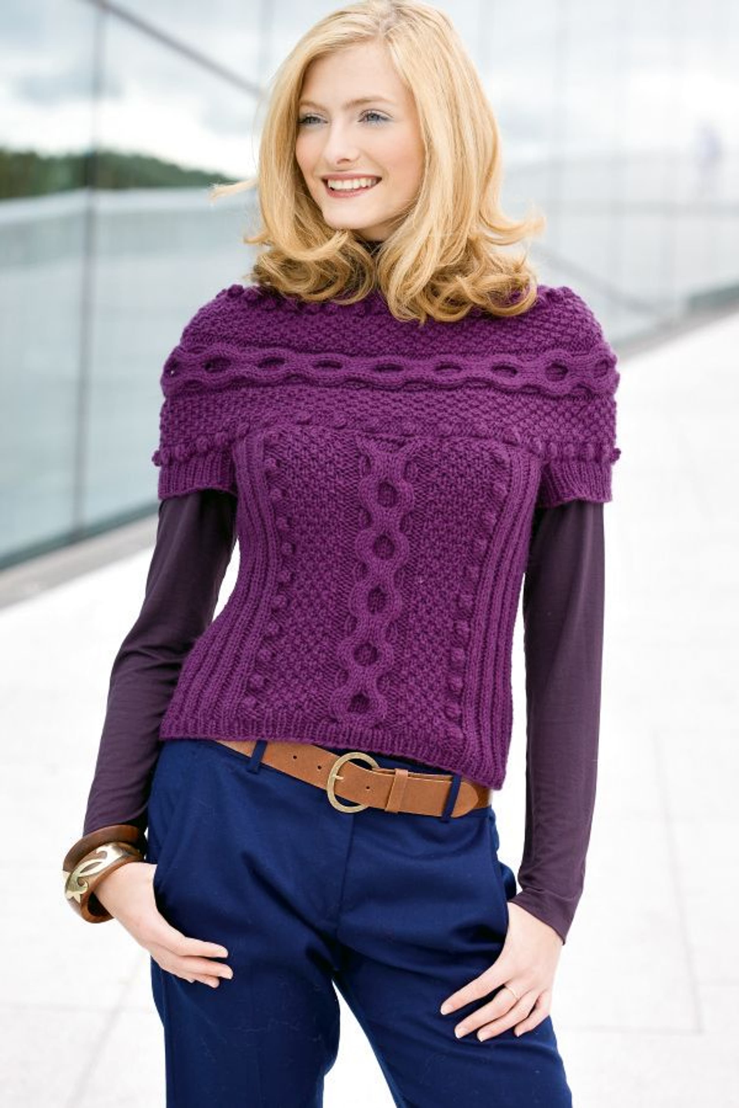 Genser med flette- og hullmønster