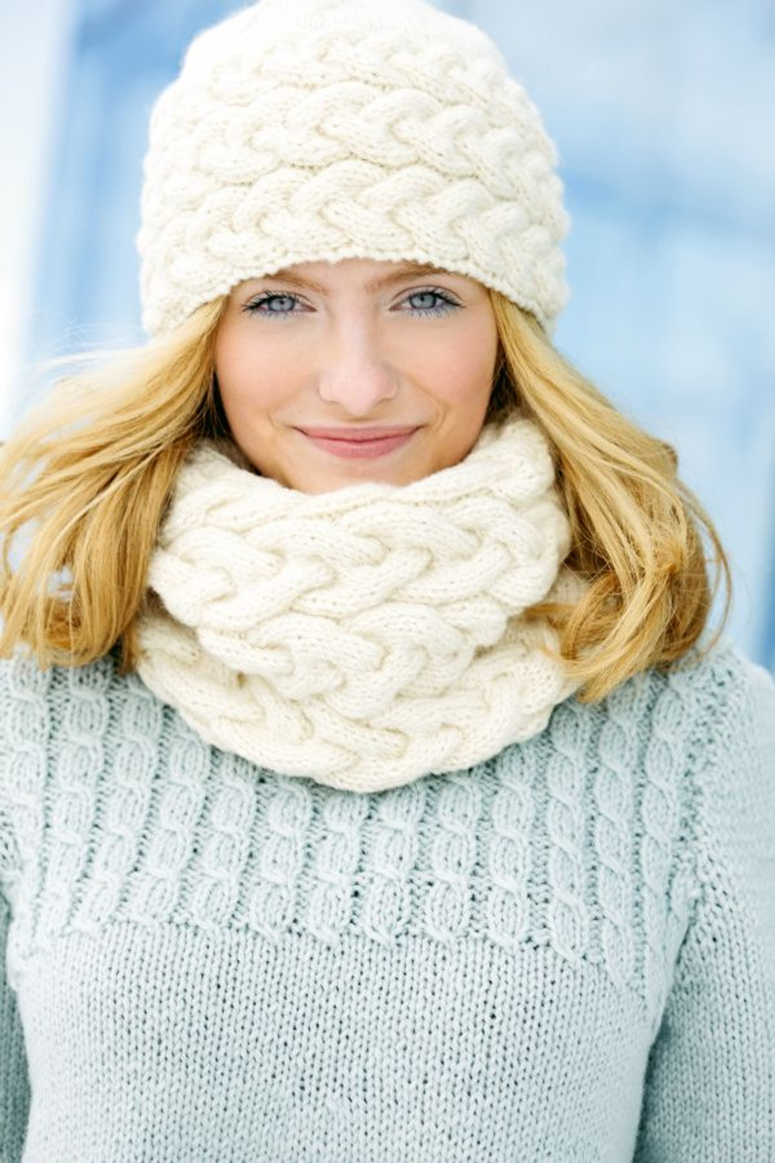 Genserkjole, løs hals, lue og hansker