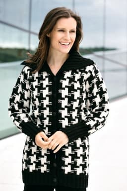 Jakke og genser med knutemønster og stripet hals