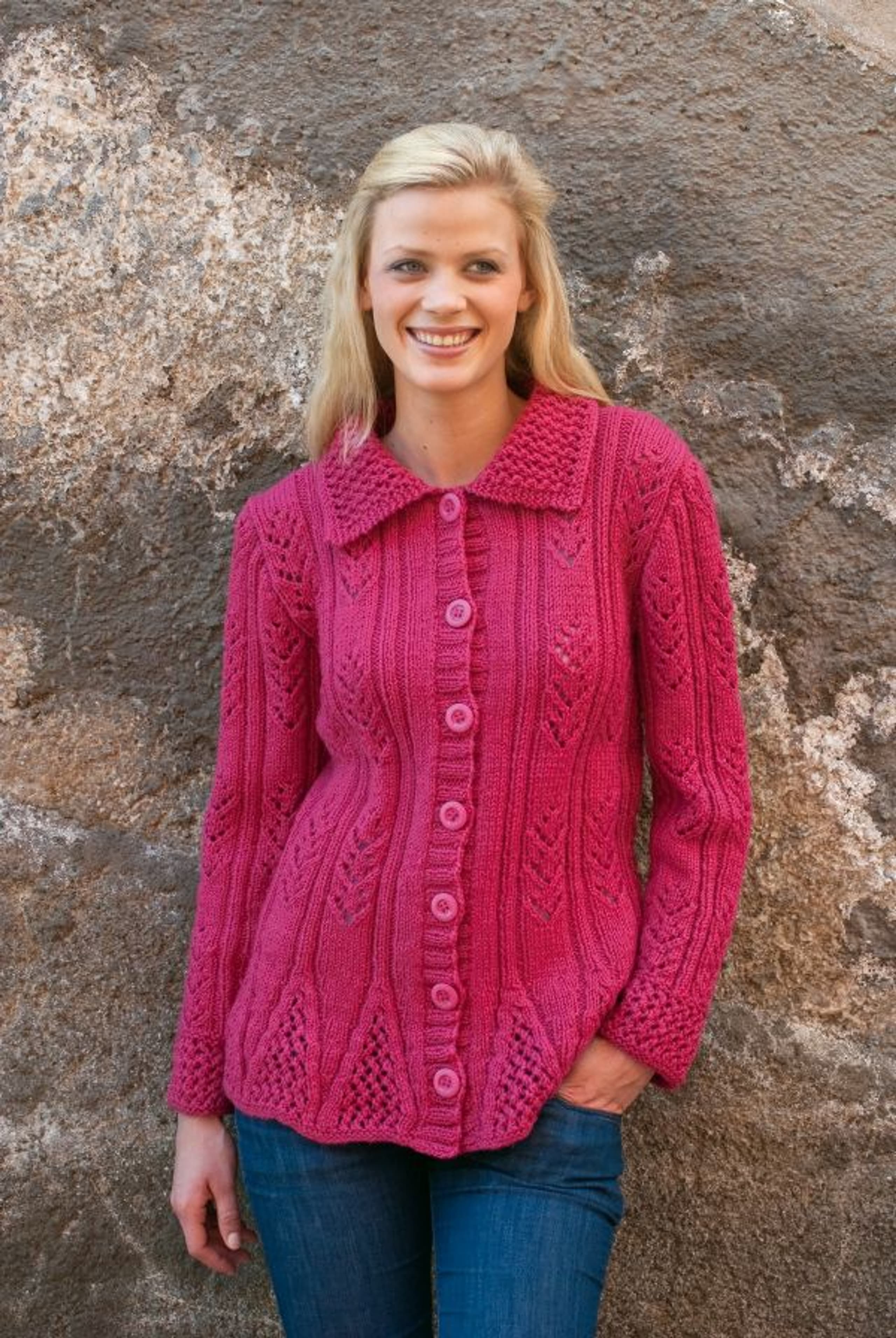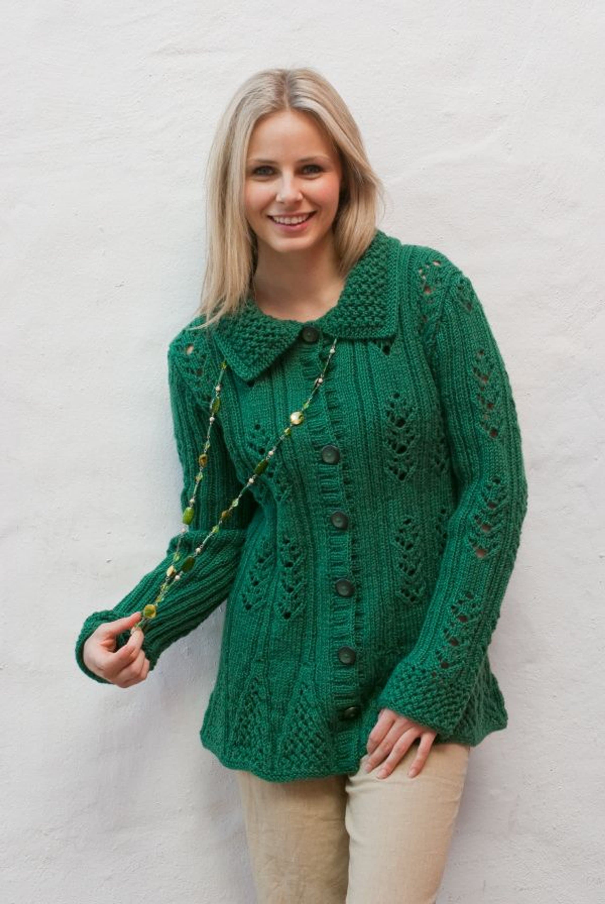 Jakke med flettemønster og strukturstrikk