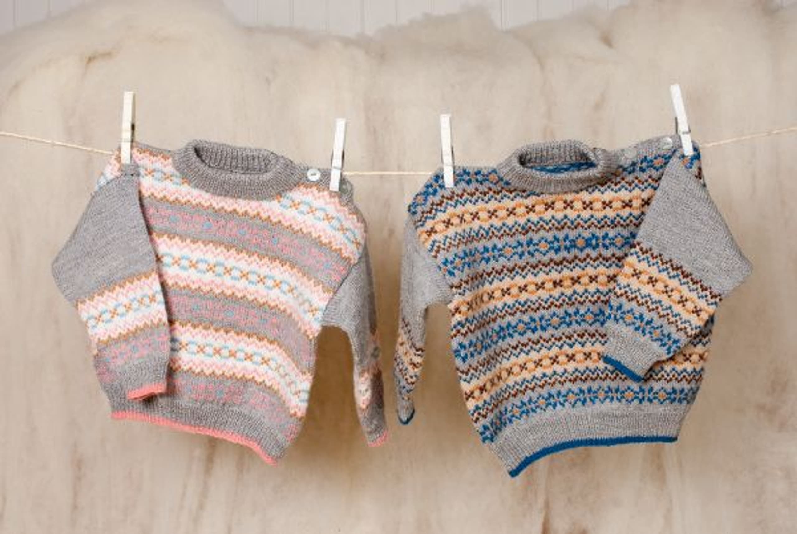 Genser og lue, jakke, bukse og kjole