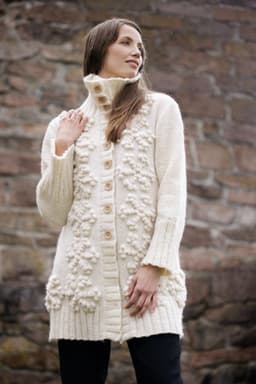 Skuldervarmer med høy hals eller "hette" og lange pulsvarmere