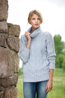 Genser med strukturmønster, med høy hals eller hette