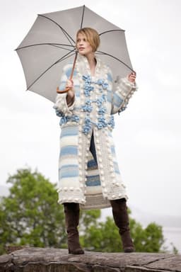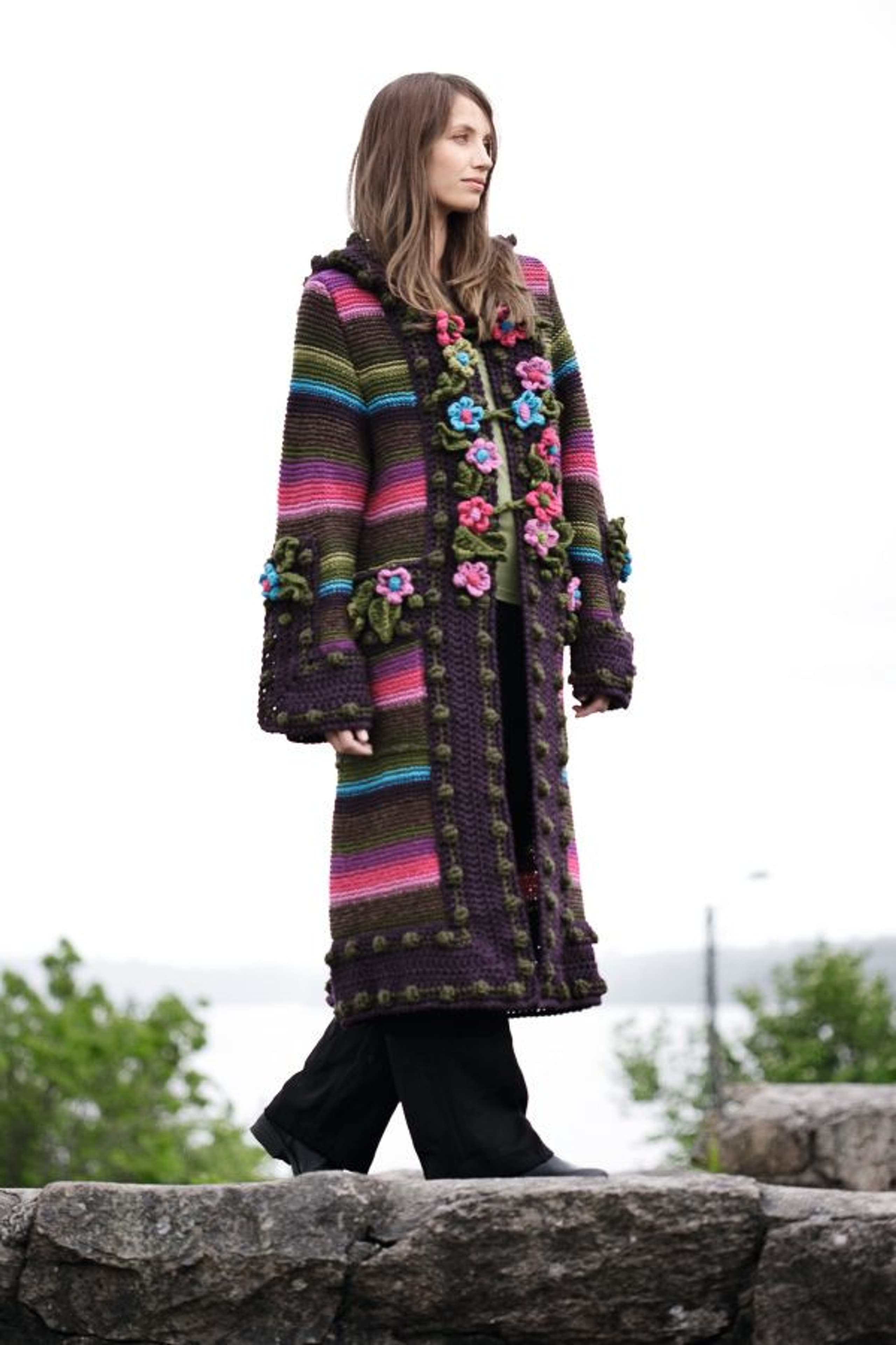 Skuldervarmer med høy hals eller "hette" og lange pulsvarmere