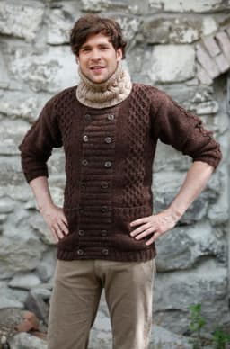Skuldervarmer med høy hals eller "hette" og lange pulsvarmere