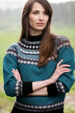 Skuldervarmer med høy hals eller "hette" og lange pulsvarmere