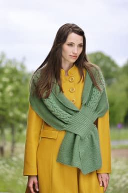 Skuldervarmer med høy hals eller "hette" og lange pulsvarmere