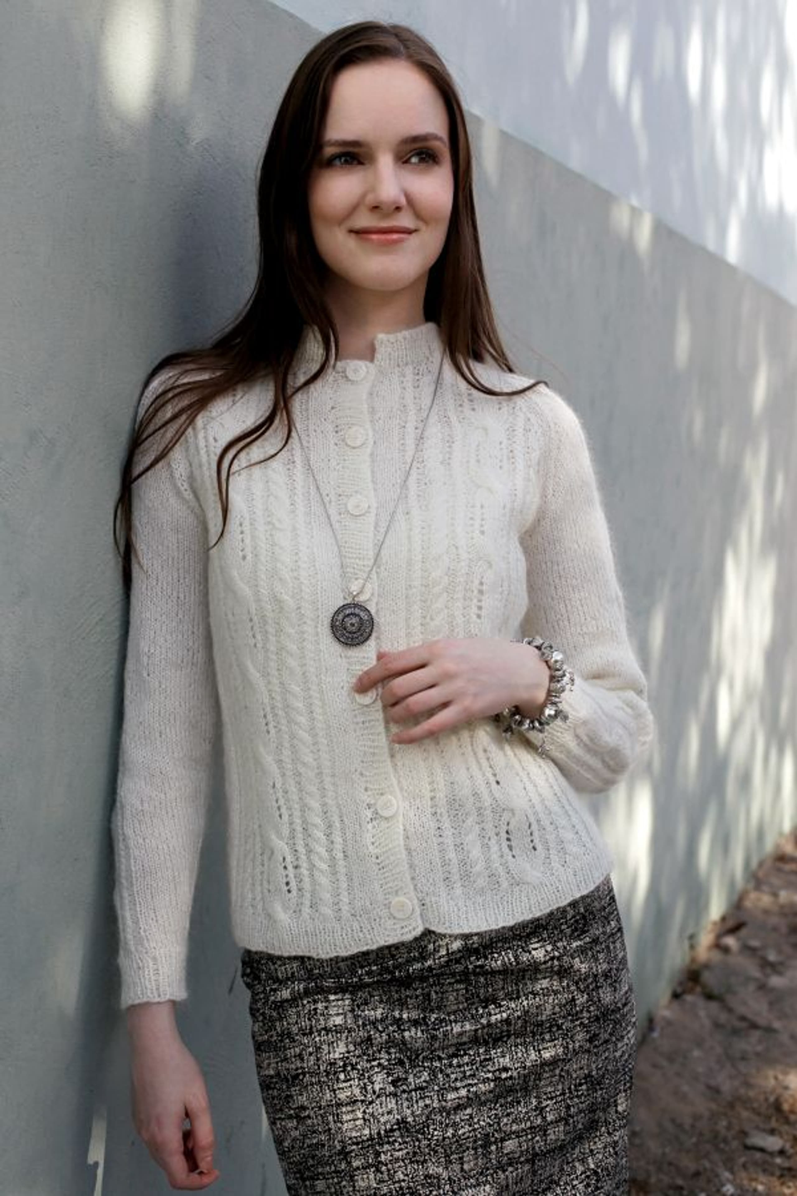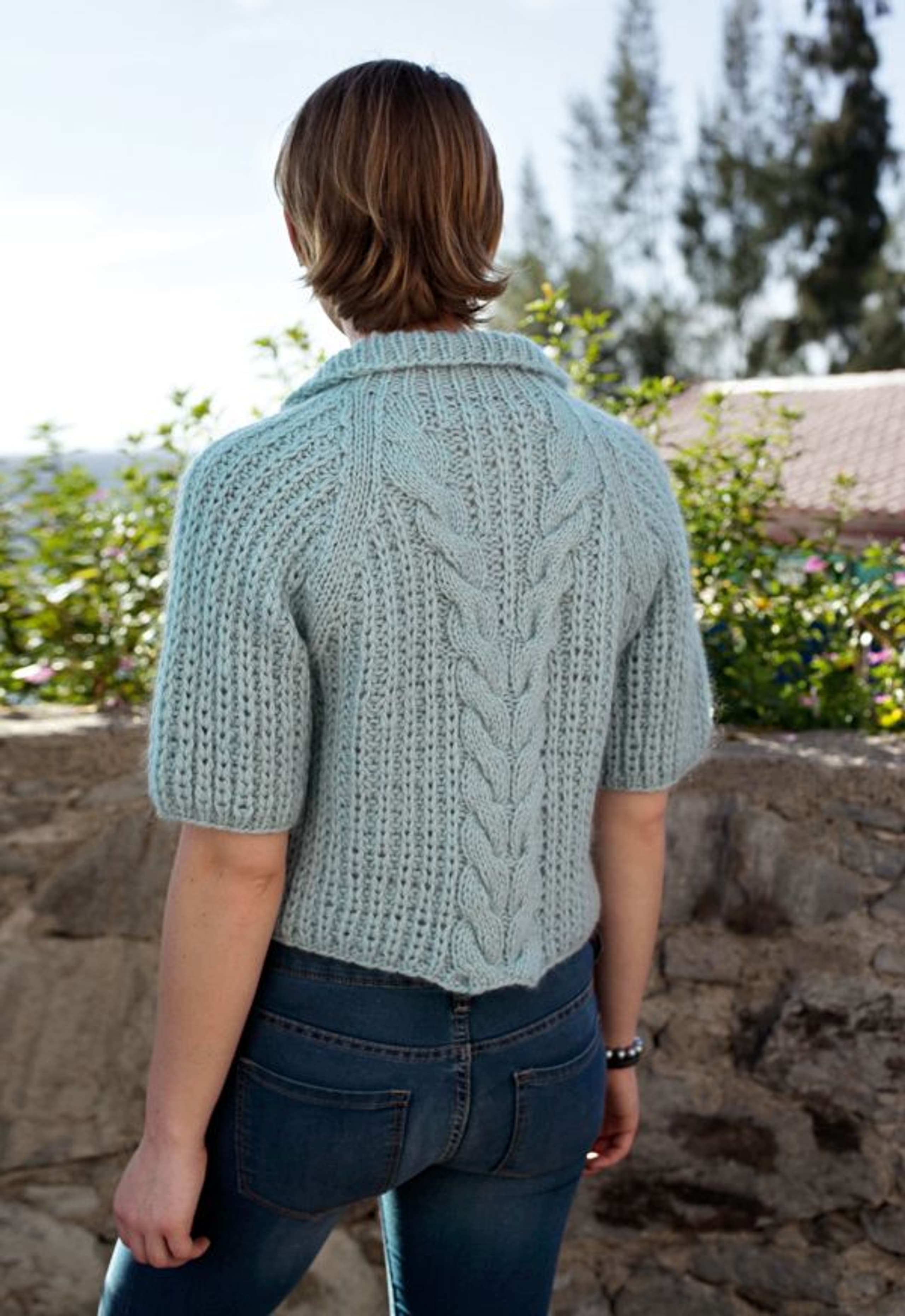 Vest med flette og raglan