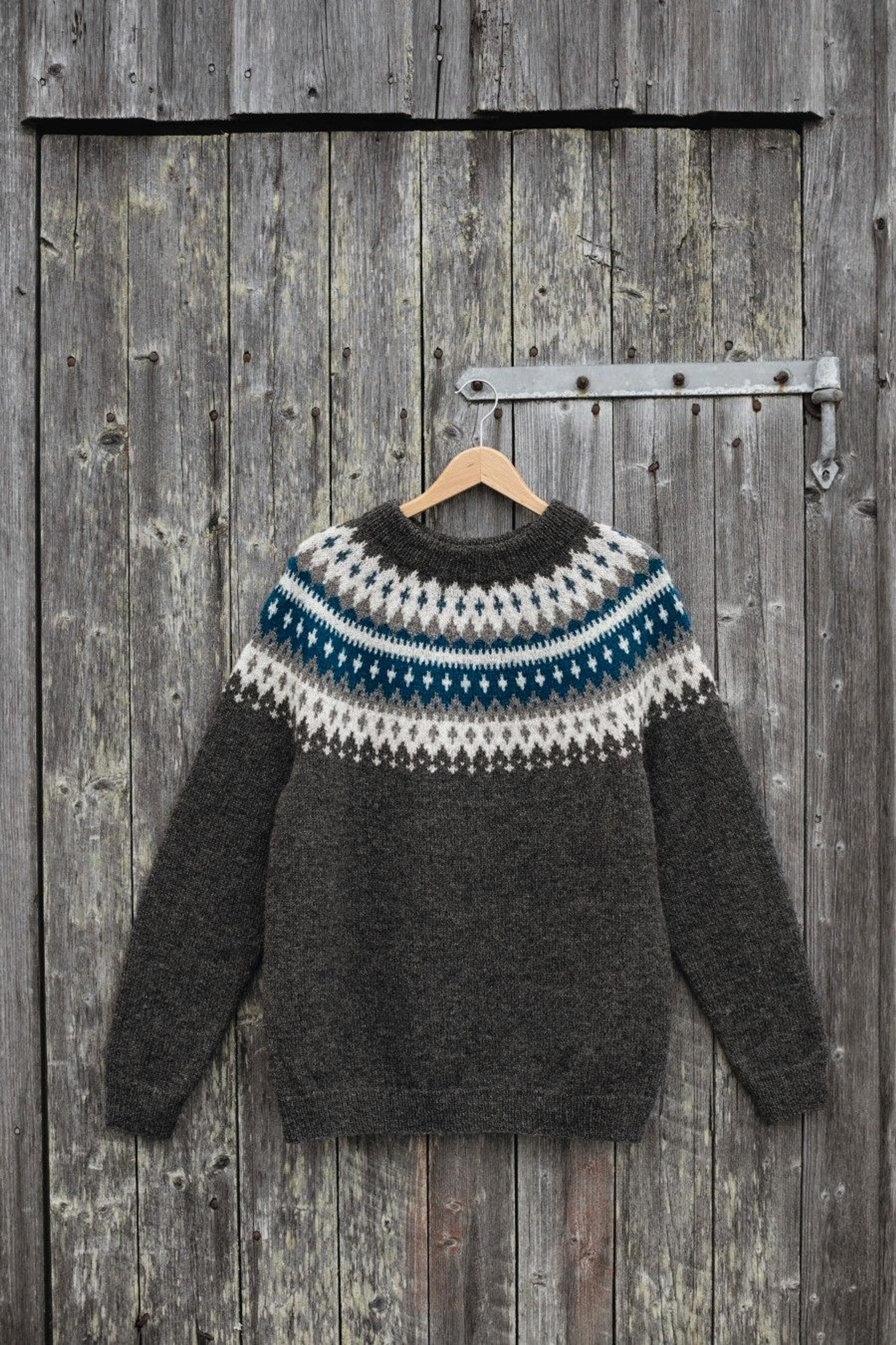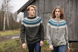 Genser strikket i finull. Litt romslig i størrelsene.