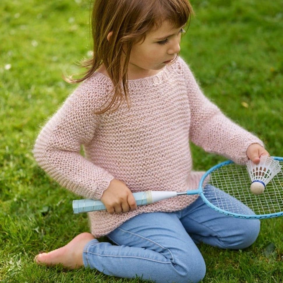 Genser i riller strikket i Petunia og Plum