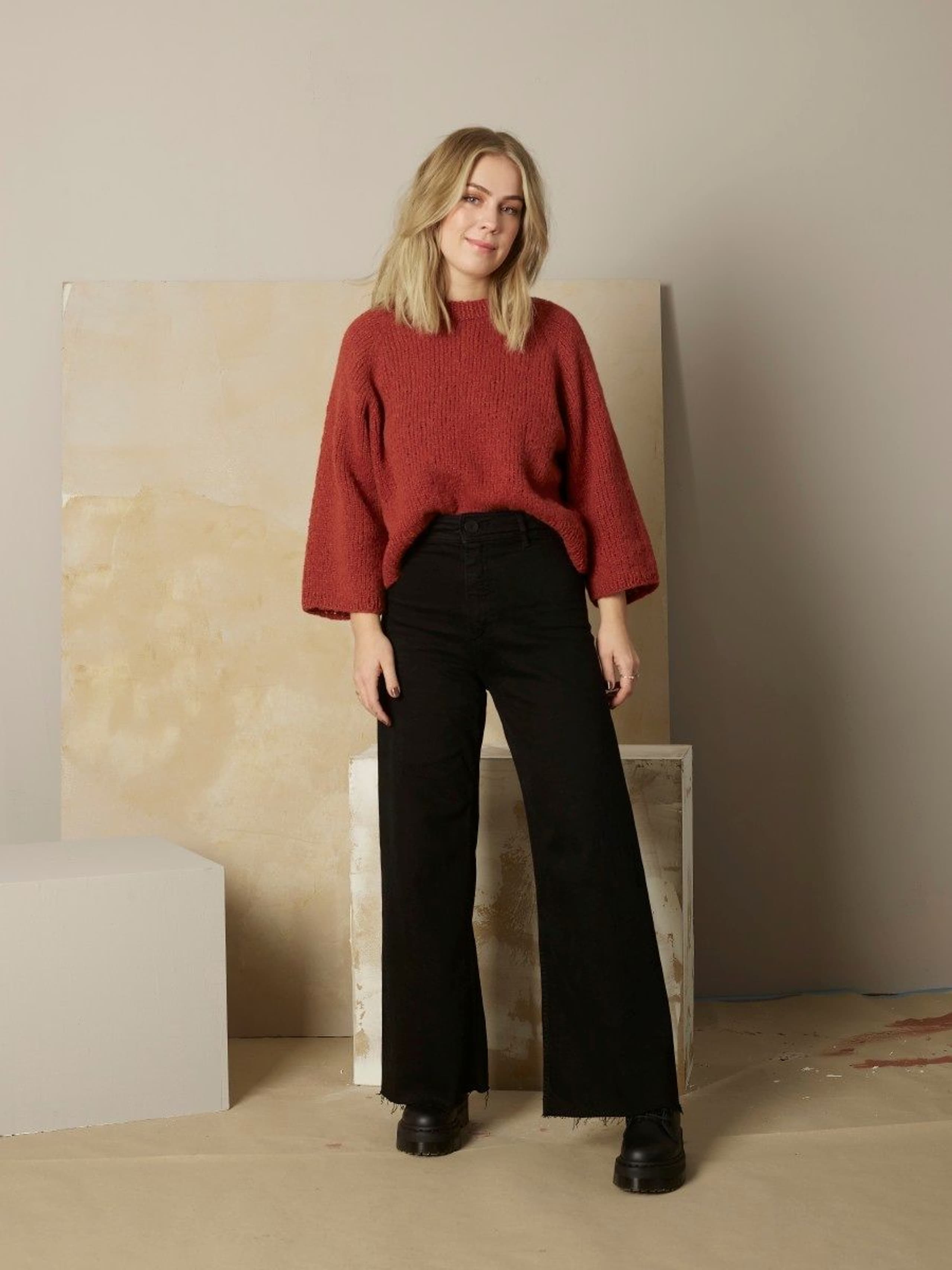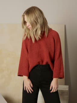 Genseren strikkes ovenfra og ned. Den har vide ermer og er en kort modell. Prøv den underveis og juster lengden etter eget ønske. Originalfargen var limited edition og er utgått.