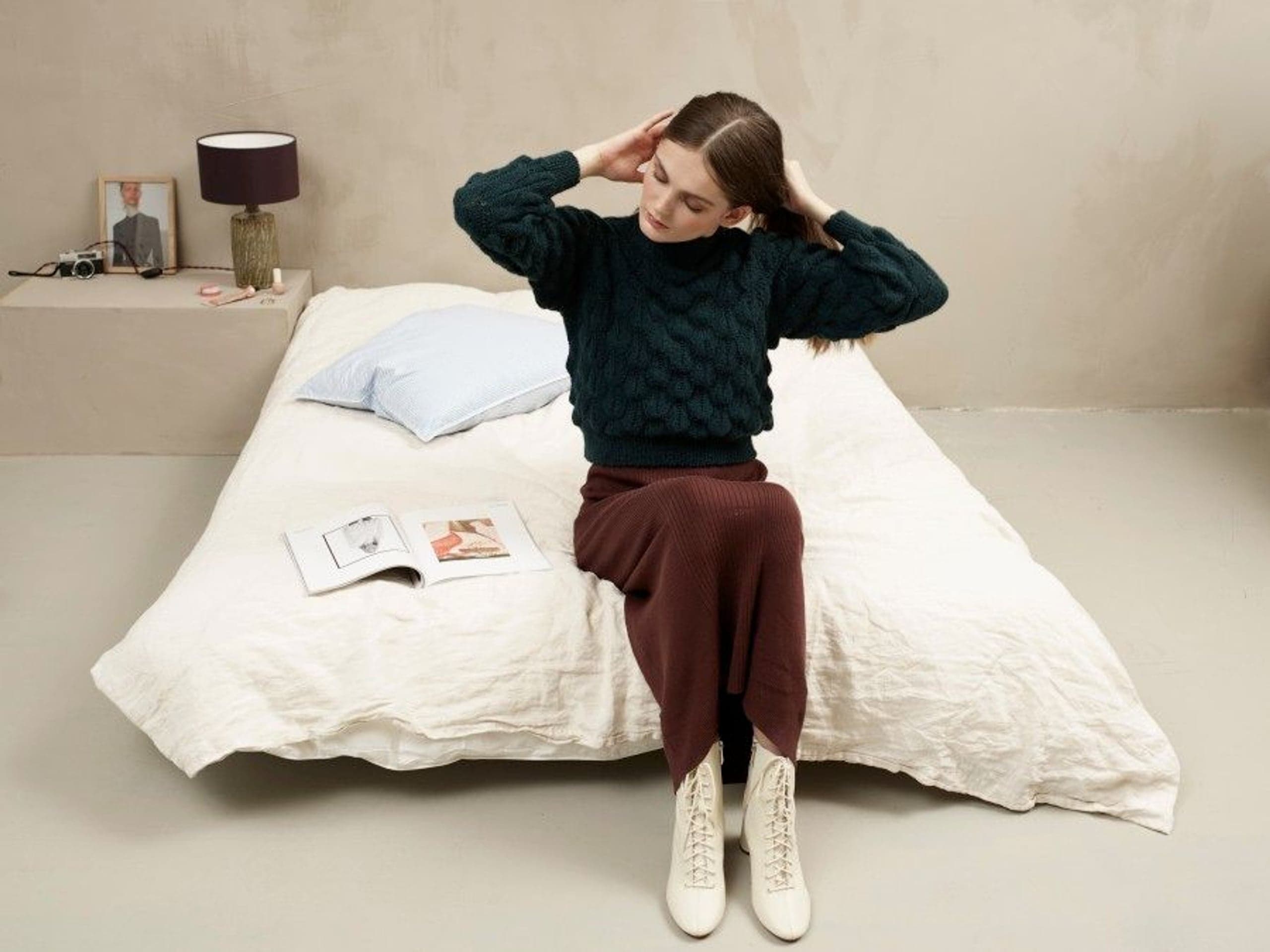 Genseren strikkes med vrangen ut, og vrenges til slutt. Husk dette når trådene festes til slutt.