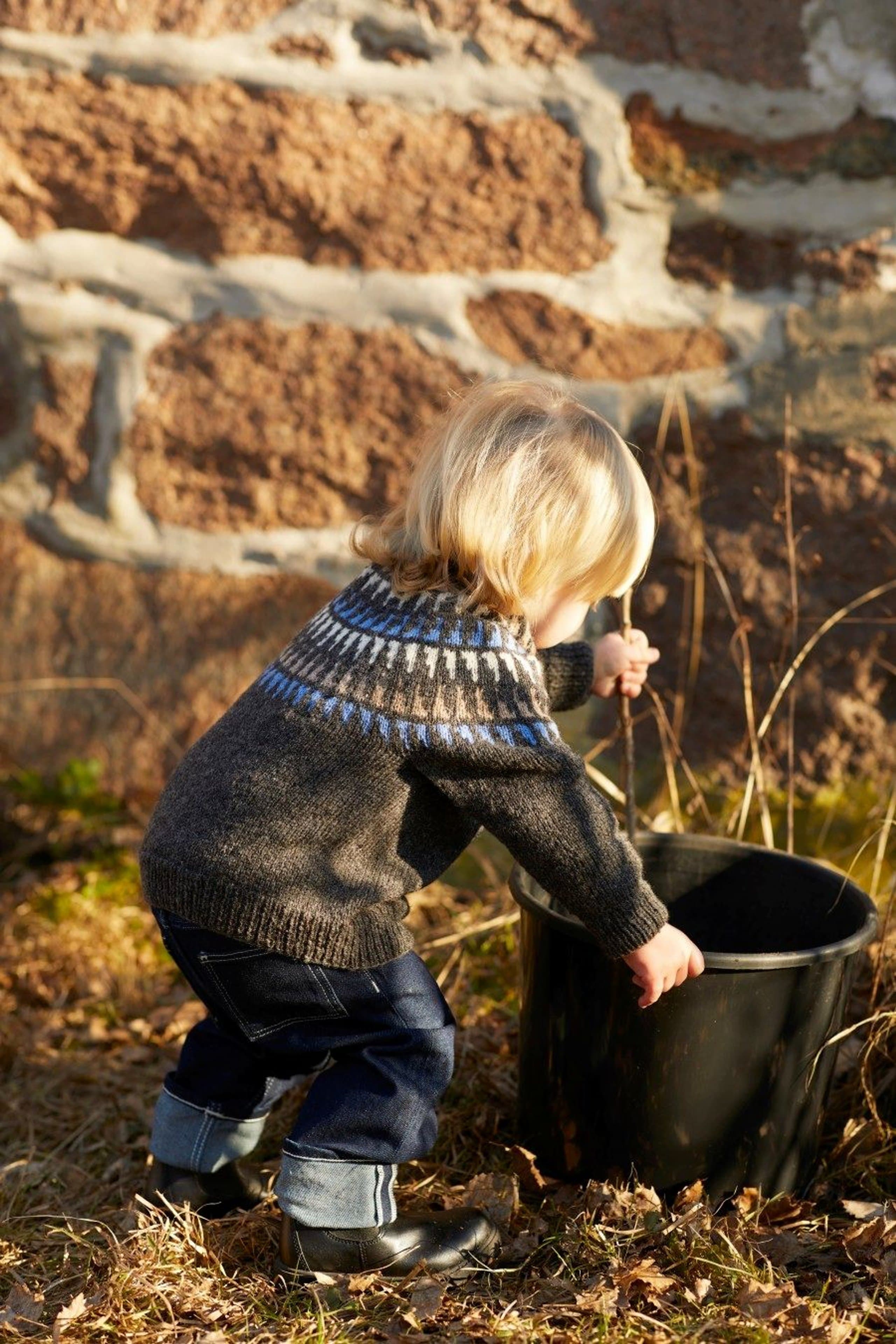 Rundfelt jakke strikket i Finull, 100% norsk ull.