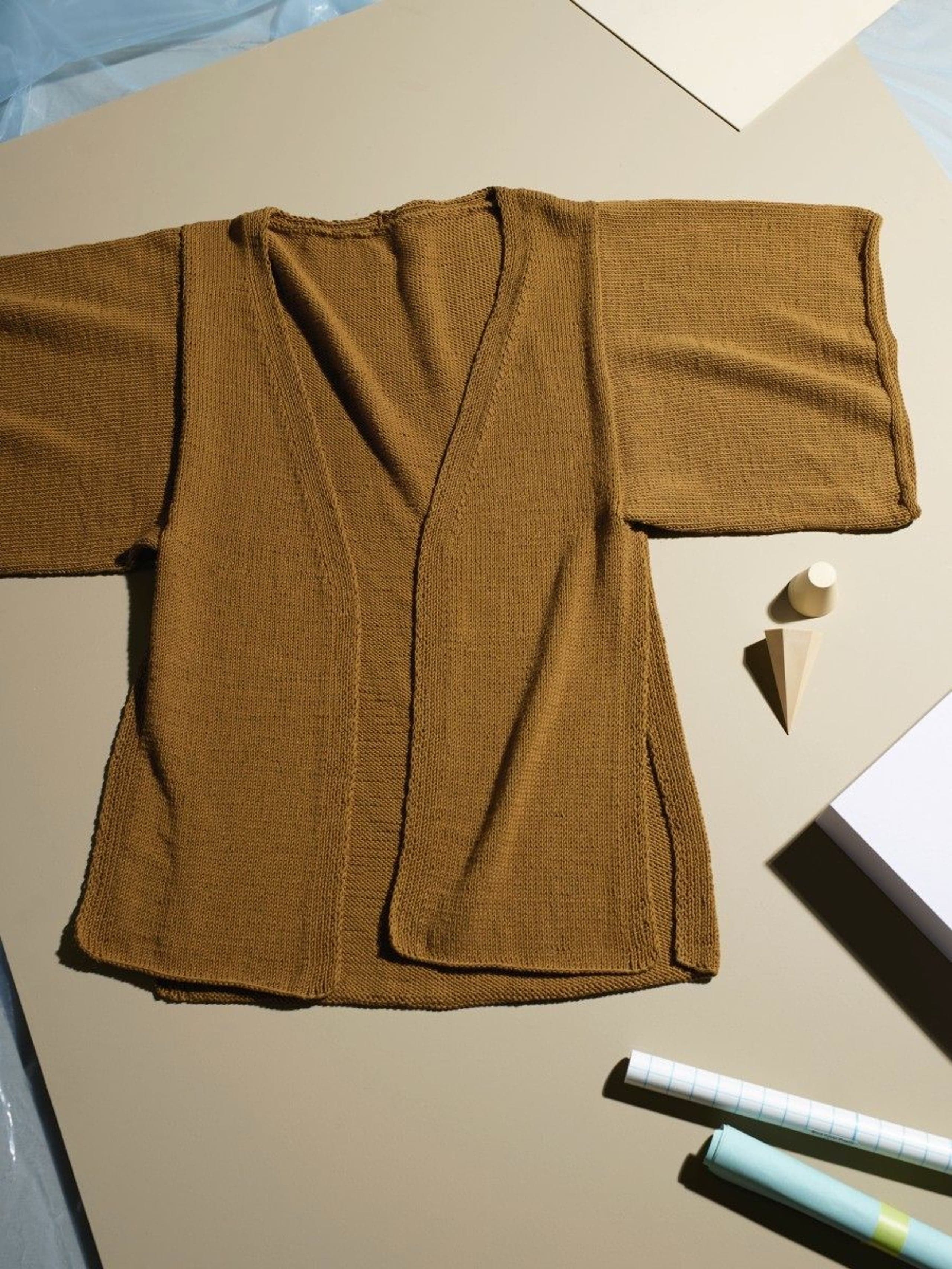 Jonsok jakke er en deilig og luftig sommerjakke en bare kan kaste over skuldrene på kjølige sommerdager. Forstykkene og bakstykket strikkes hver for seg, og det formes derfor splitt i sidene som går helt opp til dype ermehull. Kimonoen har V-utringning med ribbekant fremme. Ribbekanten går hele veien rundt nakken, og er en elegant detalj til den ellers vide passformen på jakken. Ermene er svært vide, slik en kimono skal ha, og rekker til rett over albuen der de avsluttes med en i-cord-avfelling.