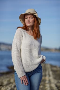 Sønnavind rillegenser er en avslappet og litt romslig genser med løs strikkefasthet. Den er enkel i sitt uttrykk og enkel å strikke; her er det bare rette masker!