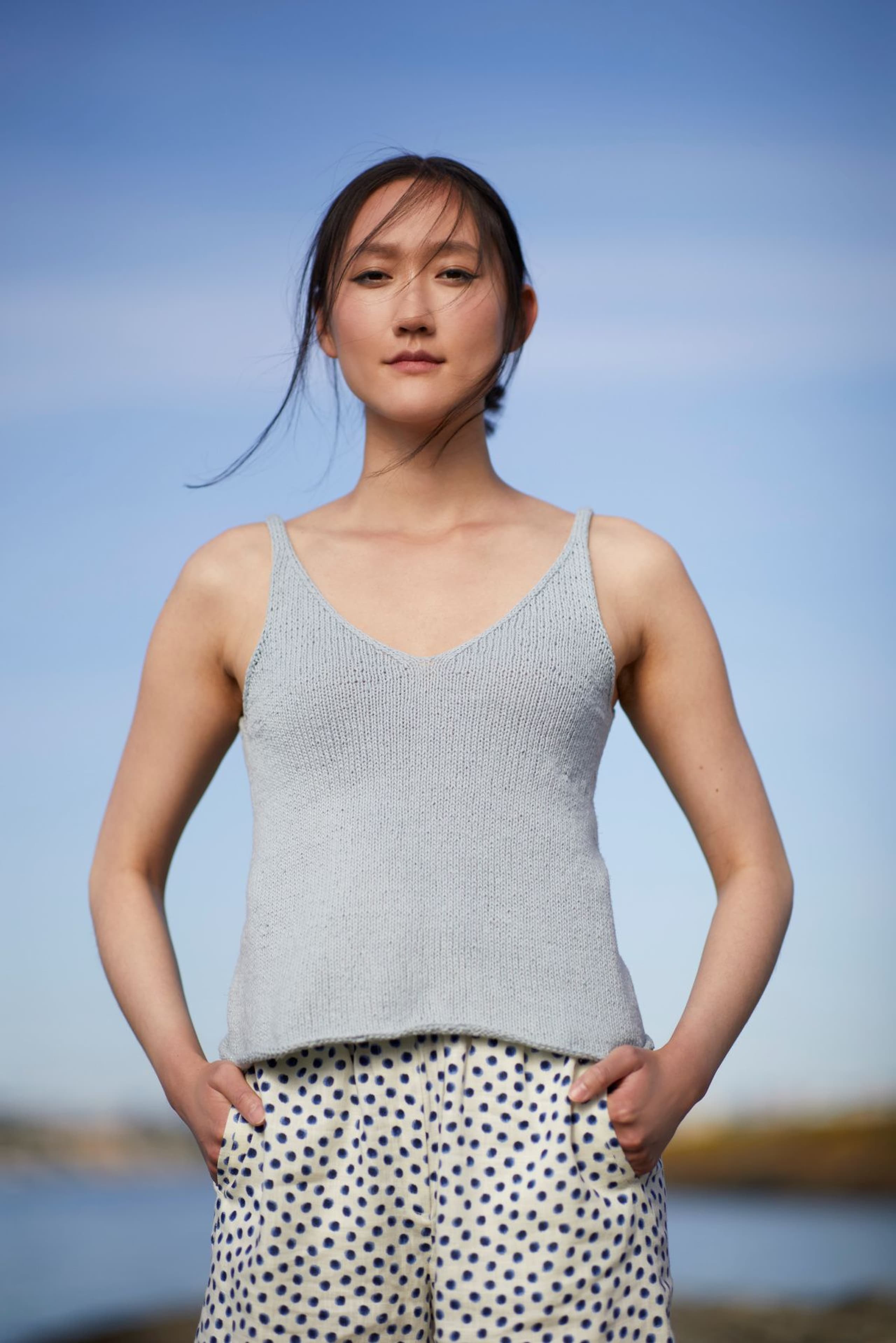 Svalerot singlet sitter stramt over bysten, og skråner lett ut under bysten slik at den sitter noe løsere rundt livet og hoften. Den strikkes nedenfra og opp. Det er en nokså kort modell, men kan gjerne strikkes lenger ved å legge til noen cm før deling til ermehull og utringning.