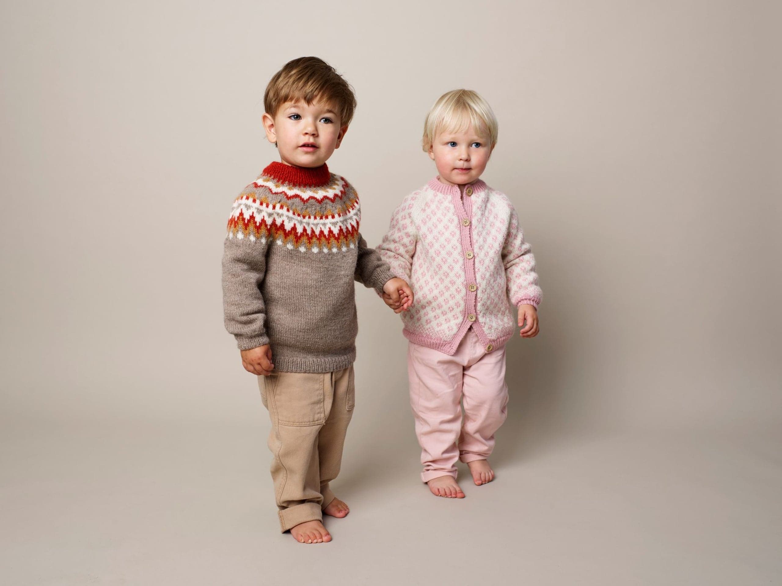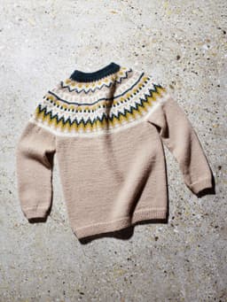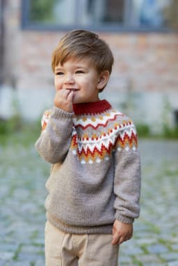 Tranebærgenseren er en klassisk rundfeltgenser, med ensfarget bol og ermer. Mens selve rundfellingen er mønstret samtidig som det felles.