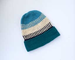 Linn-lua er strikket i dobbel Lamull. Det er en høy lue med en litt stor passform. Fargene og mønsteret er inspirert av havet. Garnet er laget av 100 % norsk lamull, noe av det mest miljøvennlige materialet en kan velge. Garnet blir mykere etter vask og bruk. Linn-genseren og tilhørende plagg er designet eksklusivt for Hjemmet av Lokal Oslo i samarbeid med Rauma Garn, WWF og NRK TV-aksjonen. 15% av garnsalget går til WWF's arbeid med å bekjempe plast i havet.