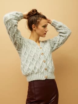 Den deilige flettejakka er en myk og god jakke strikket med en tråd Lamull sammen med to tråder Plum. En kombinasjon som gir et veldig myk og deilig plagg. Hele jakken strikkes i et nydelig flettemønster. Den strikkes nedenfra og opp og har isydde ermer. Jakka har en kort passform. Ønsker du en lenger passform er det enkelt å strikke bolen litt lenger før du feller til ermehull. Pass i så fall på å beregne litt ekstra garn.