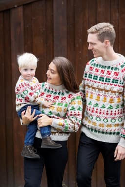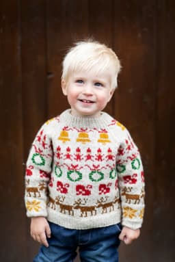 Julegenseren til barn er strikket nedfra og opp. Det er skrevet forslag til rekkefølge på diagrammene under, men strikk gjerne din egen kombinasjon. Husk 3 omg med farge 1 mellom alle diagrammene.