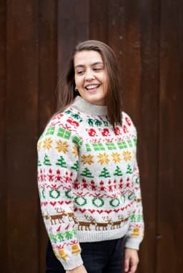 Julegenseren til dame er strikket ovenfra og ned. Diagrammene kan man strikke i ønsket rekkefølge eller slik: 5-3-6-9-7-10-2-4-1-11-8. Husk alltid 3 omg med farge 1 imellom alle diagrammene.