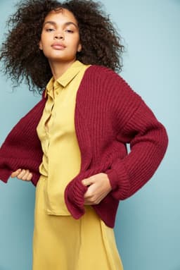 Billiejakken har en vid fasong og V-hals. Bevegelsesvidde er ca 24 cm. Hele jakken er strikket ovenfra og ned i patent, som gir jakken et voluminøst uttrykk. Patent kanvri seg hvis det strikkes rundt, derfor er alle delene strikket frem og tilbake, og sydd sammen til slutt.