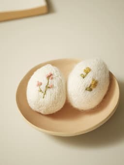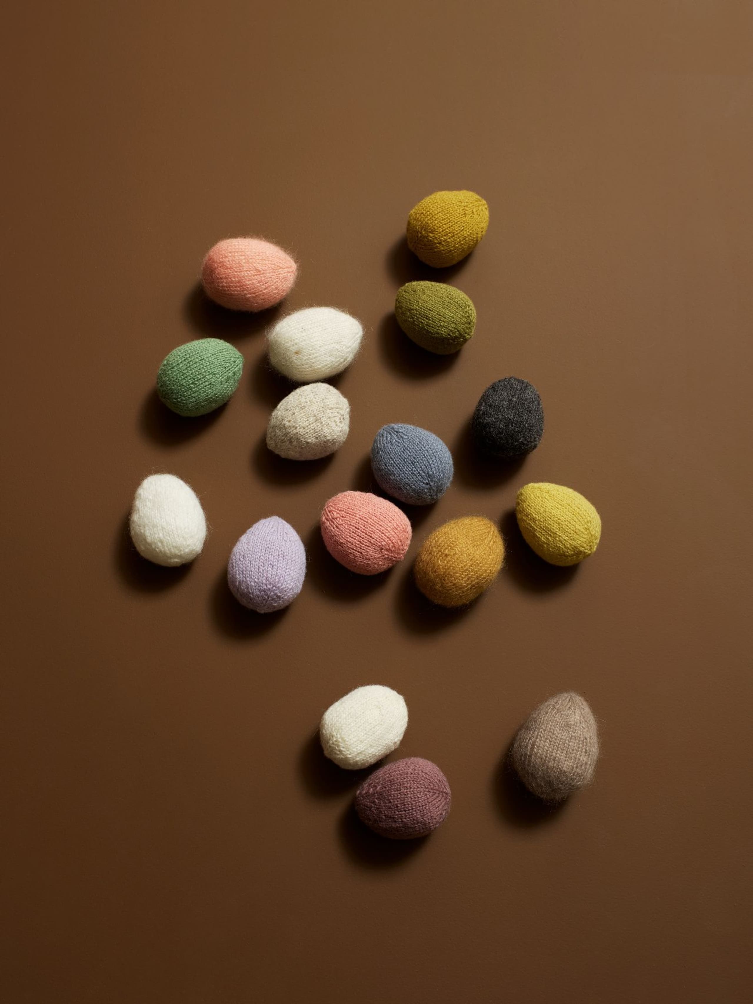 Små egg som kan brukes til eggjakt, eller som pynt i hjemmet. De kan dekoreres i det uendelige, og er et fint prosjekt til restegarnet.