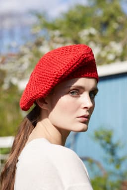 Hatten hekles ovenfra og ned med dobbel tråd.